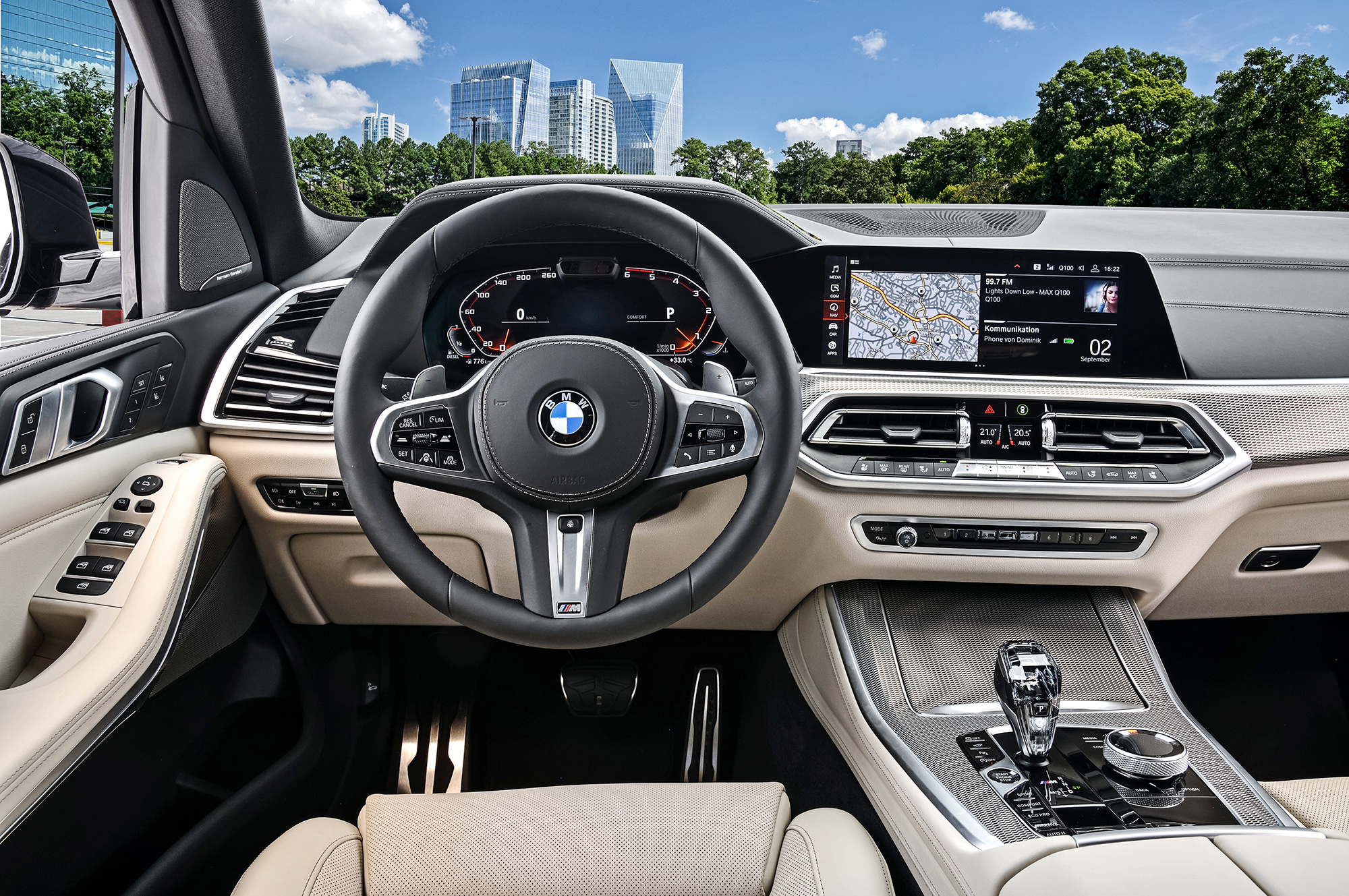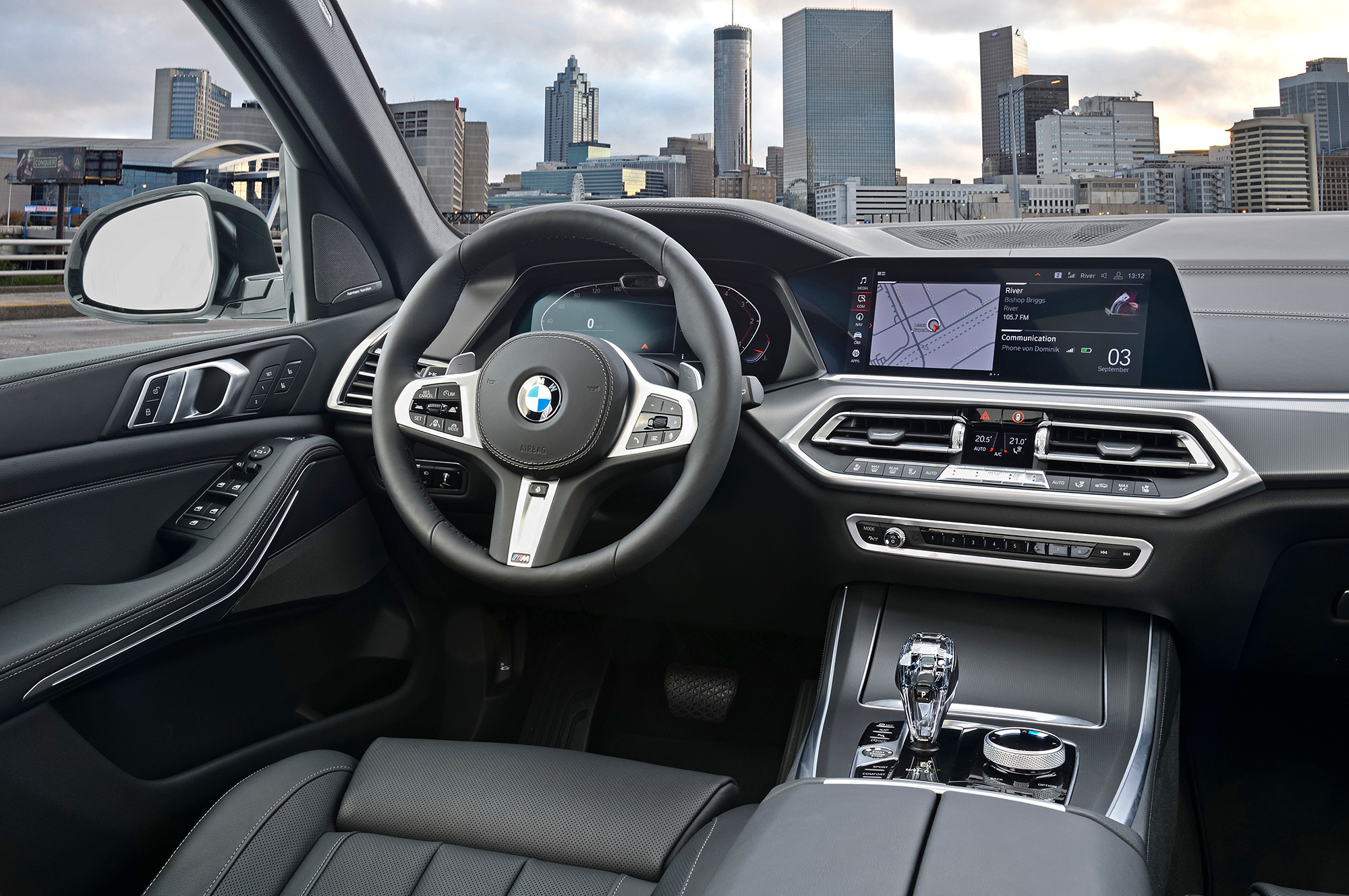 Зато все настройки машины можно сохранить в «облаке» ― и, сев в другой Х5, обустроить его как свой при помощи нескольких кликов по сенсорному экрану. На персонализацию сделана серьёзнейшая ставка. Центральный дисплей остался обособленным, и кокпит Х5 не выглядит столь же прогрессивно, как у нового Туарега. Однако благодаря операционной системе седьмого поколения (её больше не называют iDrive) стало логичнее меню, а начальный экран можно видоизменять с помощью виджетов. Его графика и отзывчивость почти безупречны.