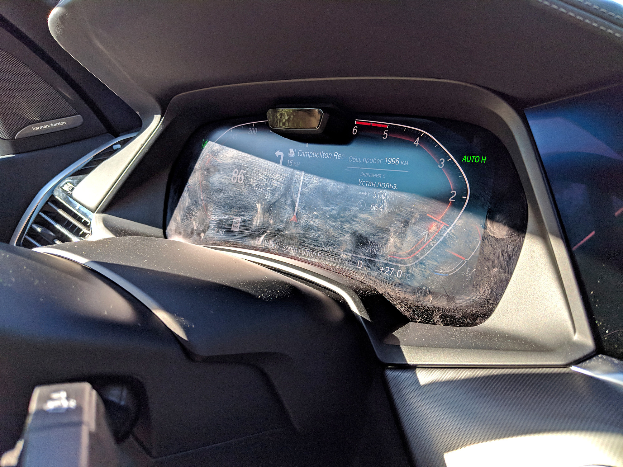 Программное обеспечение обновляется при Wi-Fi-соединении, открыть машину можно NFC-меткой смартфона, камеры кругового обзора можно научить самостоятельно включаться в определённой геопозиции ― например, на въезде в ваш двор. Понятно, есть система ведения по полосе и активный круиз-контроль, хотя их работа мне показалась чуть более резкой, чем в новейших Мерседесах. Но всё можно простить за одну новую «фишку».