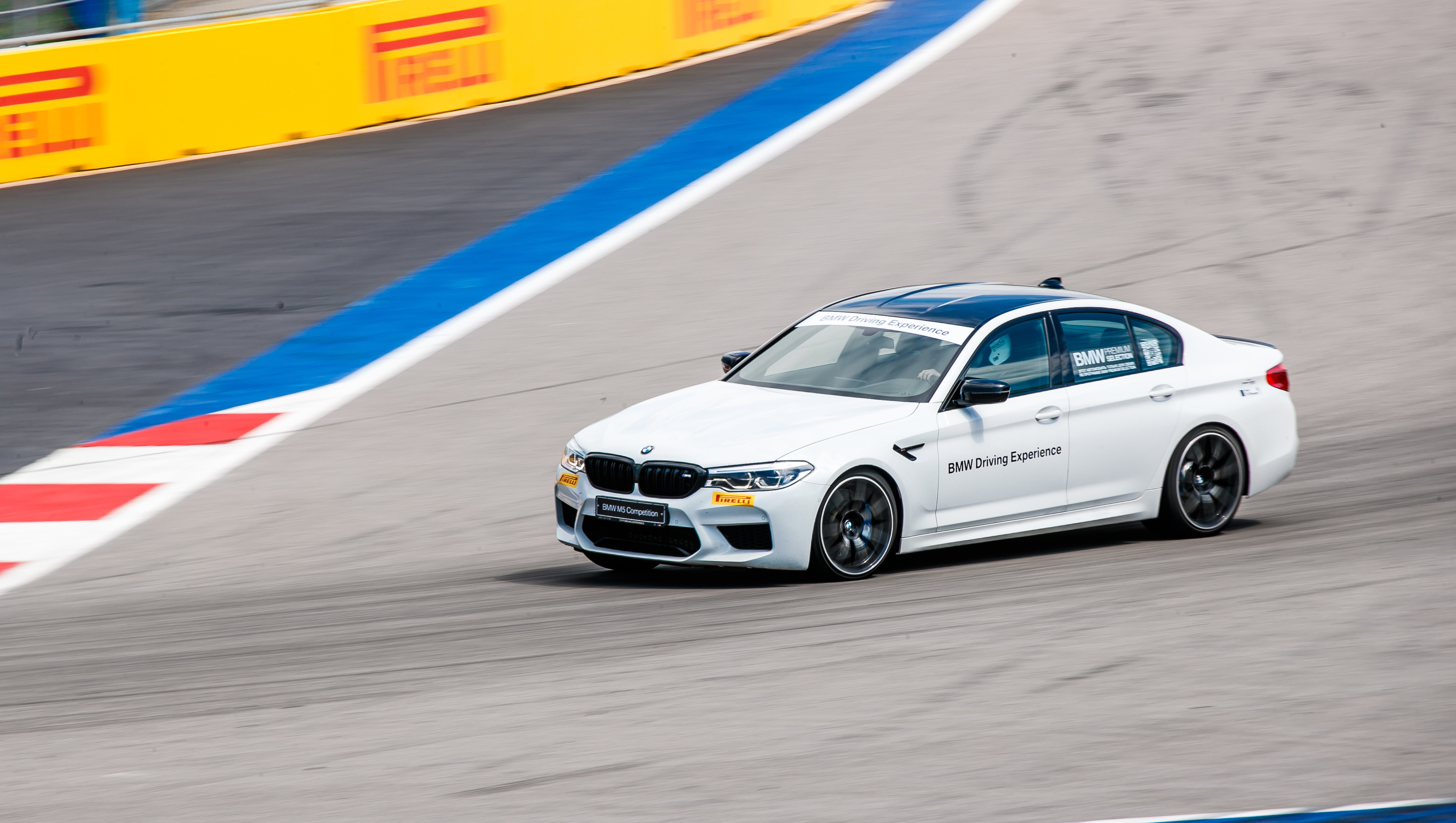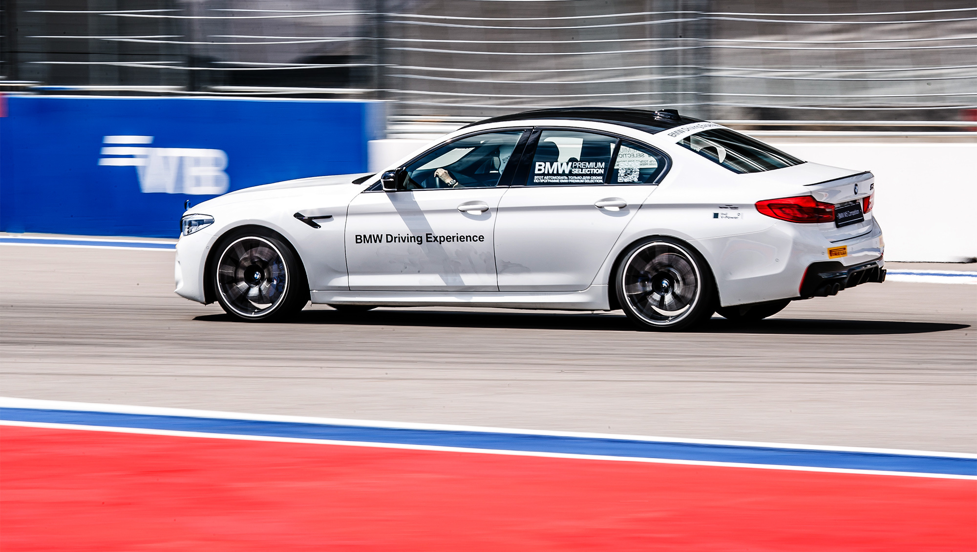Через поребрики седан перескакивает с кроссоверной лёгкостью и начинает повторять профиль трека лишь в самом жёстком режиме подвески Sport Plus. По показаниям Рейслоджика я вижу, что в медленной секции трассы с большим количеством поворотов M5 Competition едет ноздря в ноздрю с M2, проигрывая всего пару десятых. А на прямой V-образная «восьмерка» 4.4 c более жёсткими, чем прежде, опорами мягко уносит M5 в отрыв на пару секунд. С четырёхзонным климат-контролем, доводчиками дверей и электроприводом багажника M5 развивает скорость выше, чем автомобили самого быстрого класса Туринг в российском кольце!