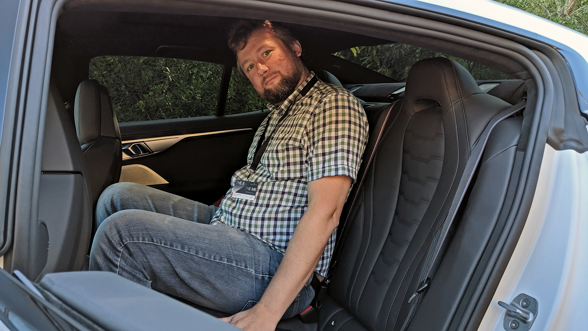 Седан практичен: багажник на три гольф-сумки легко увеличить, сложив спинки условно трёхместного дивана. Там действительно три ремня безопасности, хотя среднему пассажиру в случае чего приходится буквально седлать центральный тоннель и сидеть сгорбившись. Да и в целом салон не вызывает чувства, что ты в спорткаре. Длиннобазный седан намекает на прелесть дальних поездок без свойственных настоящим купе остроты, жёсткости, ездовой драмы… Увы, дальше намёков дело не движется. Он настроен в том же ключе, что и двухдверные «восьмёрки», с уклоном в спорт.