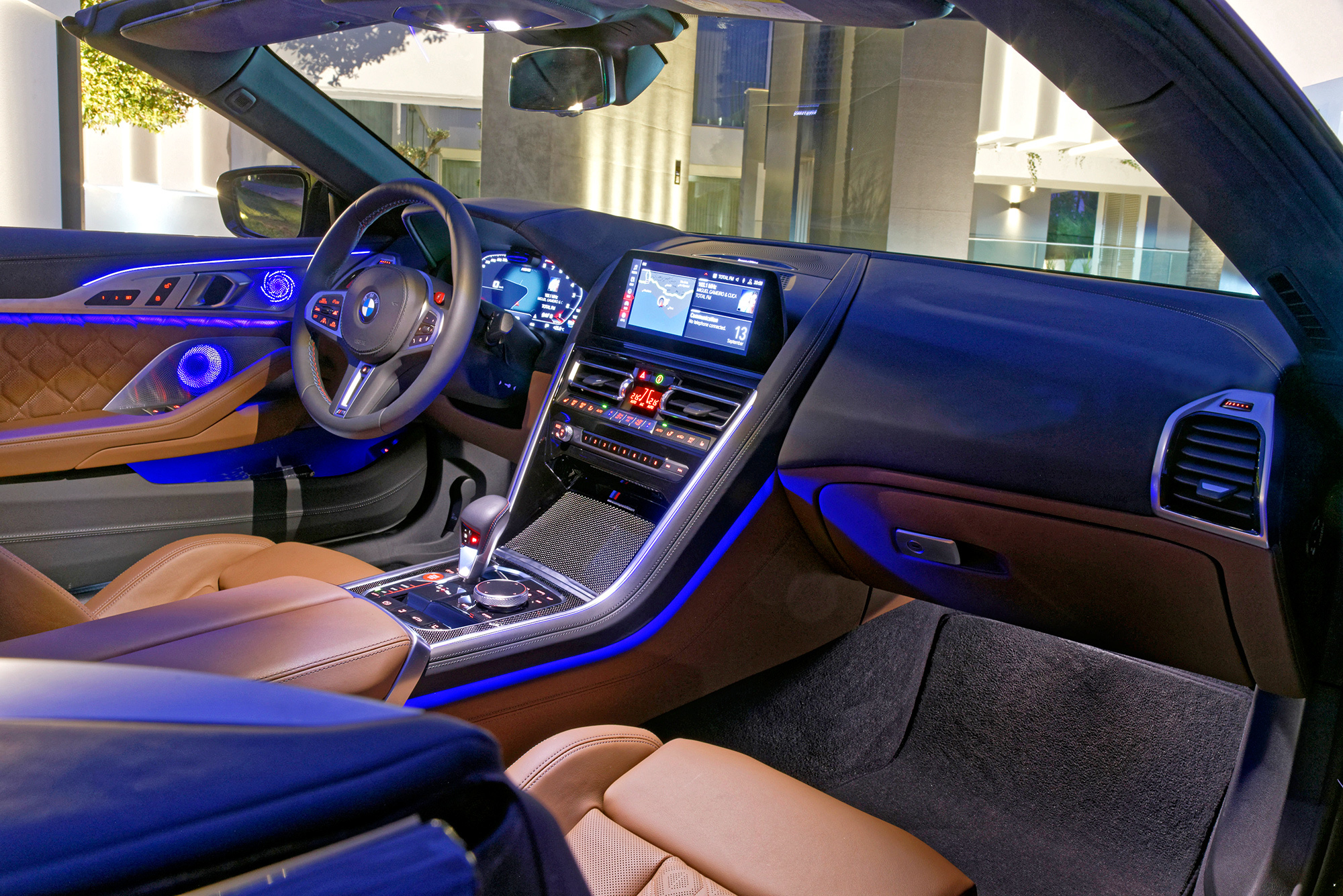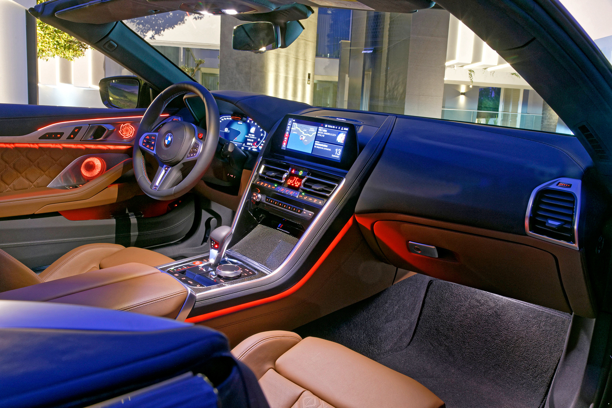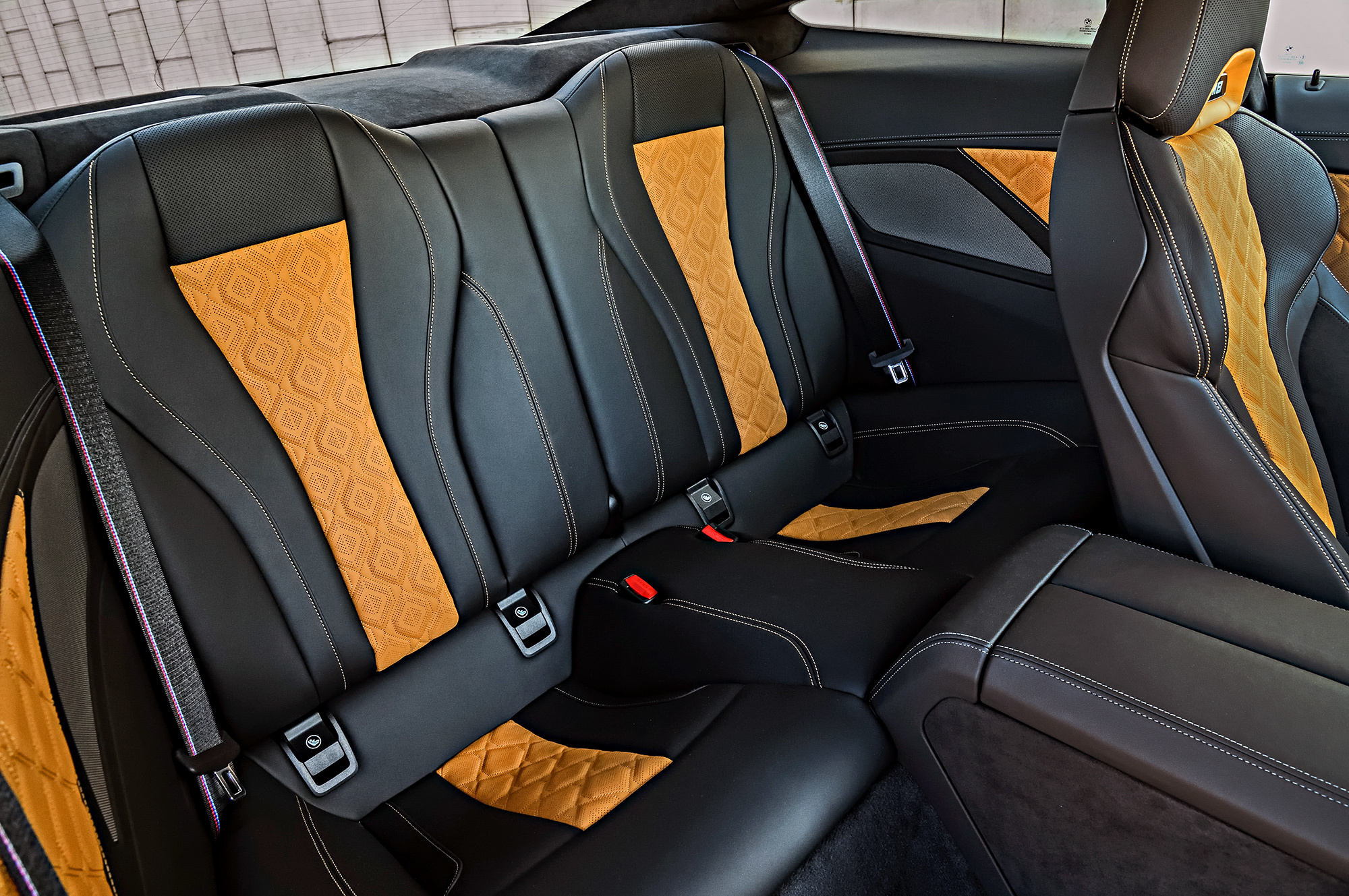 Комфорта вполне достаточно: даже в версии Competition купе М8 не стало костотрясом. На дорогах общего пользования беспокоит разве что повторение короткой волны, но в целом плавность хода для 625-сильного спорткара хороша. Спортрежим ожидаемо «уплотняет» подвеску, всё же не делая её ультимативно жёсткой. Базовые «эмки» на тесте не представлены, но предполагаю, что они должны быть ещё немного комфортнее. Радует и акустическое сопровождение. Лишних шумов нет, мотор рычит умеренно, частью через динамики и не хлопает в выхлоп, как у M850i. Правда, разделить радость можно лишь с одним пассажиром: задние места существуют только формально.