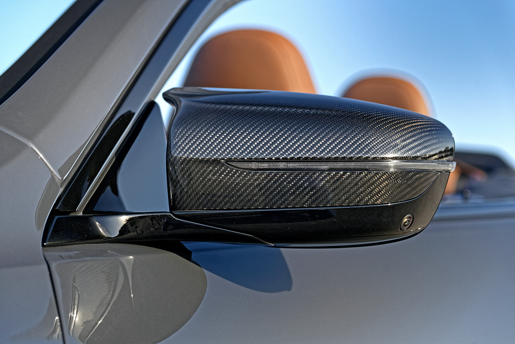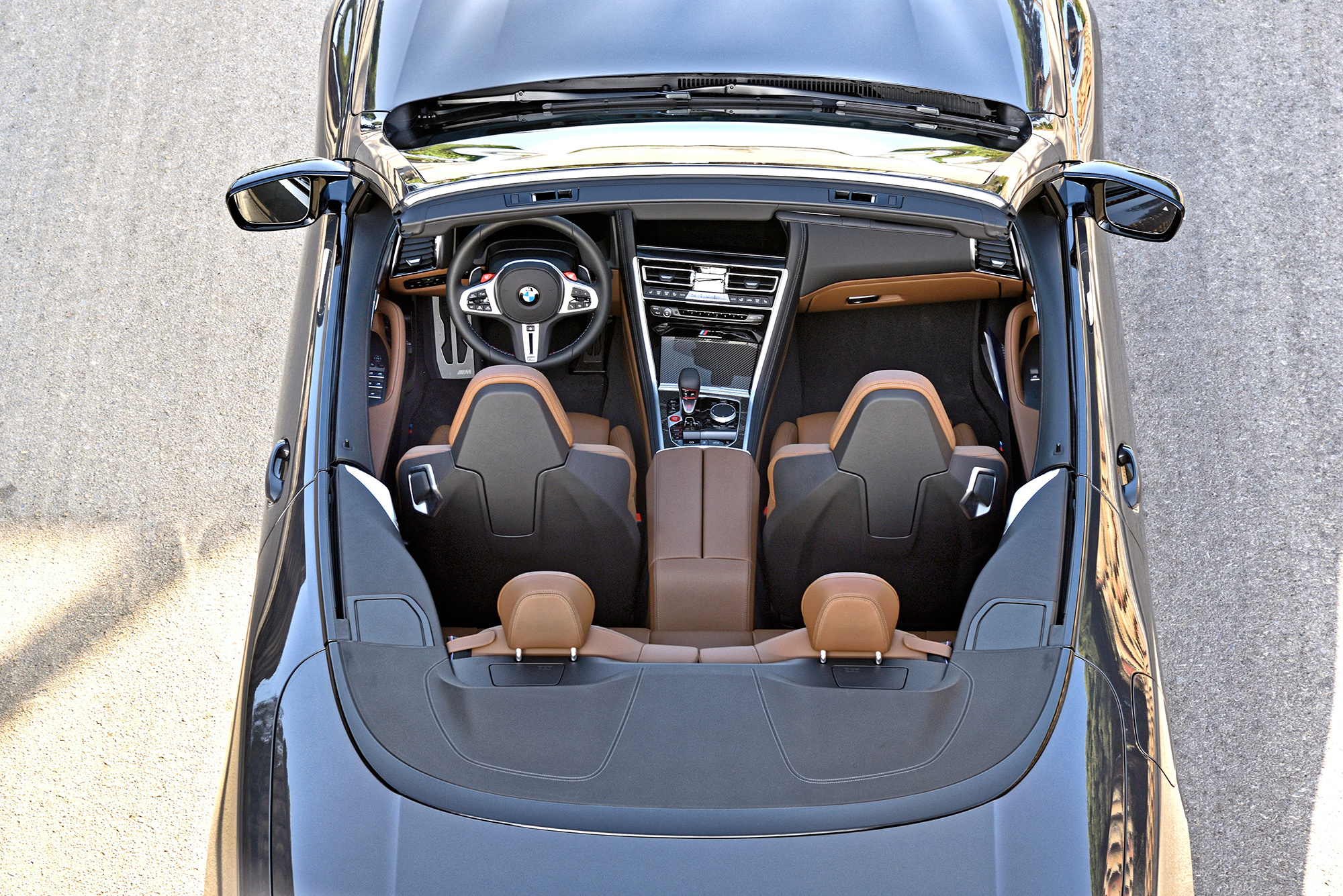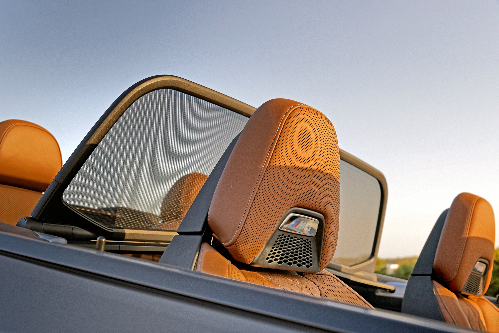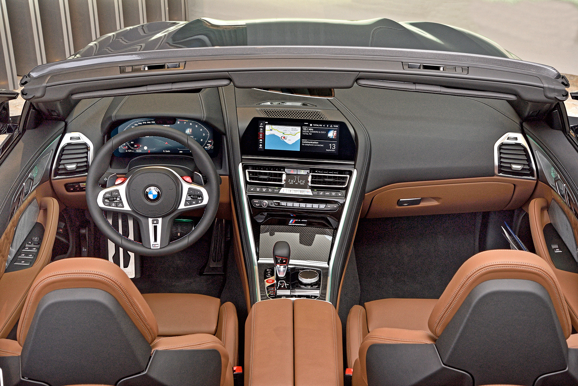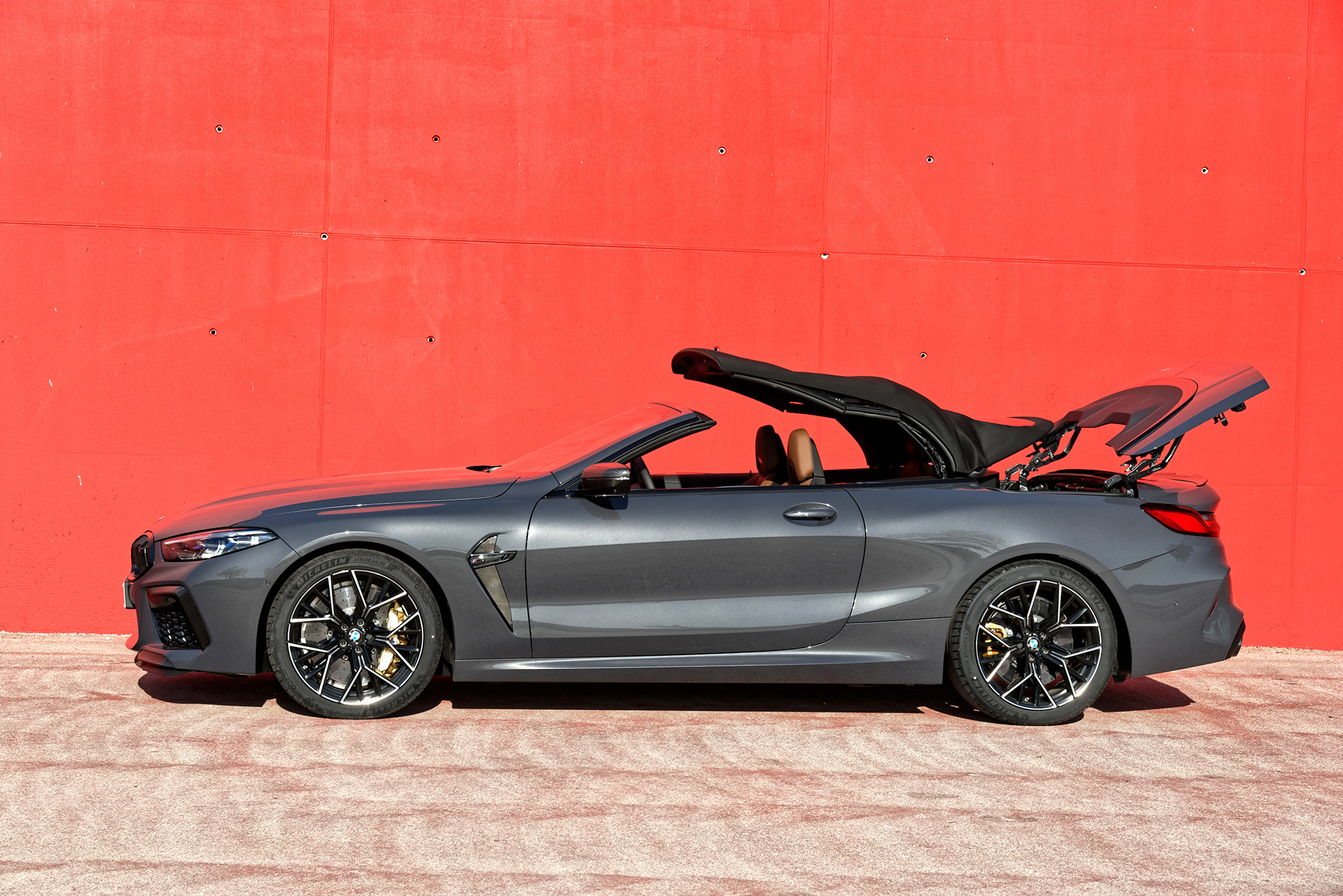 После всего вышесказанного меня не удивляет, что кабриолет M8 тоже весьма гармоничен. Тканевая крыша складывается или поднимается за 15 секунд на скорости до 50 км/ч. Но что с ней, что без — сугубо имиджевая «эмка» едет слитно и внятно, лишь в пределе оказываясь чуть ленивее купе. Хороша обтекаемость: с поднятым ветровым щитком воздух несильно шалит в салоне, беспокоя лишь седоков выше 180 см. И всё это ― вплоть до 200 км/ч! Правда, мчать больше ста пятидесяти со сложенным верхом не располагает шум.