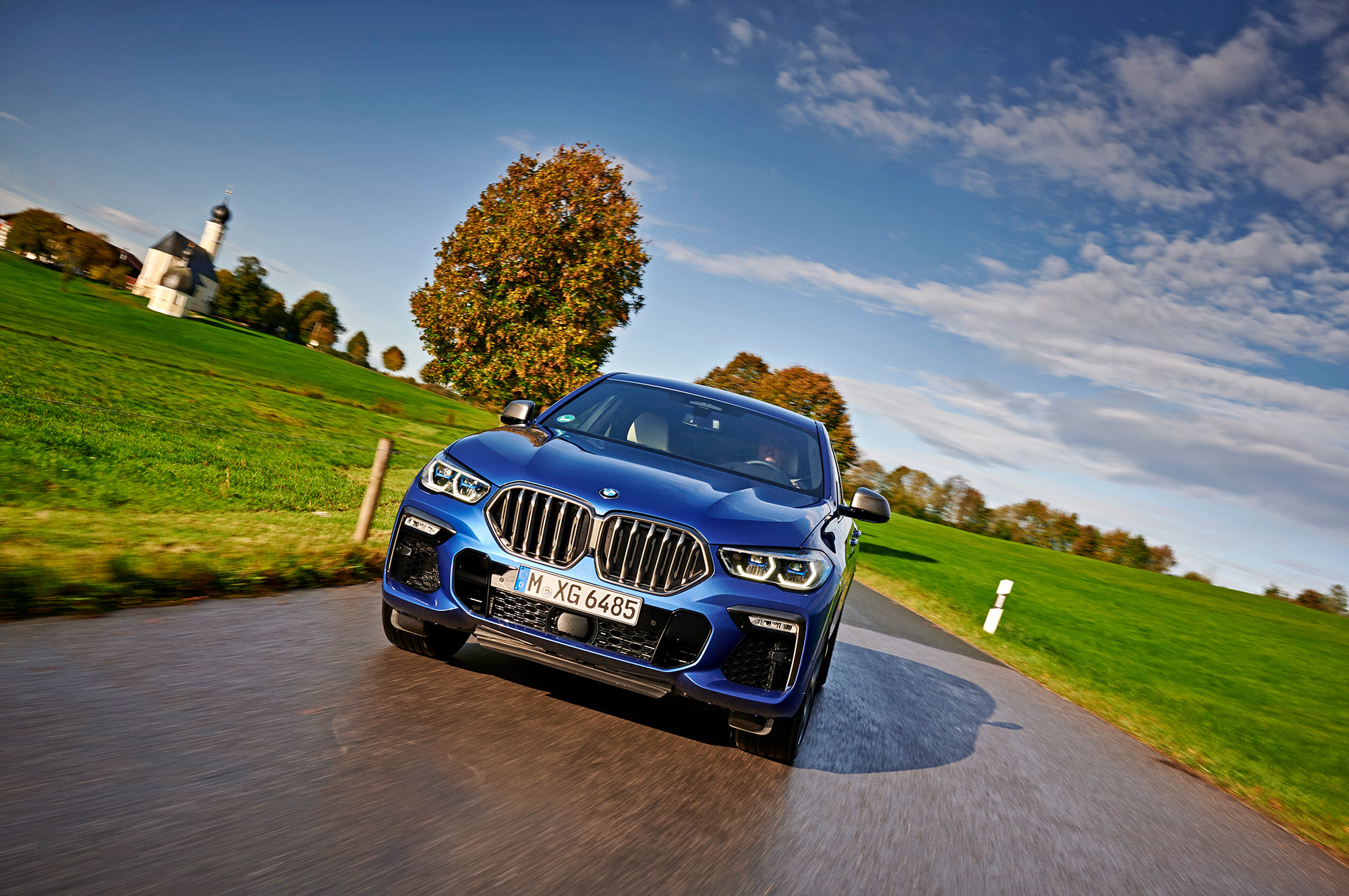 Плавность хода нравится. С опционной адаптивной подвеской M Professional X6 идёт по неровностям едва ли не мягче, чем «икс-пятый» из нашего летнего теста на 19-дюймовых колёсах. Дефекты дорожного покрытия проще услышать, чем почувствовать пятой точкой, поскольку кроссовер метит их шлепками шин. Крупные колдобины, которых в этой части Германии откровенно немного, отзываются колебаниями неподрессоренных масс. Цепляя обочину, слышу перестук камешков в арках.