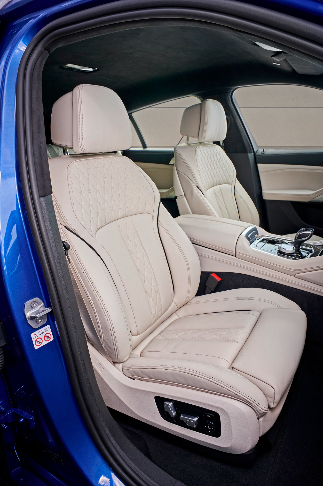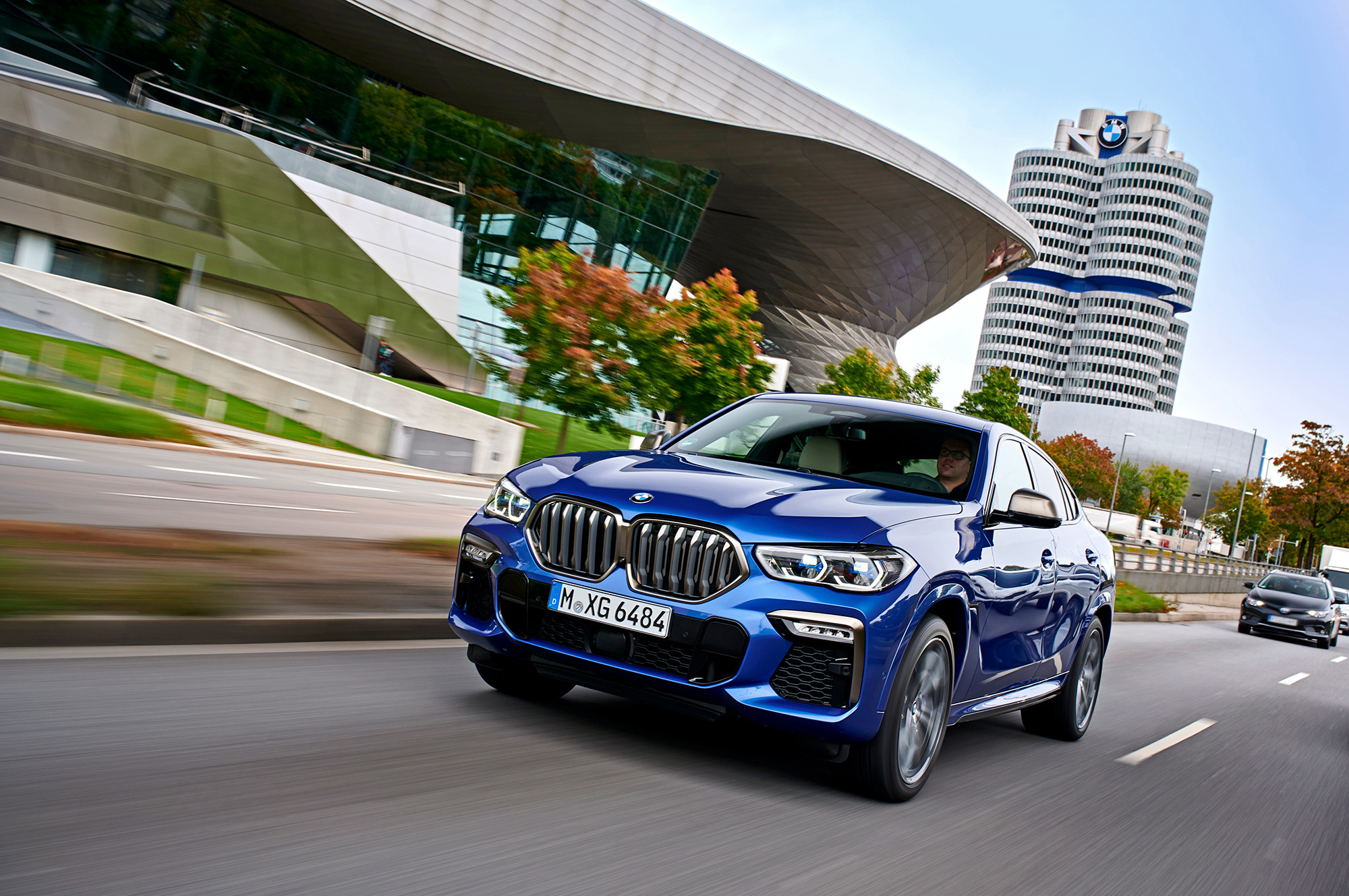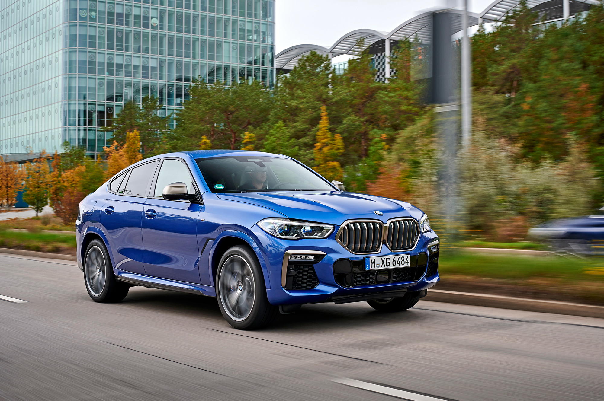 Все тестовые машины на презентации в Мюнхене одинаковы — это 530-сильные хэтчбеки M50i синего цвета Riverside Blue с колёсами диаметром 21 дюйм. Точь-в-точь как на фирменных фотографиях. Таких версий прежде не было: максимально возможная «не эмка» с V8 — xDrive50i — была на 80 сил слабее и на полсекунды медленнее набирала сотню. Прибавив в динамике, M50i осталась при гражданских настройках. В городе отмечаю основательную развязку от внешних шумов. Благодаря многослойным передним стёклам (опция за 51 тысячу) снаружи почти ничего не слышно, что особенно хорошо заметно на светофорах, когда система start/stop глушит битурбовосьмёрку 4.4.