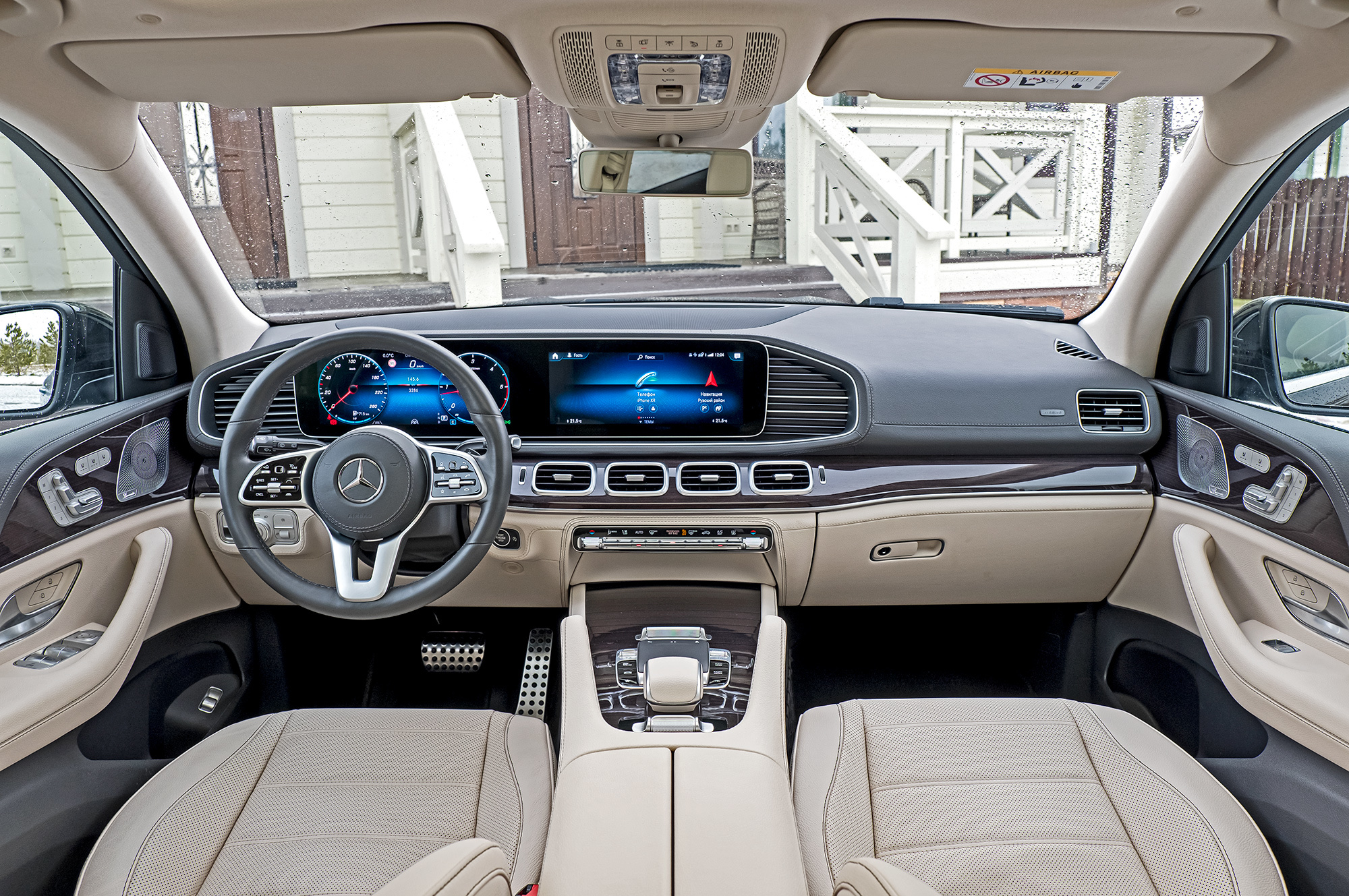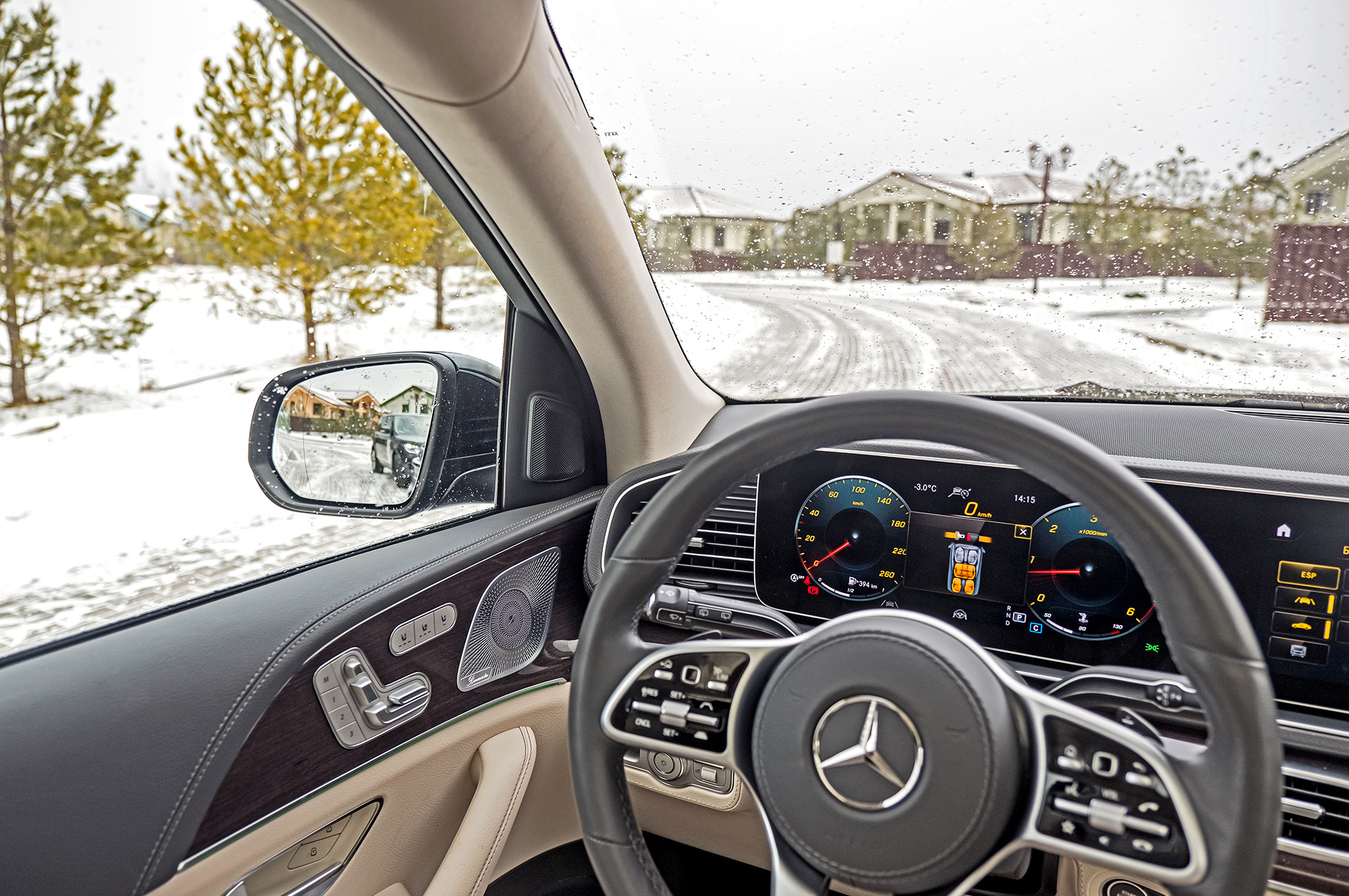 Вот мультимедийная система ничуть не хуже бээмвэшной. Интерфейс прост, графика приятна. Правда, на центральном тоннеле, где в «иксе» расположена универсальная шайба-контроллер, GLS предлагает только тачпад. Зато на правой спице руля есть чувствительная «пуговка», которой также можно сёрфить по меню. Сенсор на левой спице заведует щитком приборов. Пользоваться ими, не снимая рук с баранки, довольно удобно. Хотя при вращении порой случается нежелательная смена вкладок.