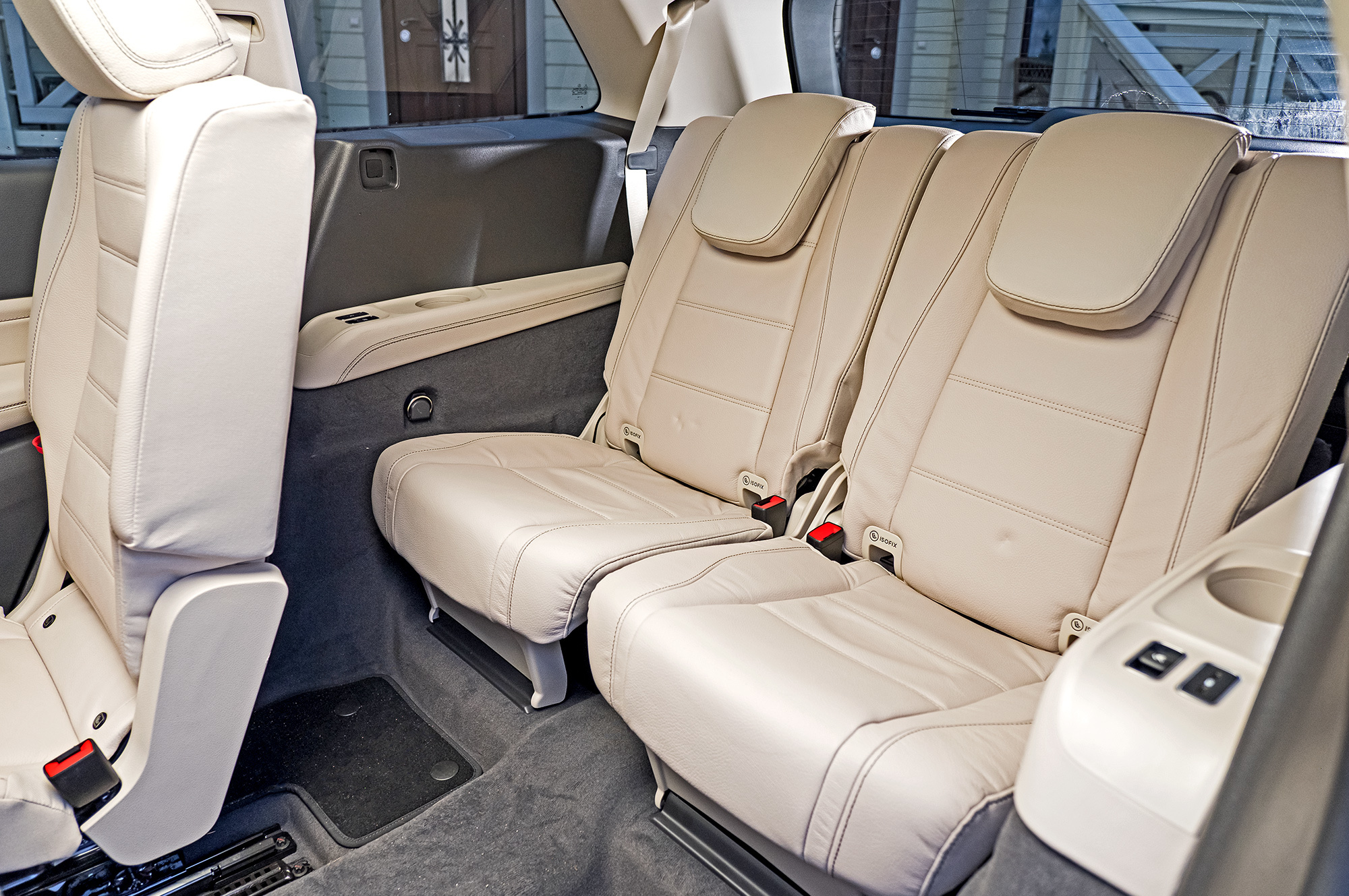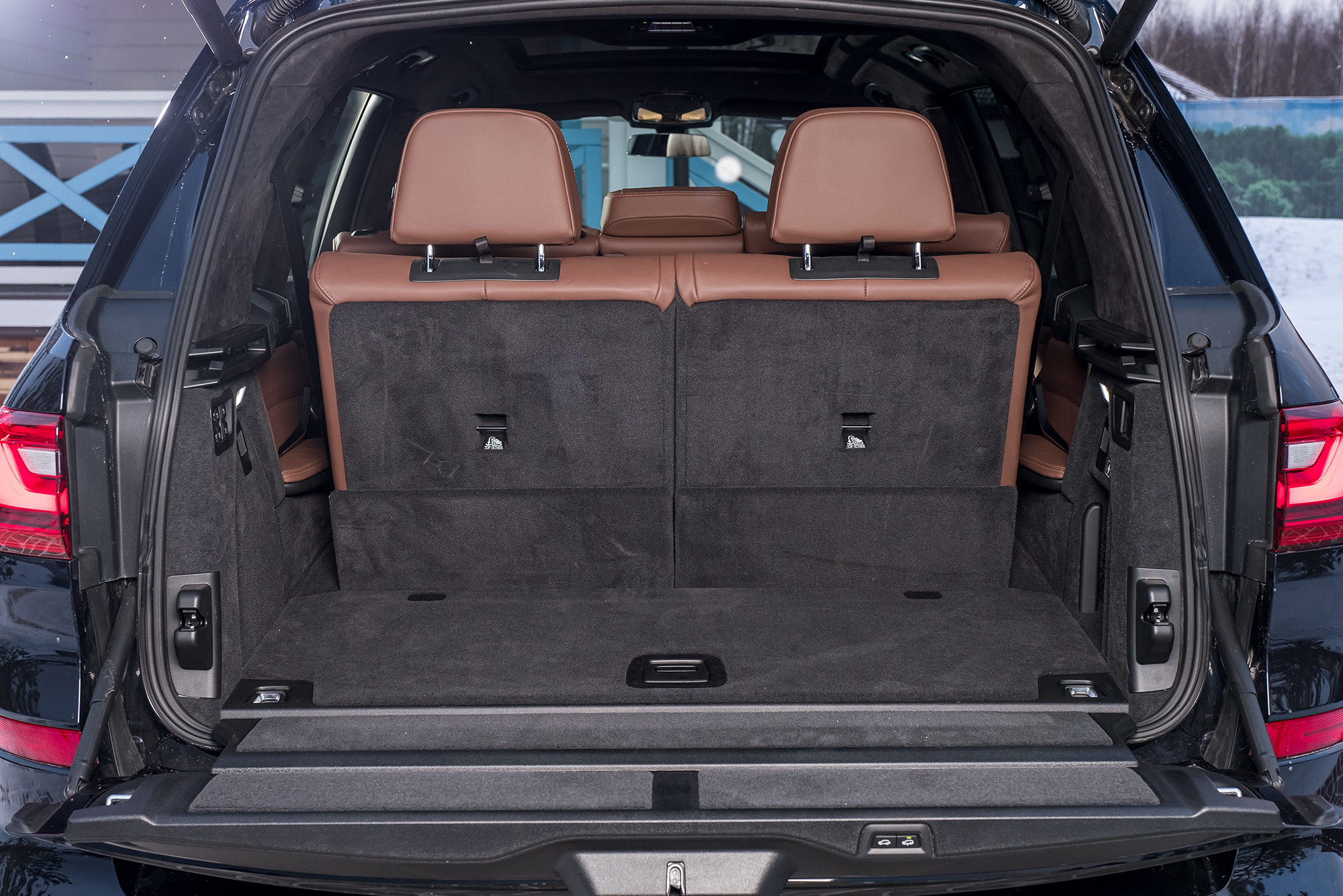 В пятиместной конфигурации самым вместительным оказывается багажник Мерседеса, в BMW он чуть меньше. Возможности трансформации схожи: сиденья второго и третьего рядов складываются электроприводом, образуя ровный пол. Range Rover для грузоперевозок подходит хуже, особенно с таким навороченным задним рядом. Его невозможно сложить так, чтобы получилась ровная площадка. Погрузку усложняет откидной борт, вынуждающий тянуться за глубоко уложенными вещами. Знакома эта проблема и пользователю «икс-седьмого».