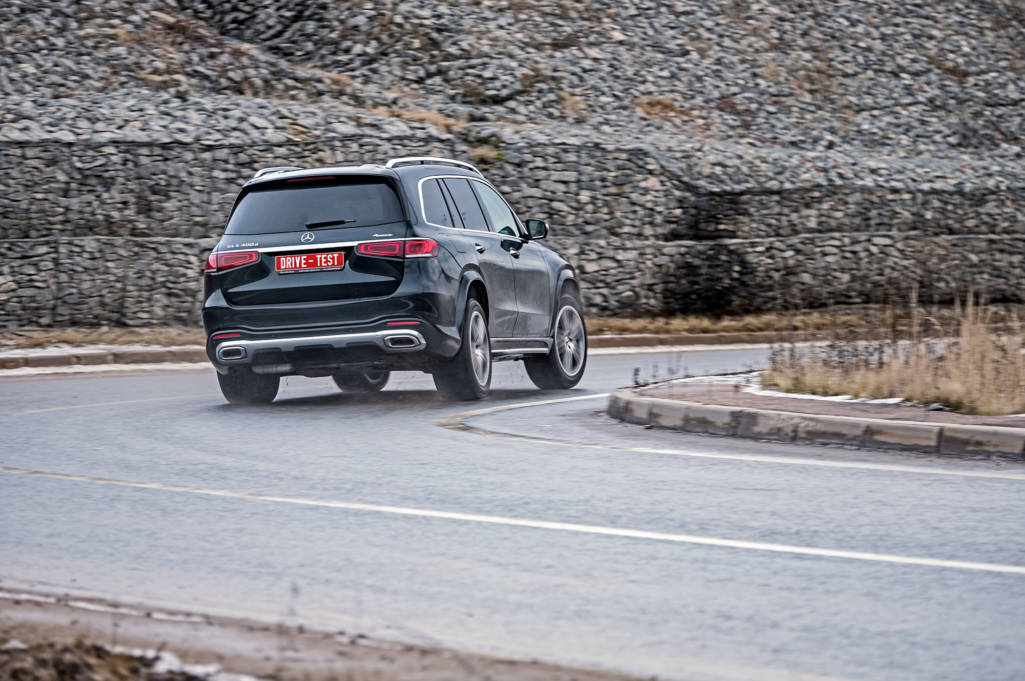 Плавность Мерседеса не хуже, чем у Рейнджа, но и не лучше. Внимание, которое GLS уделяет поперечным неровностям, кажется чрезмерным, хотя в целом шасси оставляет впечатление более собранного. Нравится, как фильтрует мелкие неровности и смягчает средние. Увы, на крупных пасует, сотрясаясь всем кузовом.