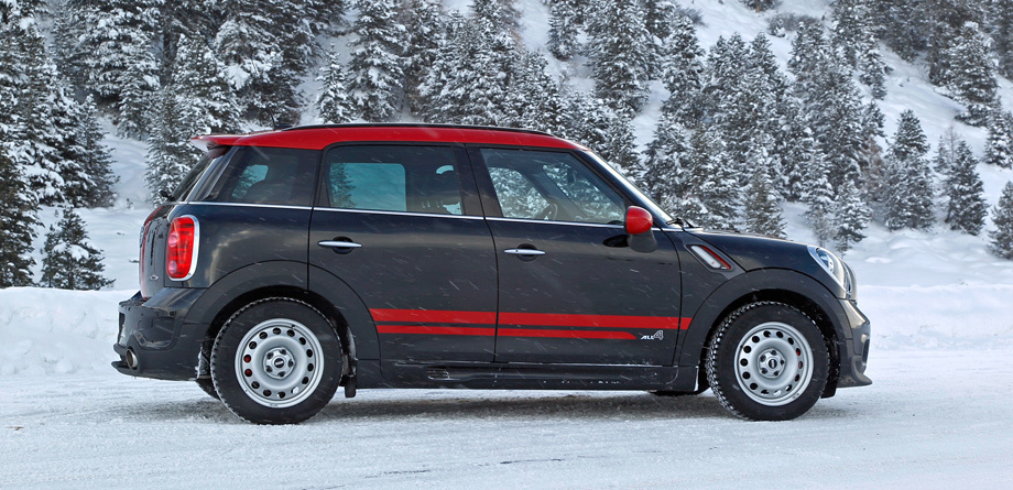 Большие мокрые подошвы зимних ботинок, работая на длинноходных педалях, то и дело резиново скрипели, чиркая об пол и стенки. Левая рука поглаживала красную прострочку туговатого руля, а правая всякий раз удивлялась, до чего же смачно-сочно ходит короткий рычаг «механики». Countryman JCW накрыл меня грубым задором особого свойства — нечто подобное дарит разве что Smart, «заряженный» Брабусом. Автомобиль, сшитый из контрастов: получается, у тебя если не смешная, то не очень серьёзная внешность — и совсем не шуточные страсти, кипящие внутри. Красно-чёрный Mini — клубок противоречий, который катится и манит за собой в инфернальную чащу. В неё безоглядно ныряешь, растянувшись в зловещей улыбке, как у красно-чёрного лысого парня с обложки игры Carmageddon.