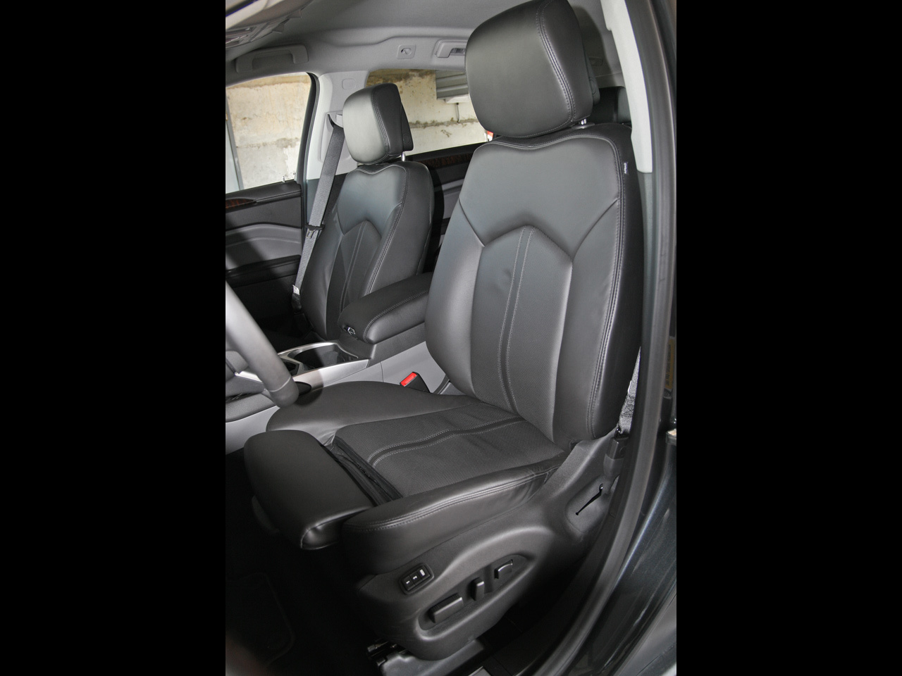 Воочию SRX ничуть не хуже, чем на ранних официальных картинках. Поджарый, с гранёными килями задней оптики и нарочито грубым передком в стиле флагмана Escalade. От угловатой сутулости предшественника не осталось и следа, а самая пикантная деталь стайлинга — острая подштамповка, располосовавшая боковину кузова от крыла до крыла. Мачо!