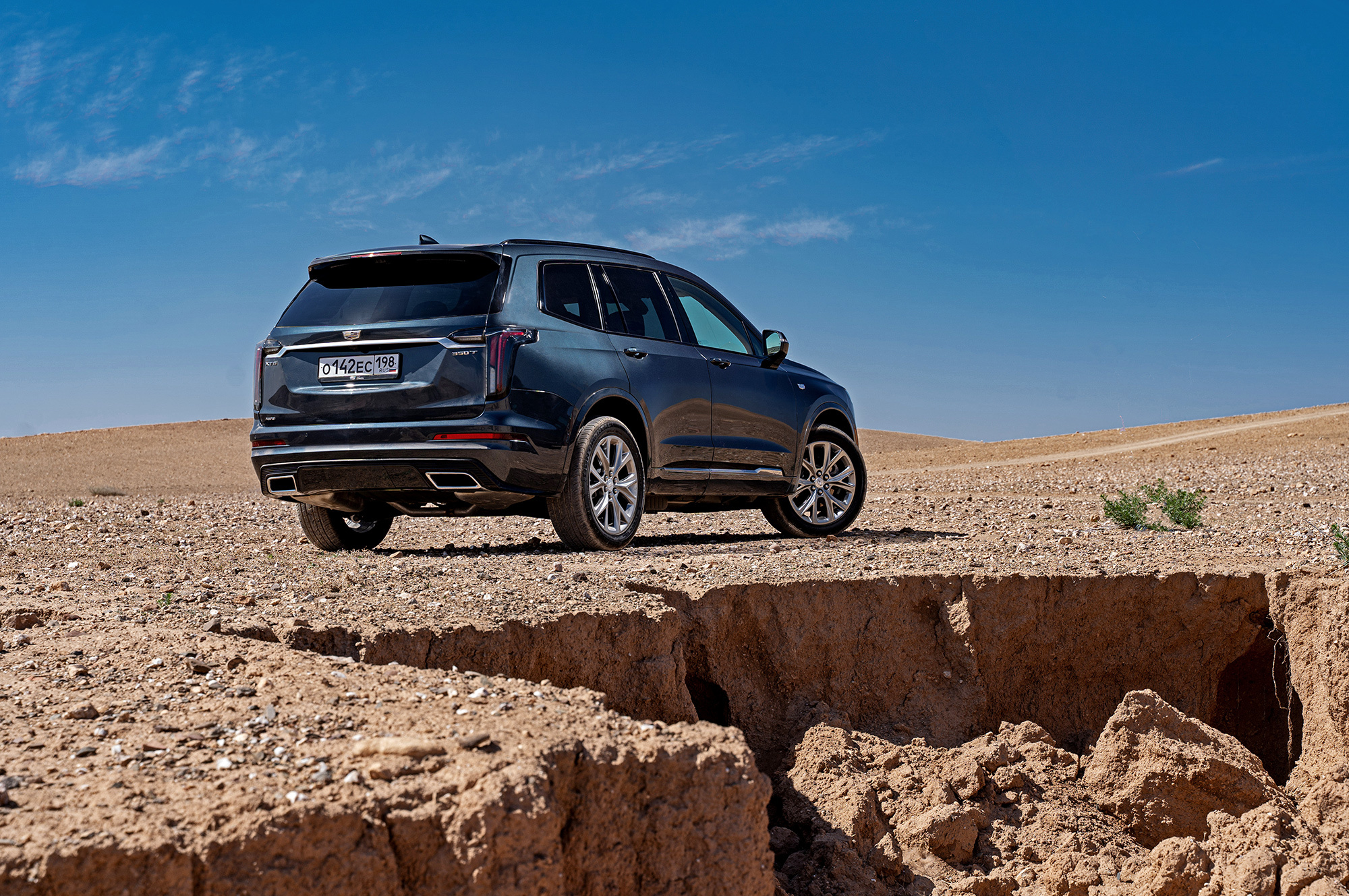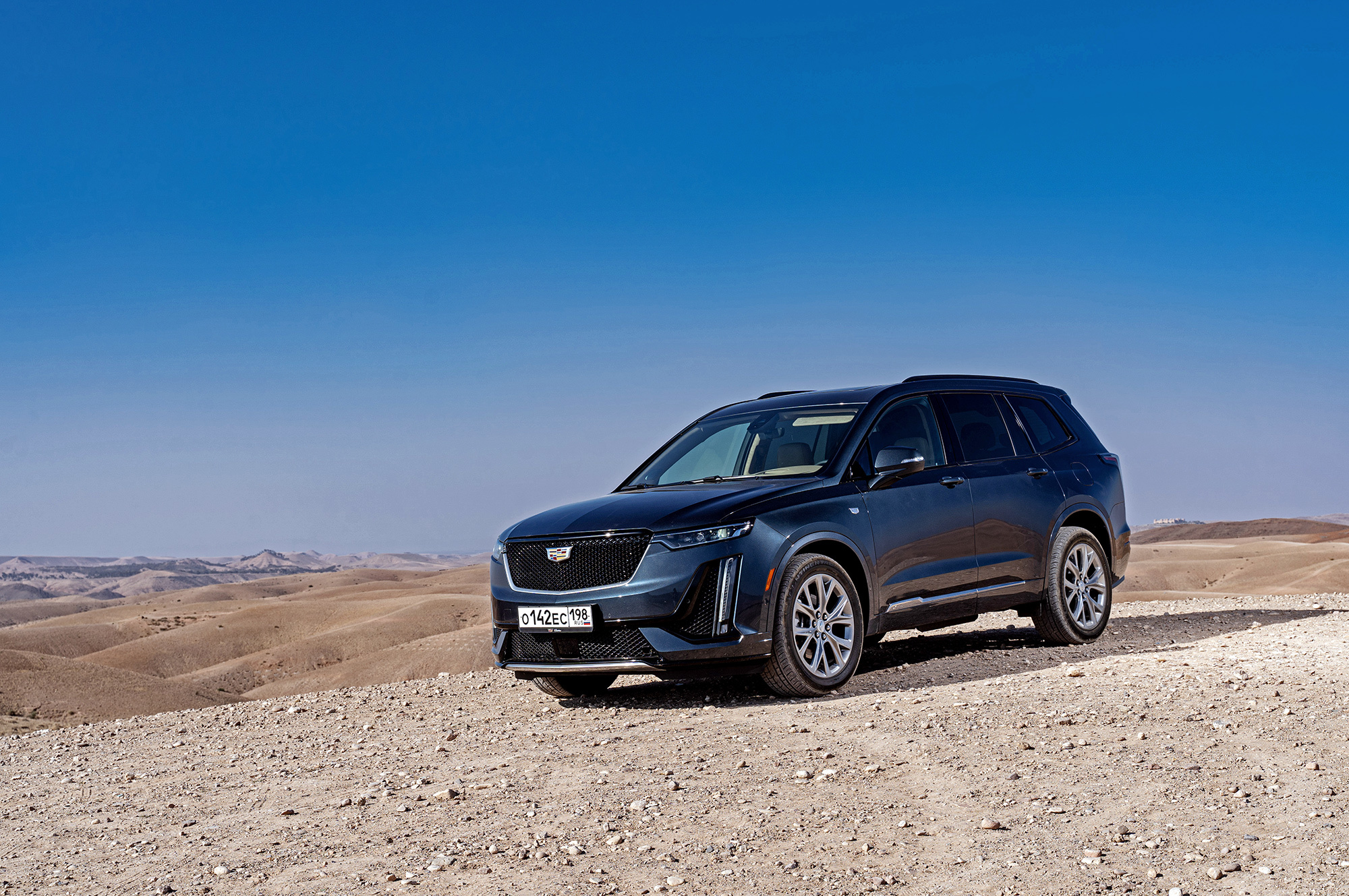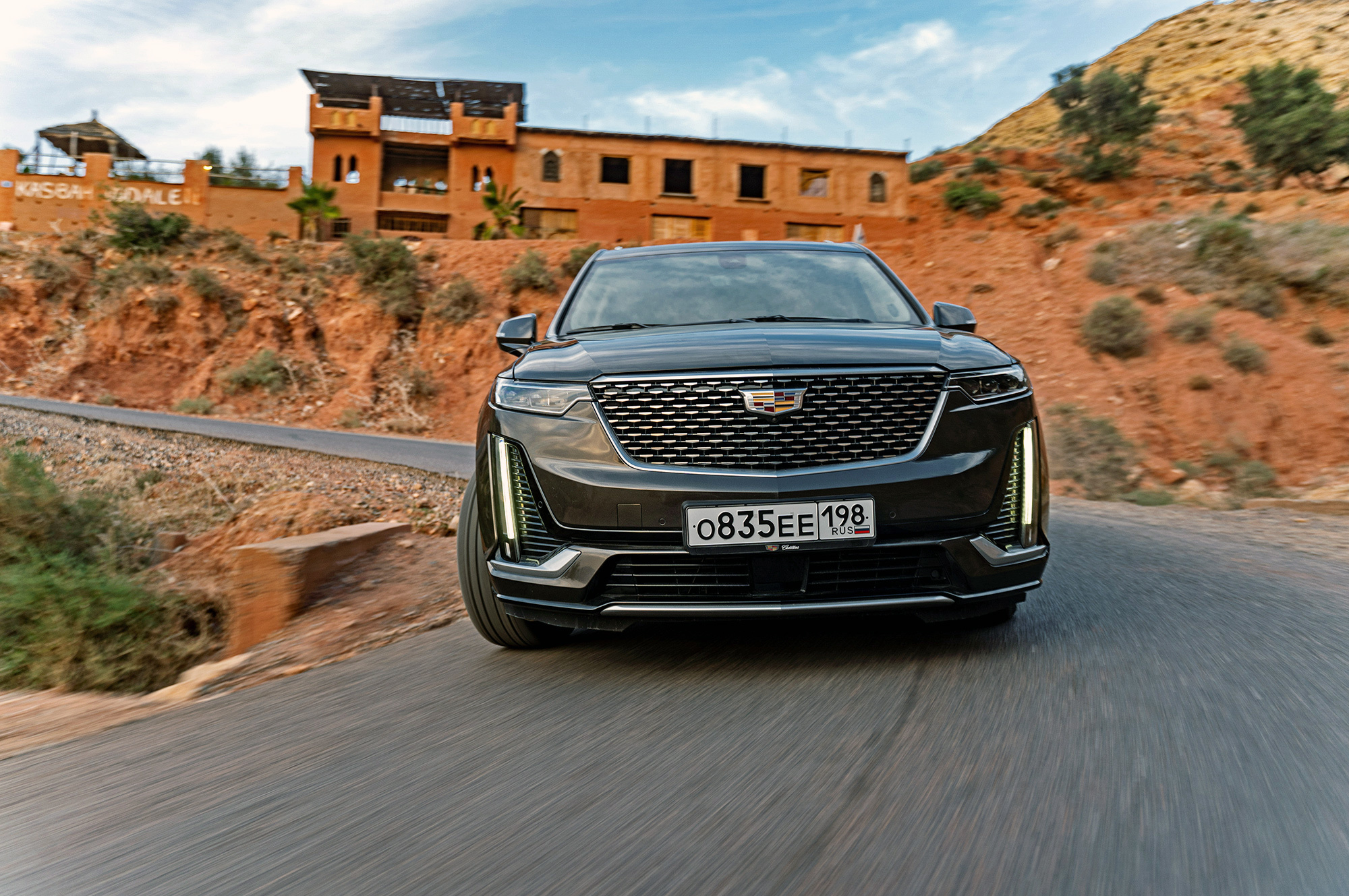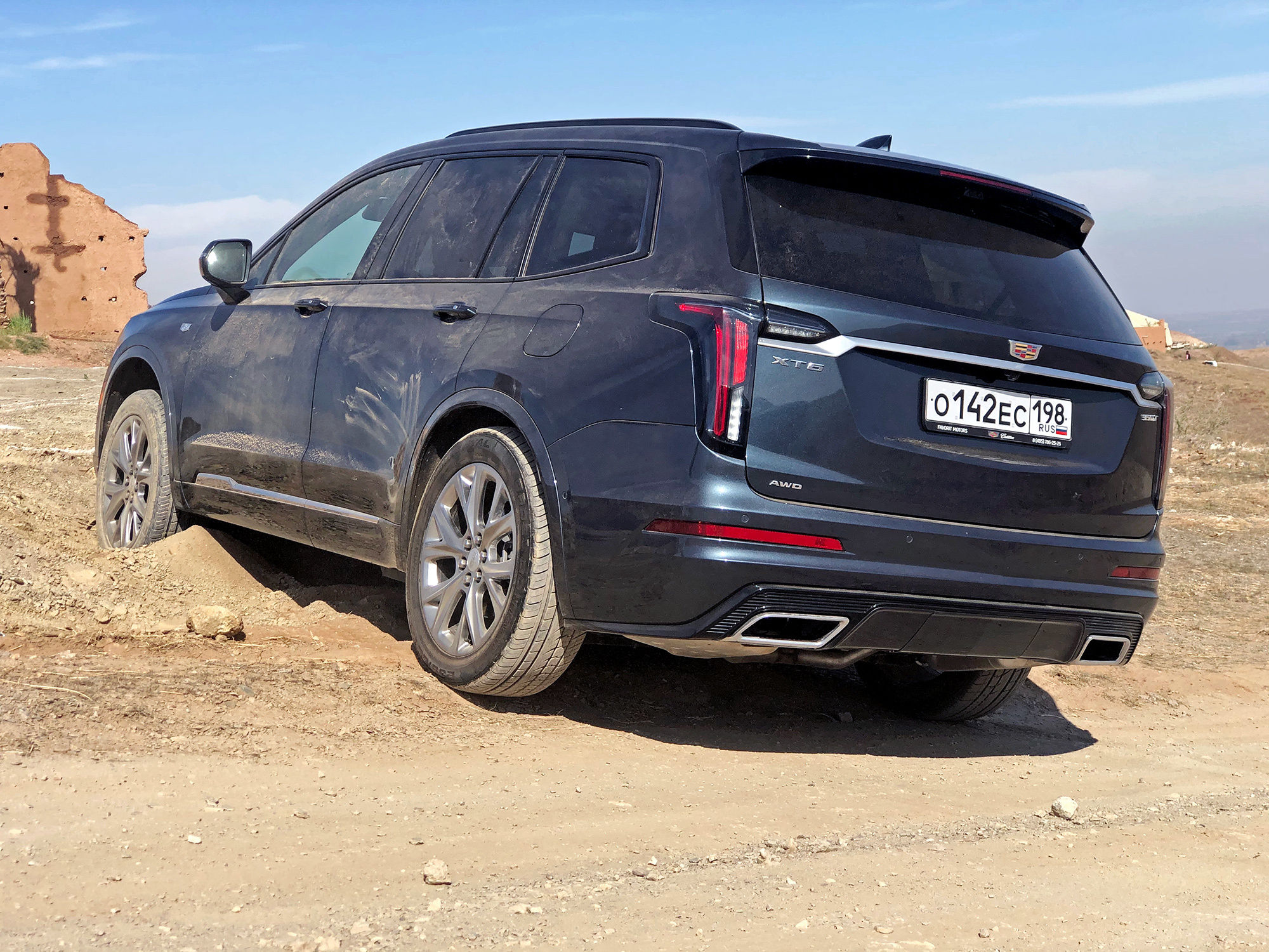 Мне нравится, как выглядит Cadillac. Вертикальные ходовые огни, размерами соперничая с фарами, кажутся слегка вычурными, но не вредят цельности образа. Пороги прикрыты дверями, однако марокканская пыль пробивается через уплотнители. Интересно, сдержат ли резинки натиск российской грязи? Арки задних колёс и вовсе остались беззащитными. Пассажирам второго и третьего рядов стоит быть внимательными при посадке.
