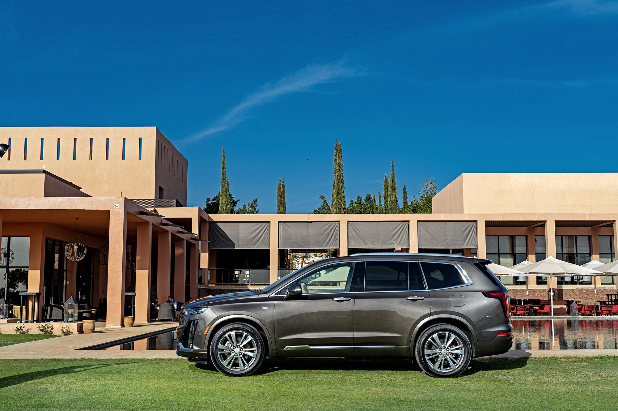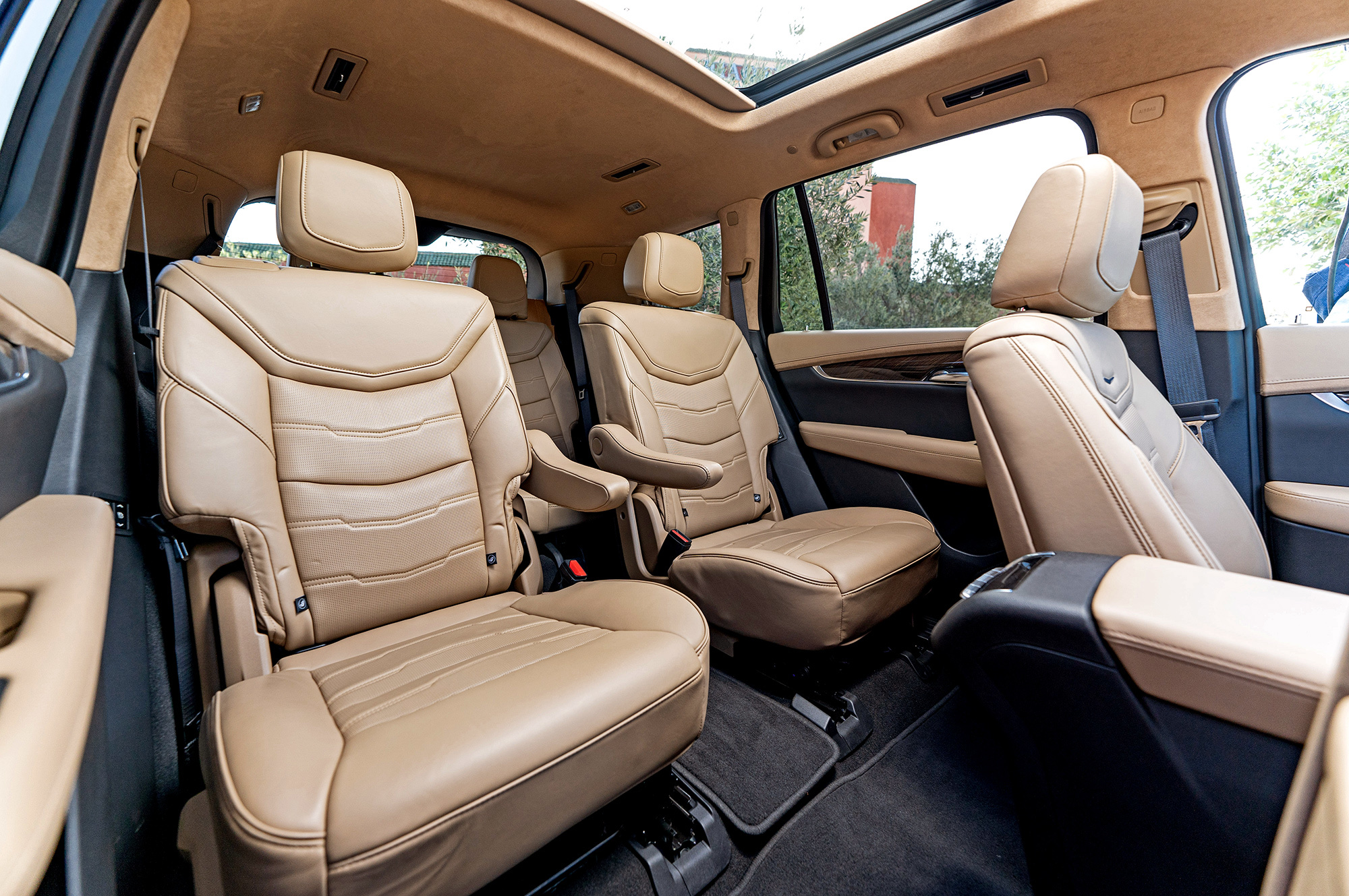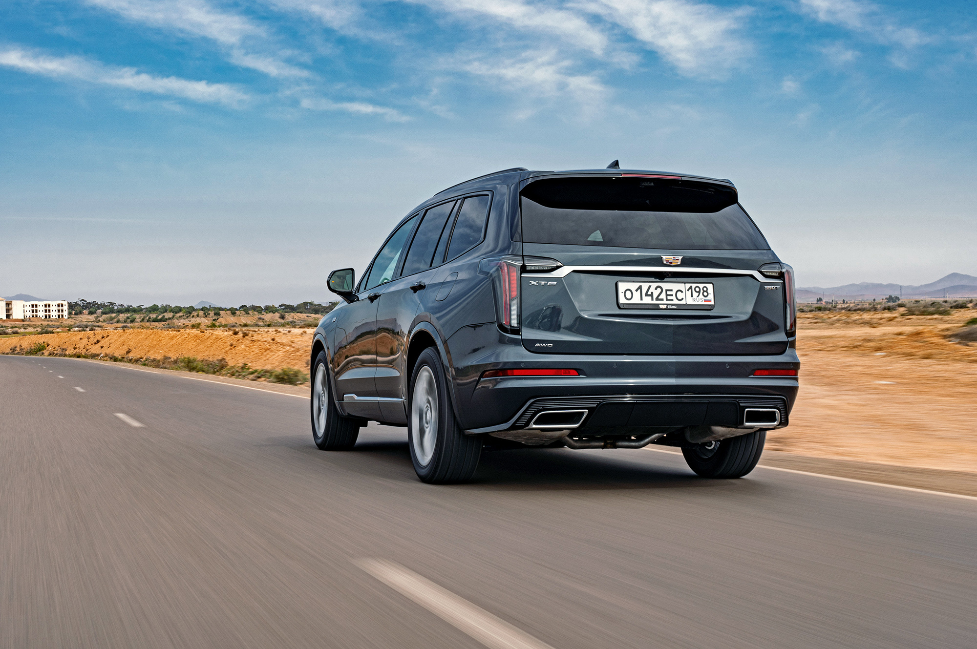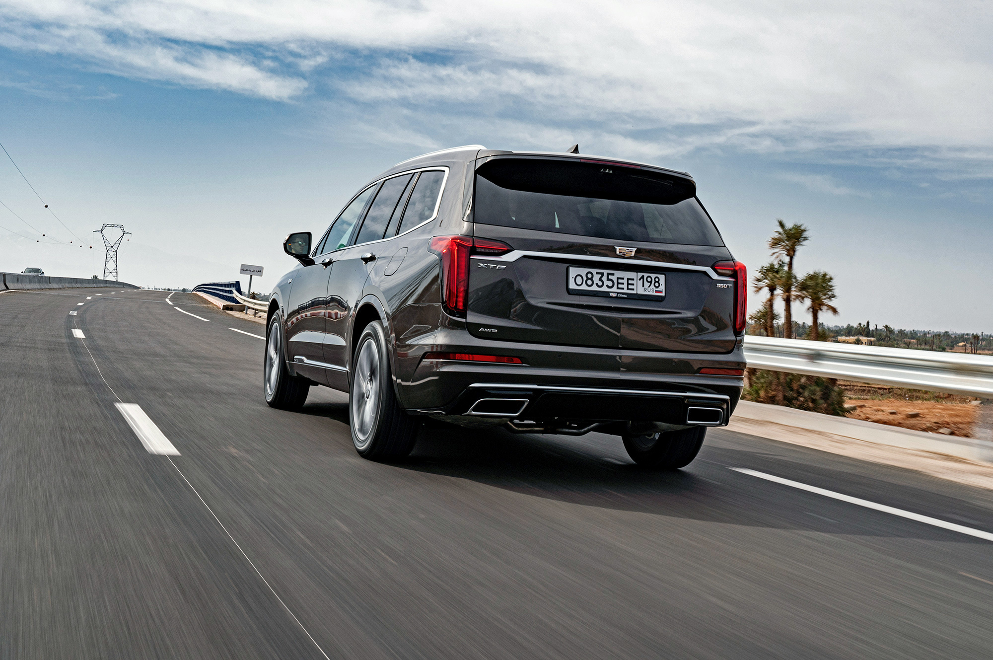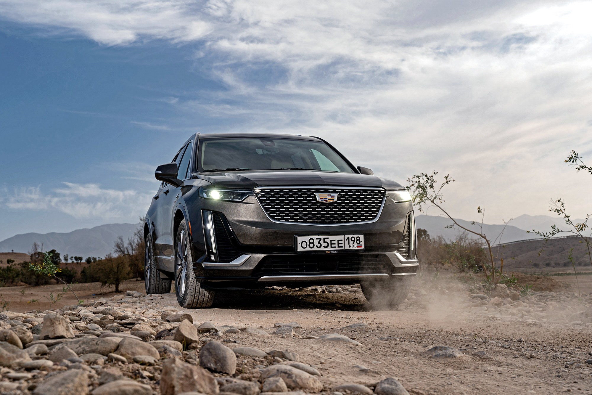 Мне нравится, как выглядит Cadillac. Вертикальные ходовые огни, размерами соперничая с фарами, кажутся слегка вычурными, но не вредят цельности образа. Пороги прикрыты дверями, однако марокканская пыль пробивается через уплотнители. Интересно, сдержат ли резинки натиск российской грязи? Арки задних колёс и вовсе остались беззащитными. Пассажирам второго и третьего рядов стоит быть внимательными при посадке.