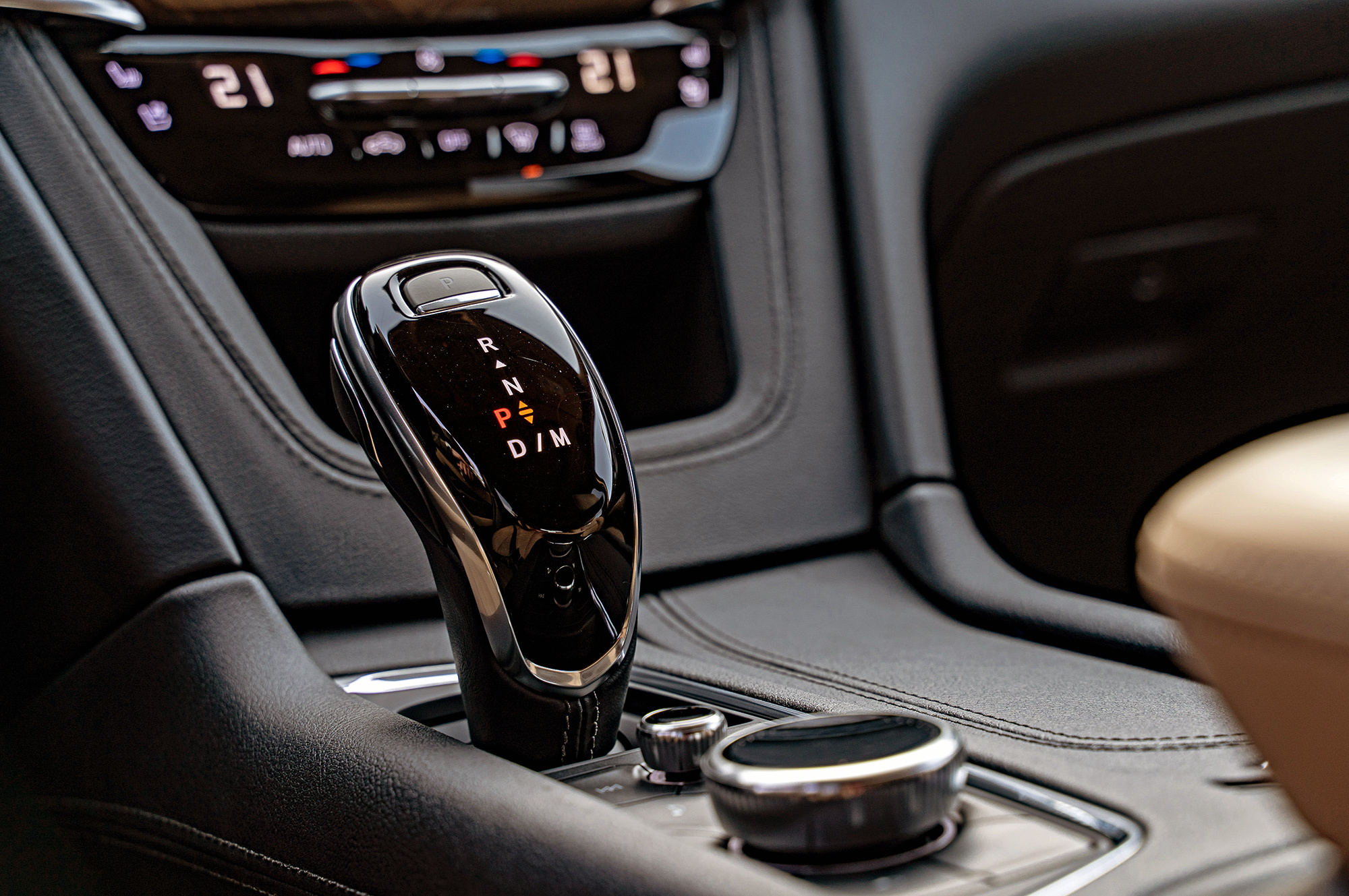 Салон отделан по принципу «дорого-богато». Пакет Platinum включает полуанилиновую кожу, фрикционные свойства которой оставляют желать лучшего, и отделанный алькантарой потолок. Чувство двойственное: вроде и нарядно, но уже немного перебор с фактурами. Обзор вперёд подпорчен пухлыми передними стойками, зато к левой почти вплотную подходит щётка стеклоочистителя.