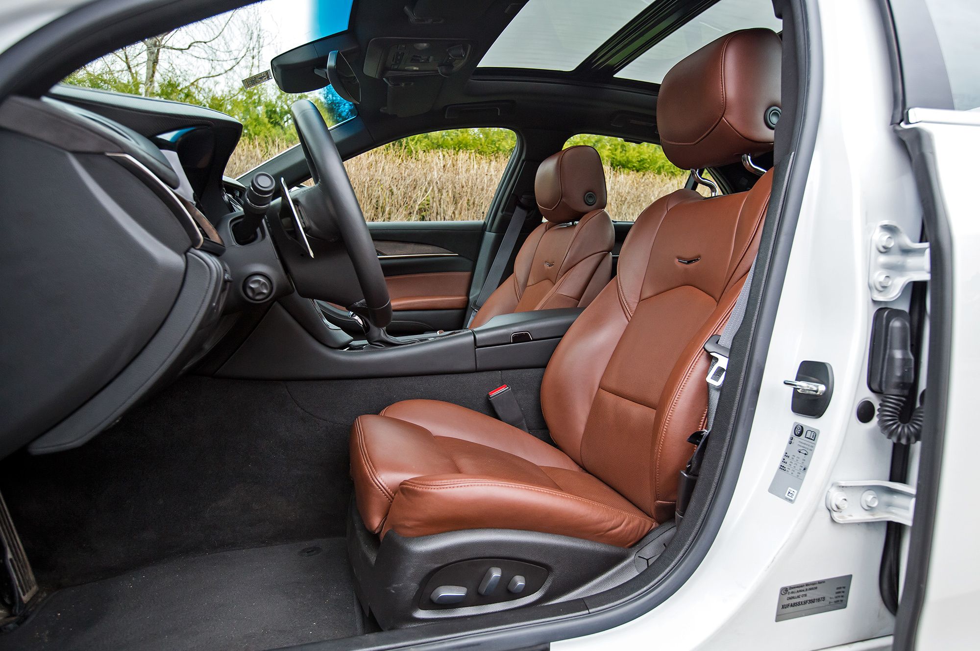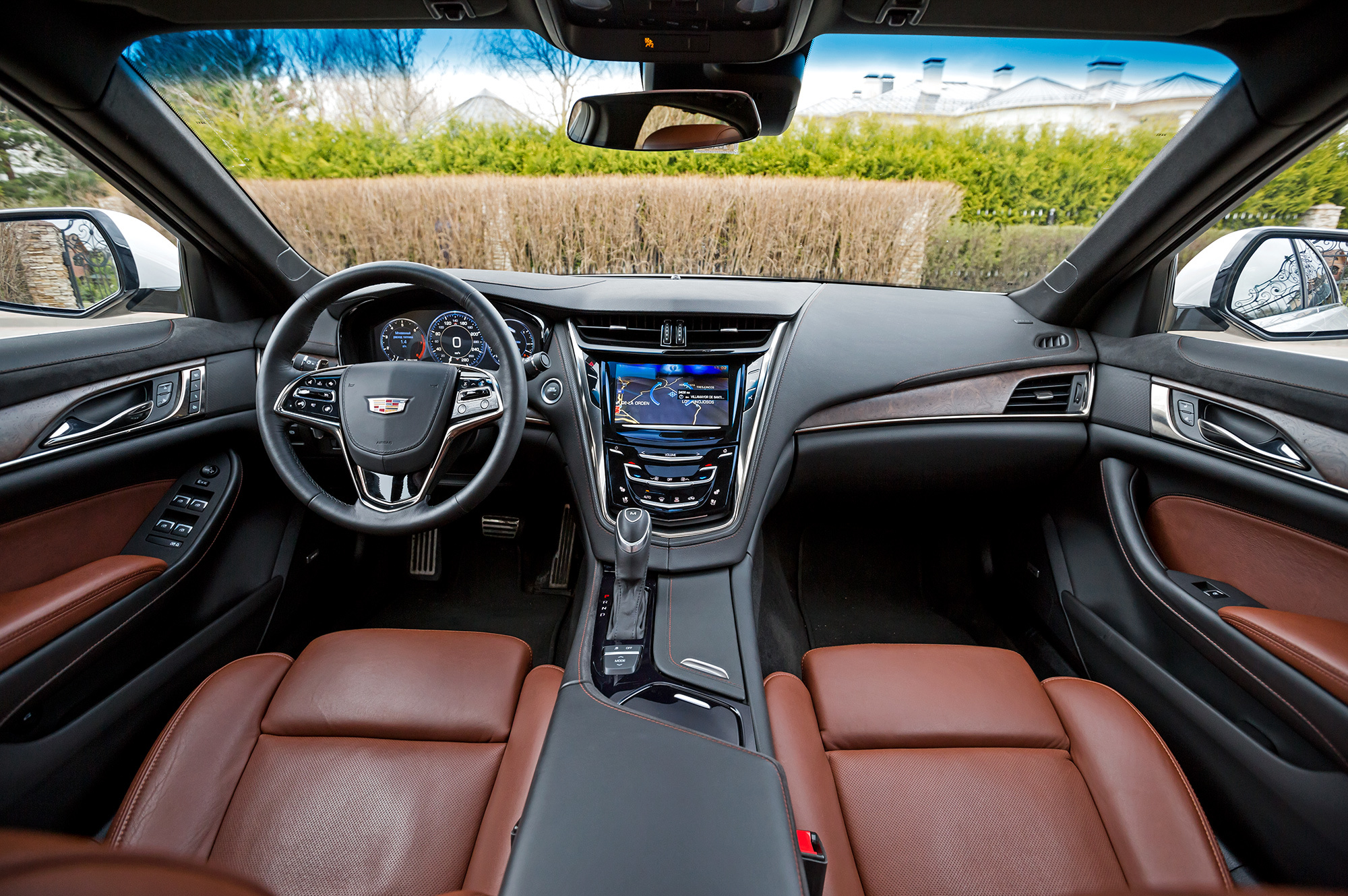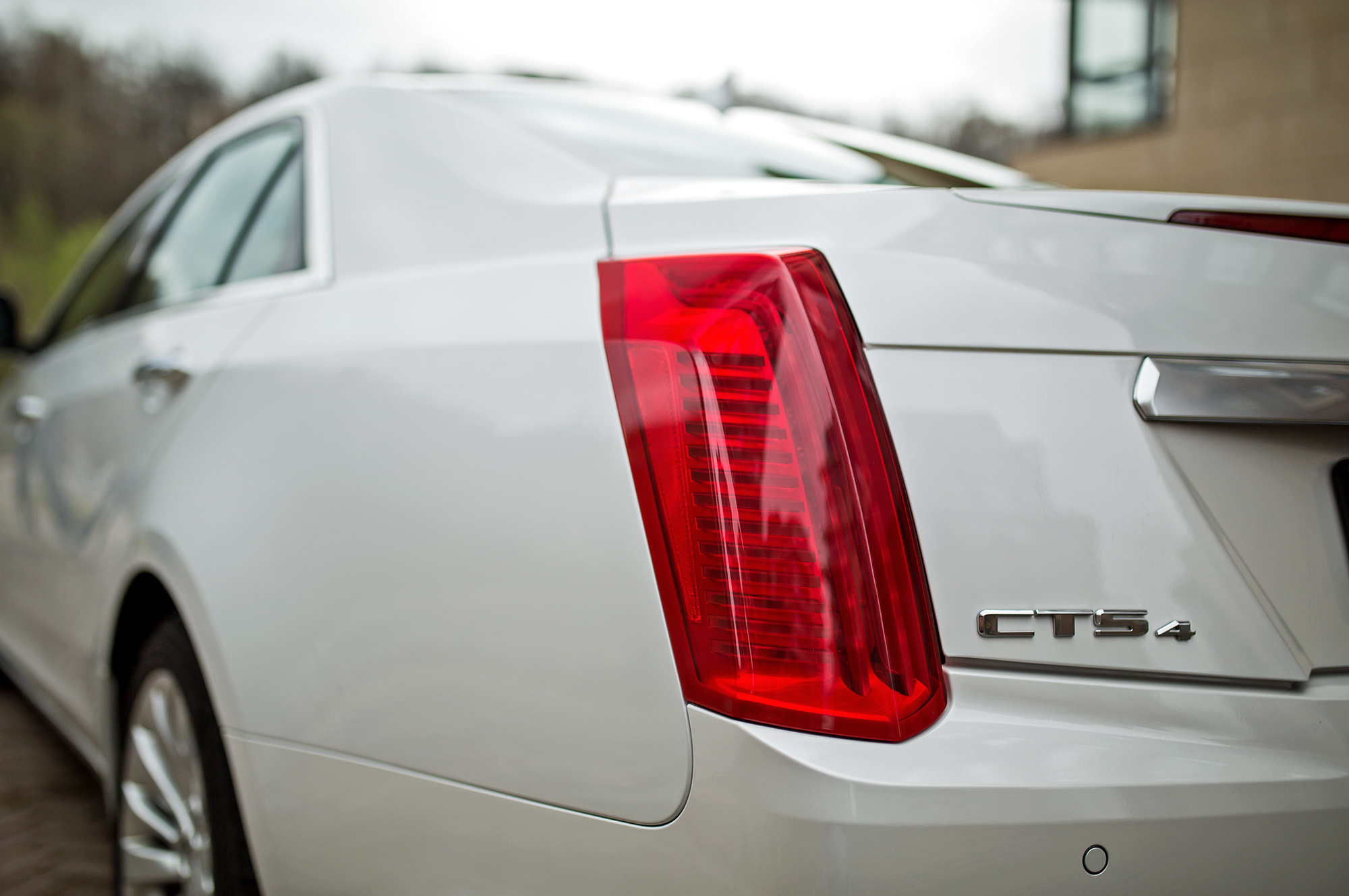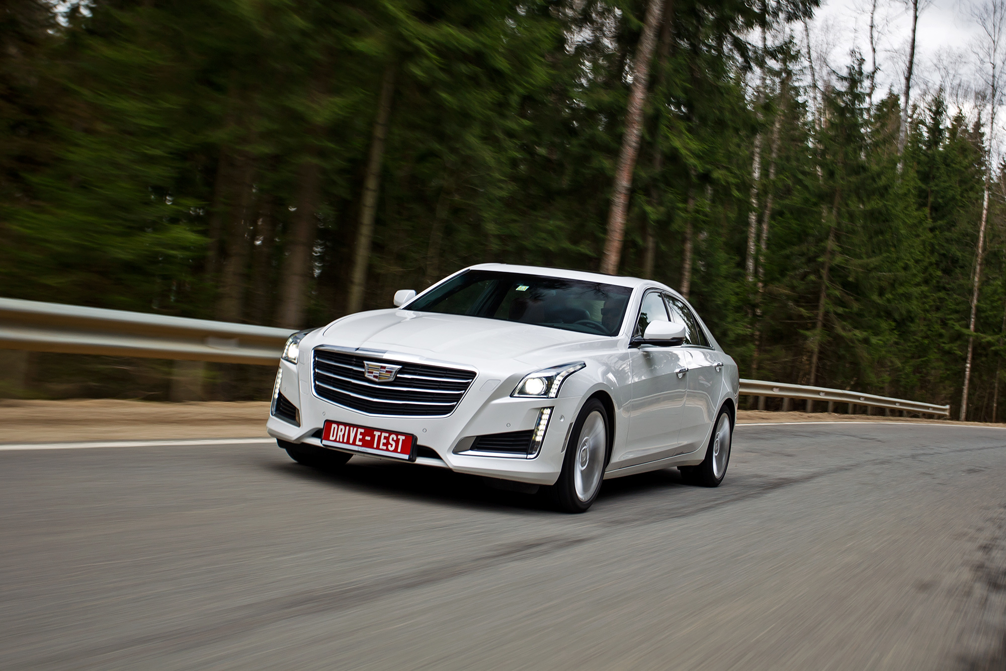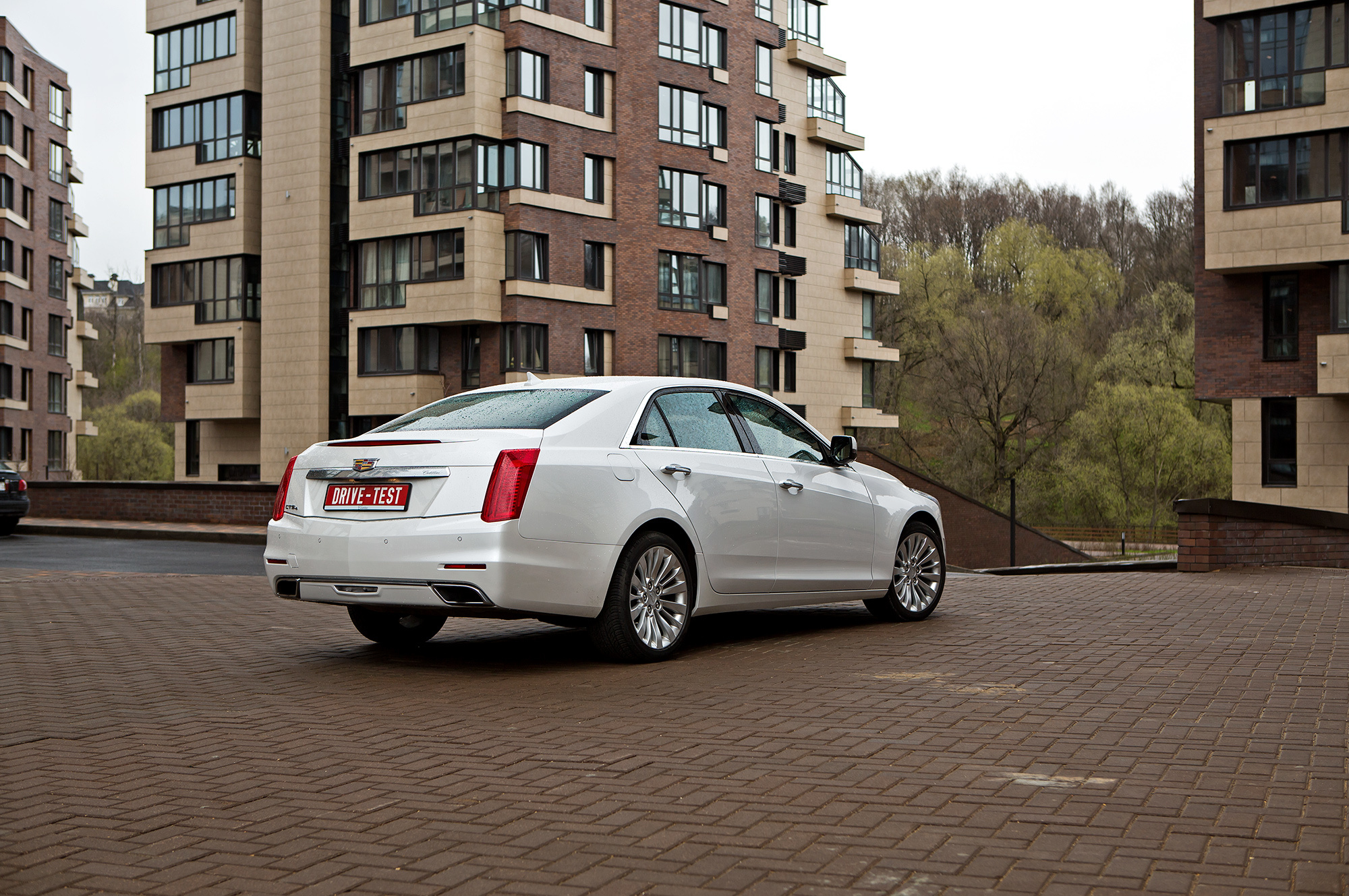 Наружность Кадиллака не столь утончённая, как у Ягуара, однако от скучной она так же далека. Гранёно-угловатый американский седан в городском потоке не спутать ни с чем! Под монументальным кузовом из алюминия, магния и многофазных сталей скрывается новая заднеприводная платформа GM Alpha, благодаря которой более длинный CTS лишь на 50 кг тяжелее аналогичного «икс-эфа» ― 1640 кг против 1590 в случае двухлитровых машин с приводом на задние колёса. Полный привод добавил нашему Кадиллаку ещё 70 кг.
