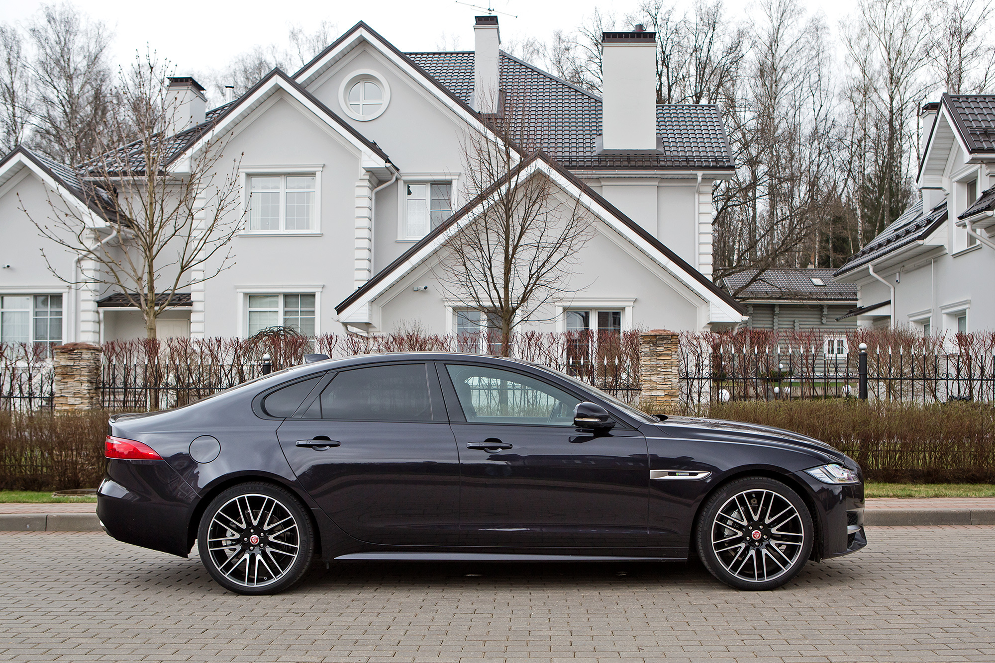 Лёгкость, присущая Ягуару на прямой, не покидает его в поворотах. Даже в базовом режиме электронноуправляемых амортизаторов седан проворно меняет направление, беспрекословно следуя за рулём, а на скоростной дуге ведёт себя железобетонно. В режиме Dynamic крены с раскачкой на неровностях становятся ещё меньше. А в пределе XF вместо того, чтобы скользить своей хитро-хищной мордой наружу, переходит на меньший радиус как под тягой, так и под сброс газа. Живой автомобиль! Иногда, правда, слишком: скоростную прямую с неровностями держать не хочет, приходится постоянно подруливать.