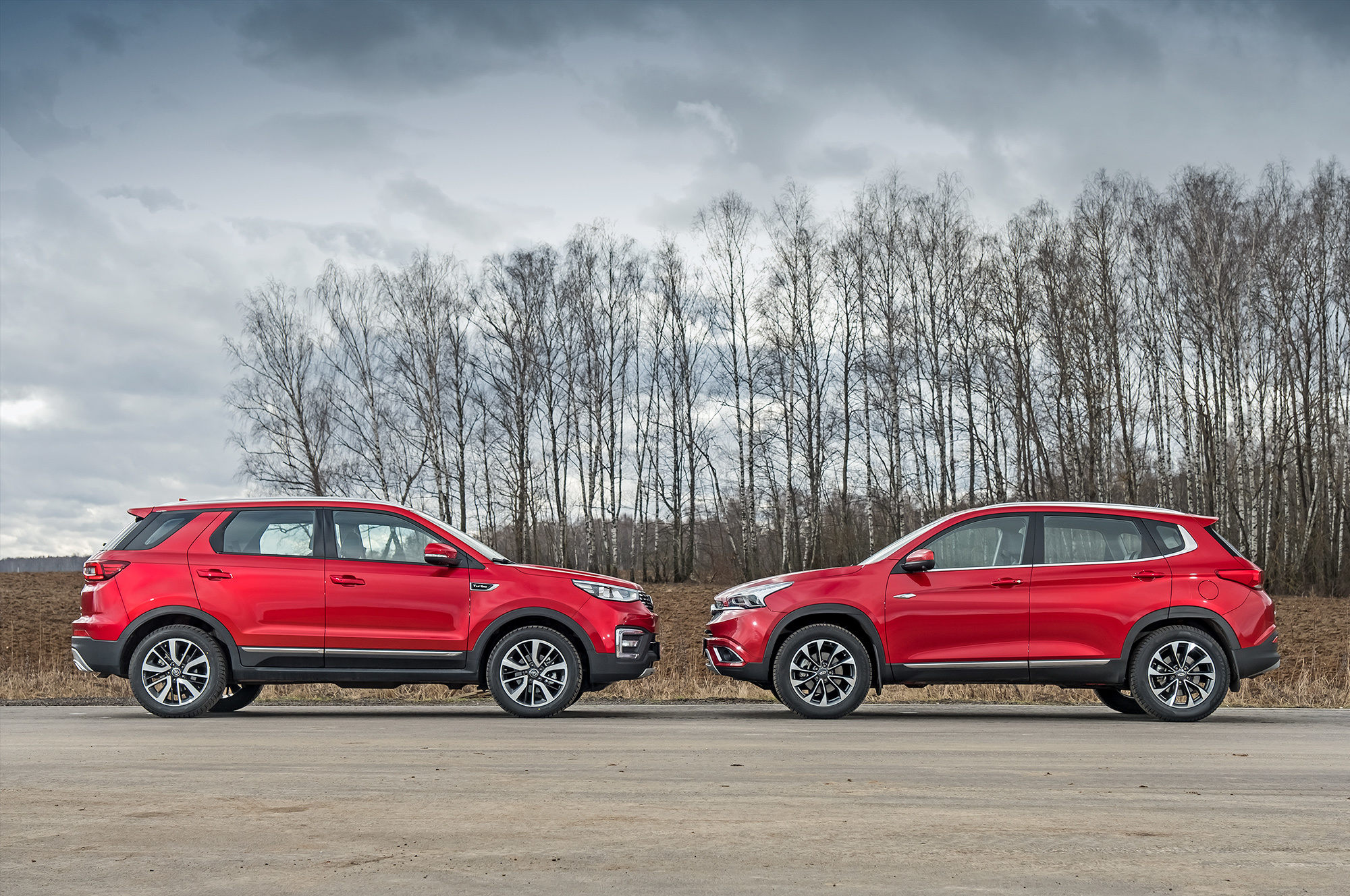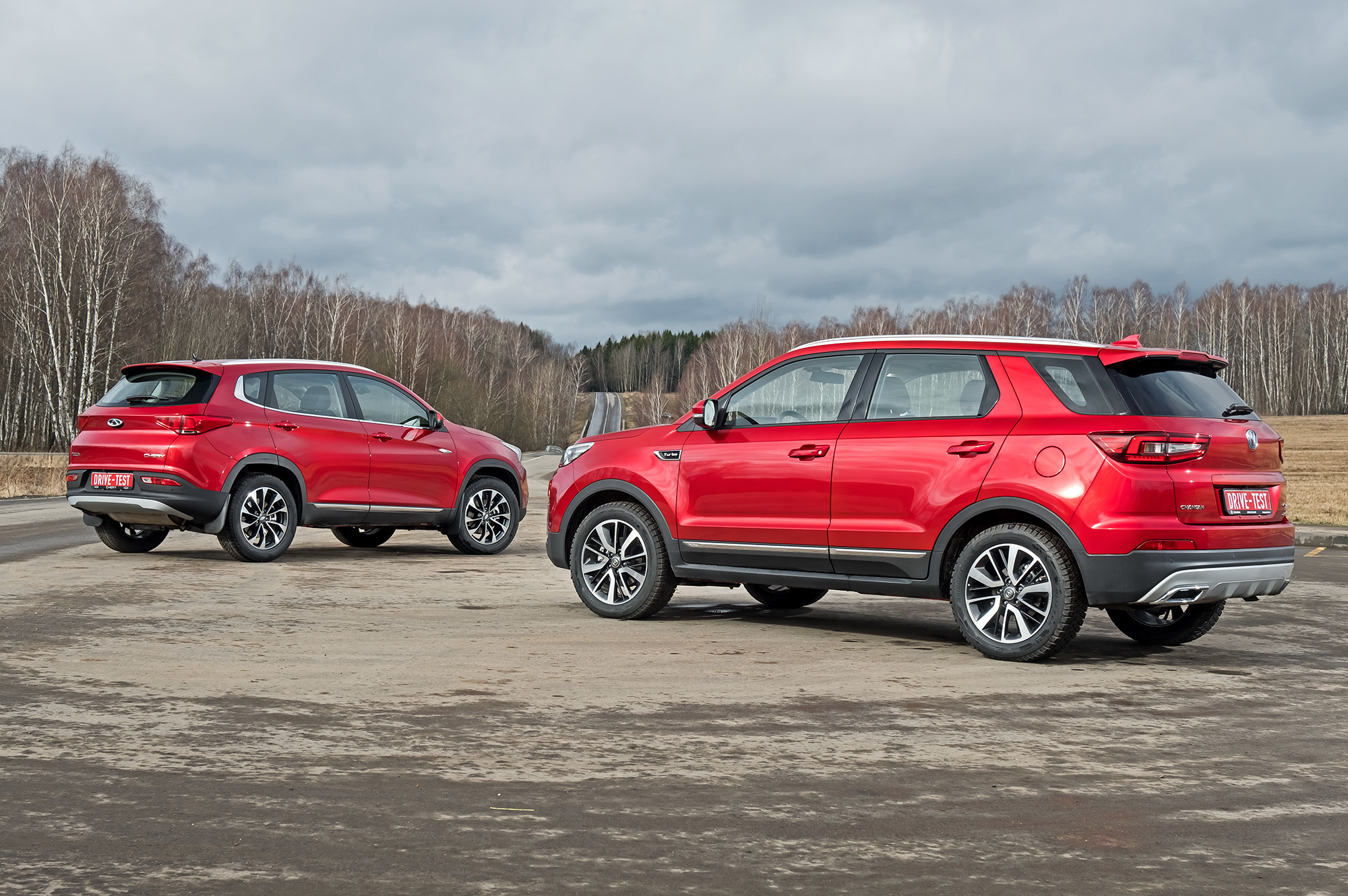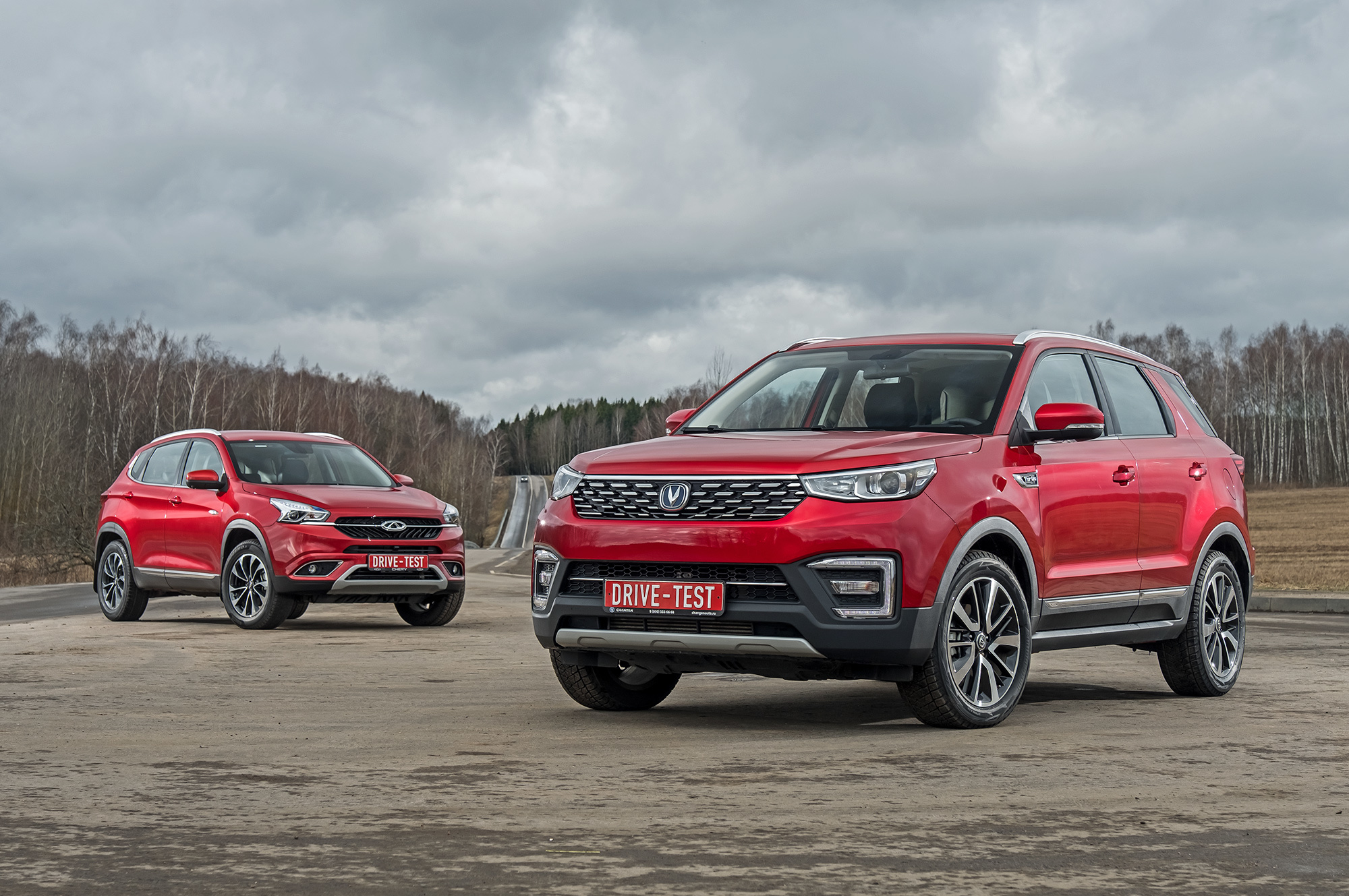 Первое впечатление: двоится в глазах. Кроссоверы Changan CS55 и Chery Tiggo 7 схожи размерами, крашены будто из одной банки и оформлены по единому канону вплоть до пластиковых накладок нижнего периметра. Но Chery дешевле. Если брать базовые комплектации с «механикой», то уже на 130 тысяч рублей после подорожания «пятьдесят пятого» до 1 329 900. В тесте заняты двухпедальные топ-версии. Согласно статистике, покупатели китайской техники не скупятся, выбирая богатые комплектации в разы чаще упрощённых.