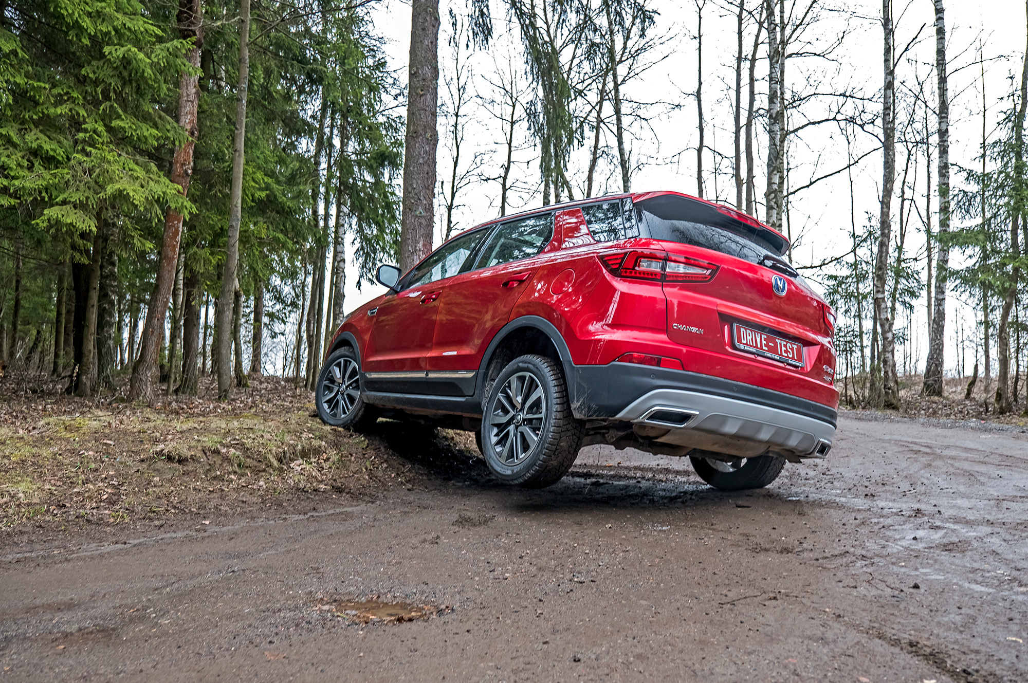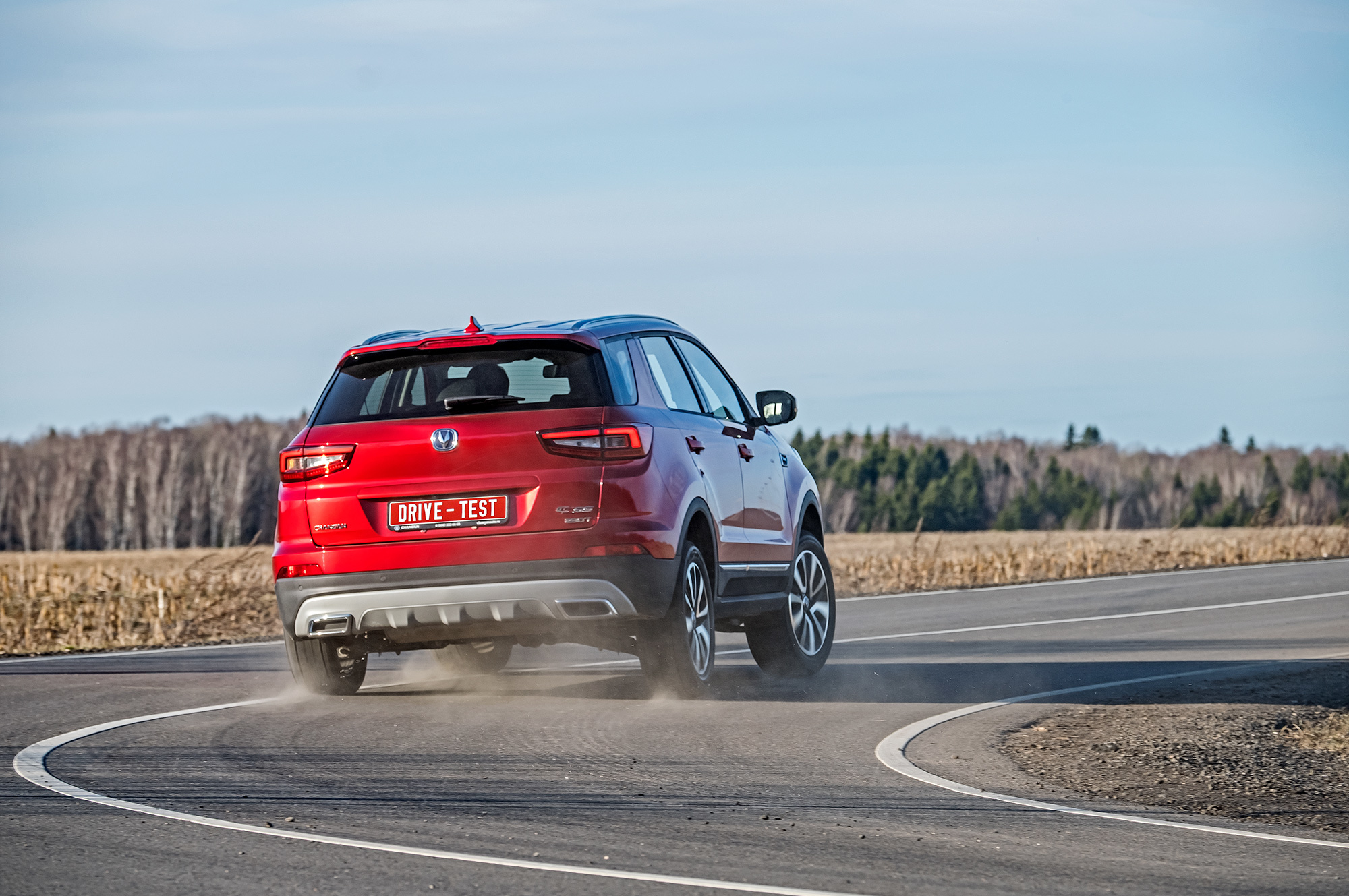 Пересаживаюсь в Changan — и по убитой дороге будто прошёл каток. Подвеска настолько успешно расправляется с разнокалиберными колдобинами, что в какой-то момент просто перестаёшь обращать внимание на качество покрытия. Объезжать приходится разве что особо крупные ямы, и к таким манёврам лучше готовиться заранее. В скоростном слаломе CS55 не силён. Даром что руль информативен — глубочайшие крены, неприлично ранний снос и панически настроенная система стабилизации напрочь отбивают желание лихачить.