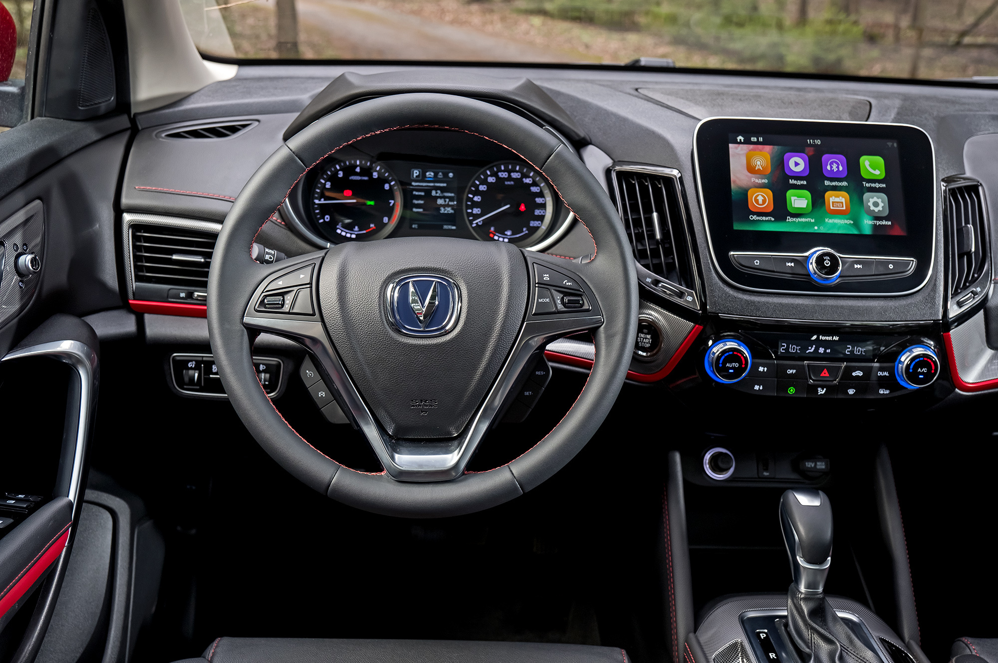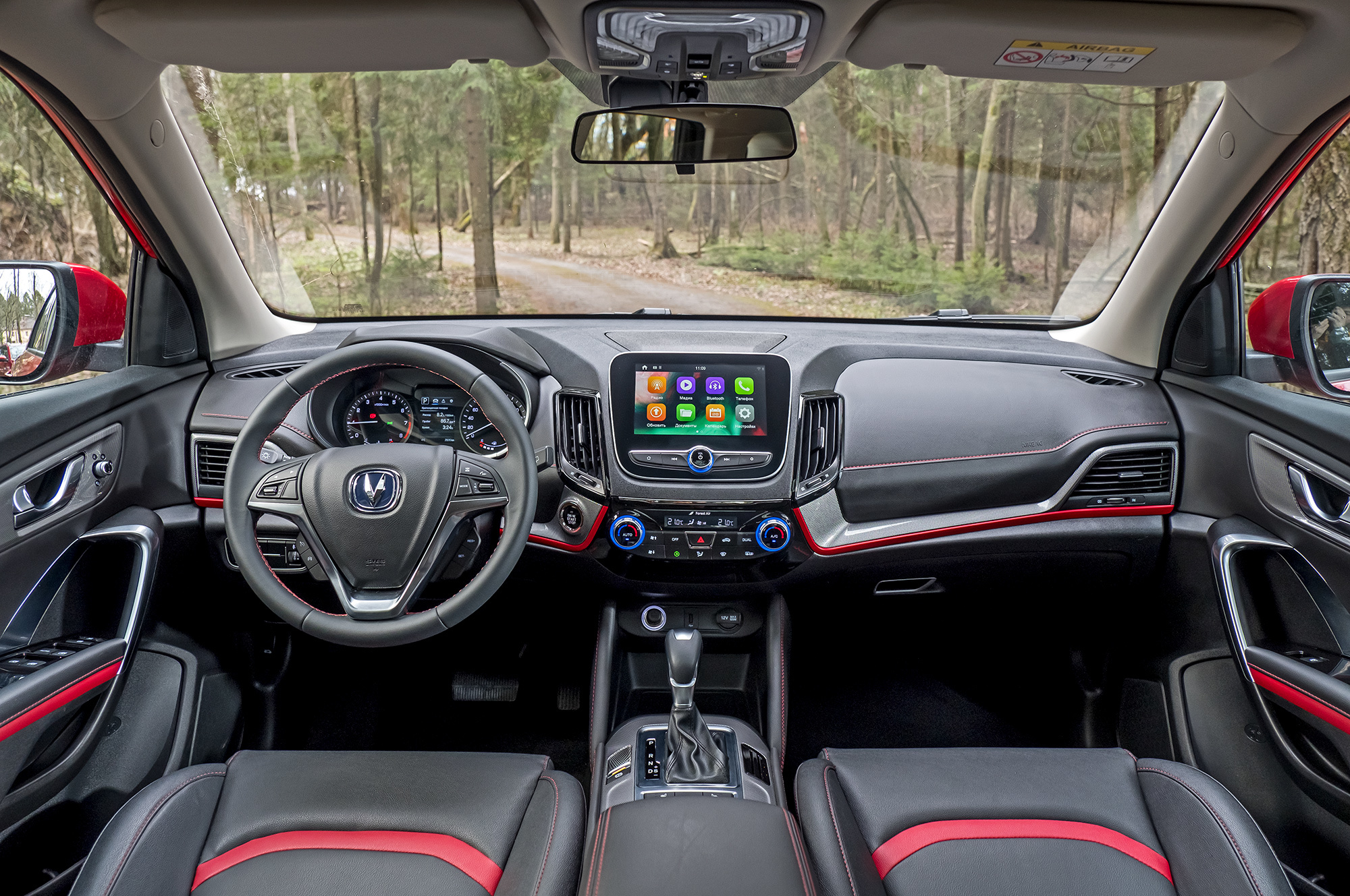 Эргономика Чанъаня вообще заслуживает похвалы. Наклонный дисплей медиасистемы, вопреки ожиданиям, не бликует на солнце. Управление двухзонным климат-контролем организовано логично. Увы, после ночной стоянки салон прогревается долго, а в поездках то и дело переохлаждается зарядами прохладного воздуха. Присмотревшись к деталям, понимаю, почему интерьер CS55 был обновлён на родине всего через полтора года после премьеры. Только на передней панели я насчитал семь сортов пластика: от вполне себе ничего до откровенно дешёвого.