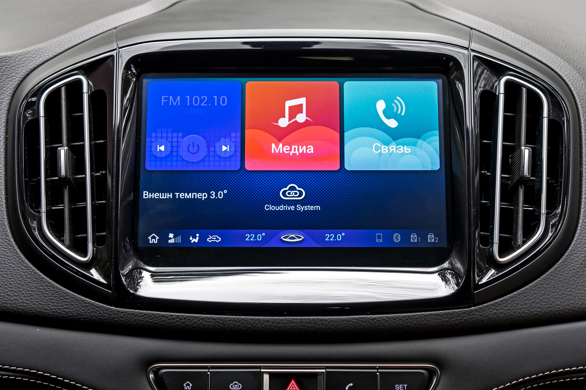 Полуавтоматический кондиционер Chery работает стабильнее, а в отделке использованы материалы более высокого и стабильного качества. Крупный информативный дисплей удачно вписан меж странноватых аналоговых шкал. Не скупится Chery на авторежим для всех стеклоподъёмников. По ночам переднюю и боковые панели оживляет фоновая подсветка. Жаль, её не хватило на бардачок. И позор тому, кто примастырил основной USB-разъём в труднодоступную нишу под консолью. Миссия подключения телефона невыполнима.