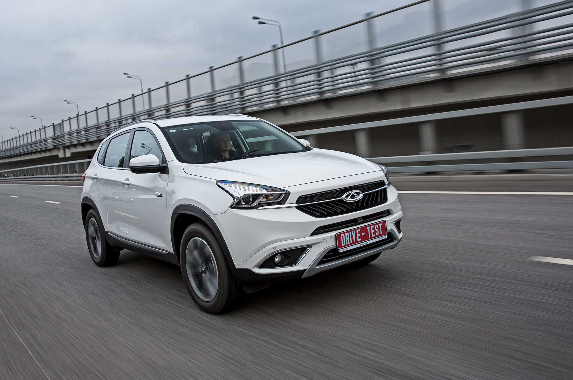 На ходу кроссовер неоднозначен. Руль вязок не только в нулевой зоне: на нём постоянно присутствует какой-то силовой фон. Стабилизирующее усилие нарастает нелогично, словно дискретно: при отклонении от нуля возникает лёгкое сопротивление, степень которого не меняется с увеличением угла поворота. Отсюда и поисковое руление в вираже. При быстрых перестроениях реакции размазаны. Только заметно накренившись, Tiggo кое-как меняет курс. А в пределе просто сползает передней осью к внешней бровке.