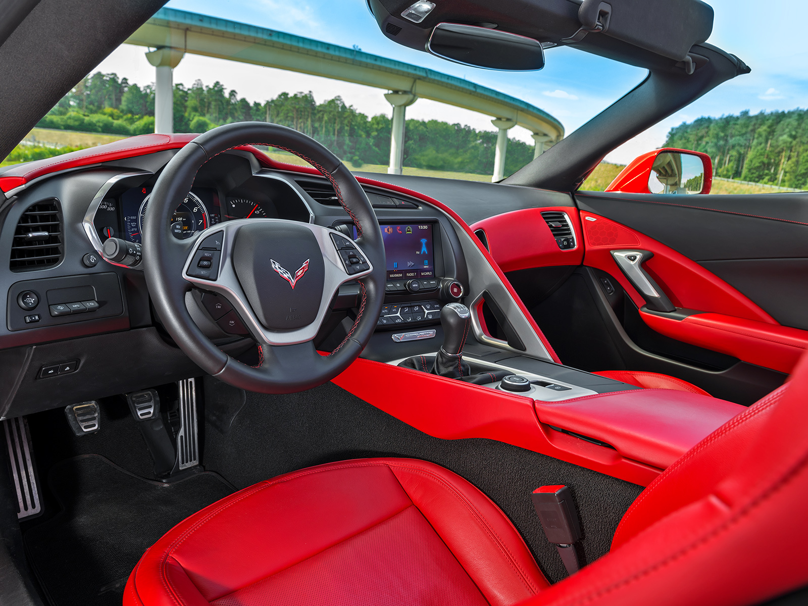 Рычаг семиступенчатой «механики» хорошо ложится в руку. Ходы невелики, но привод мог бы быть и почётче. Учитывая момент, с которым приходится иметь дело двухдисковому сцеплению, педаль достаточно легка, чтобы изредка потолкаться в пробке, хотя и не слишком информативна. Тут очень длинные передачи: схлопотать штраф за превышение скорости в городе можно, не слезая с первой, которая заканчивается на 85 км/ч. Срываясь с места, Corvette виляет бёдрами и смачно жжёт свой специально разработанный 20-дюймовый Michelin Pilot Super Sport ZP. Жалко такие шины!