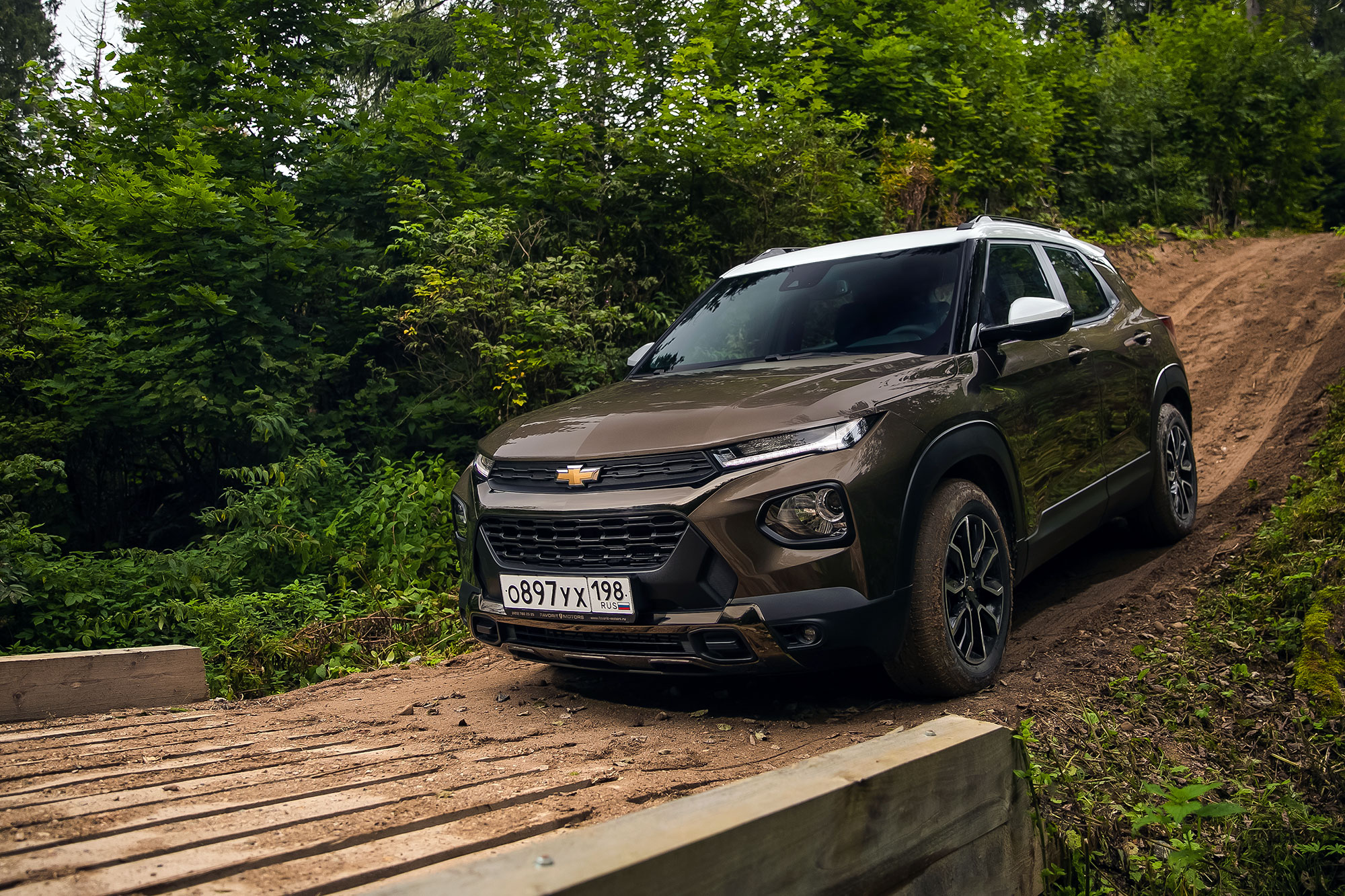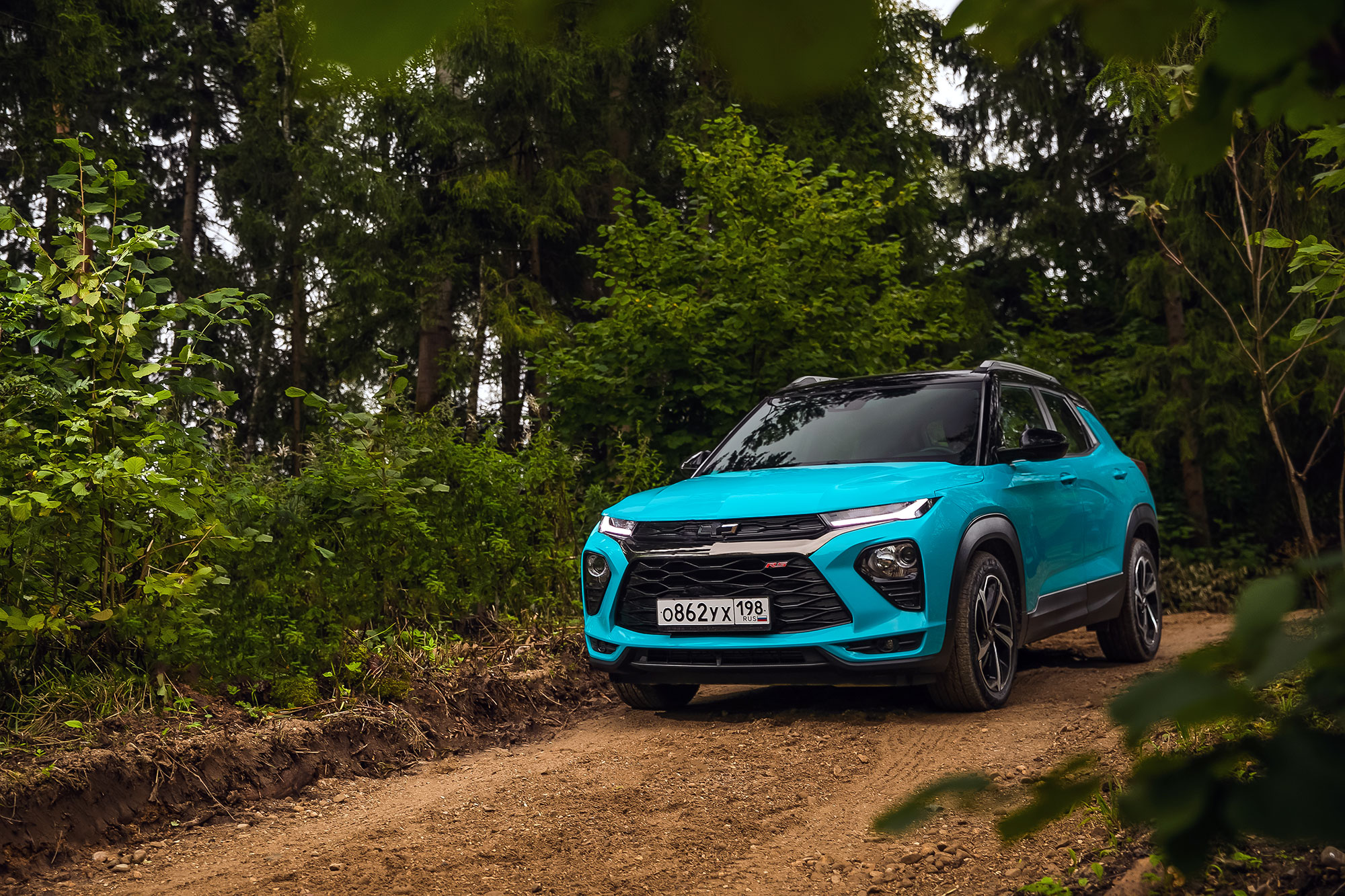 Шины Continental UltraContact UC6 225/55 R18 делают Trailblazer RS чуть плотнее и собраннее. Activ, обутый в Hankook Ventus S1 Evo 2 SUV 226/60 R17, ожидаемо оказывается менее тряским. В целом, обе версии хорошо противостоят тому, что называется асфальтовой дорогой на нашем маршруте. Парадокс в том, что из-за размерности колёс у как бы рассчитанной на приключения версии Activ клиренс на сантиметр меньше, чем у псевдоспортивной «эрэски», — 183 мм против 194.