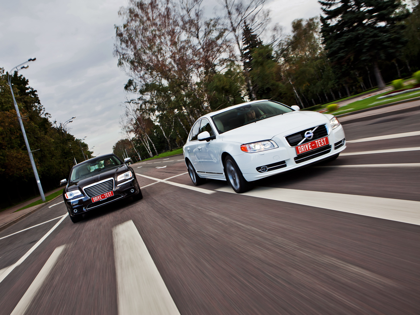 Седан Volvo S80 — тоже своего рода обманка. Внешность спокойная, не вызывающая, но едет шведская четырёхдверка… После Крайслера «восьмидесятка», что заправский спорткар, — быстрая и отзывчивая! Трёхлитровый турбомотор развивает 440 Н•м уже при 2100 об/мин — и с этой отметки, вгрызаясь в асфальт всеми четырьмя колёсами, S80 уносится вперёд. Разгон напористый, агрессивный, не теряющий энтузиазма и после 150 км/ч. По паспорту S80 достигает сотню спустя 6,7 с, а 300C — за семь ровно. Но ощущения намекают, что разница здесь в пару секунд.