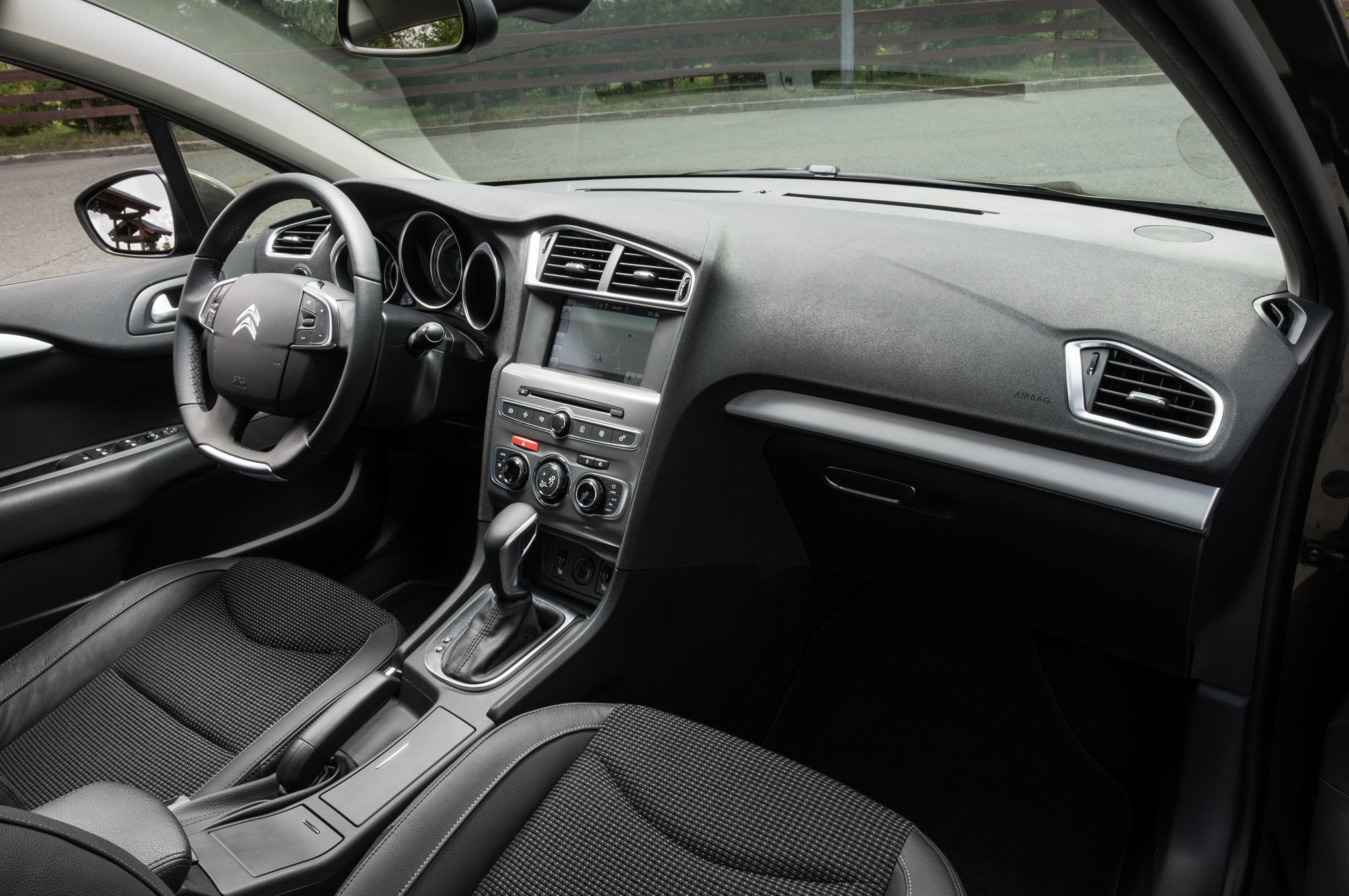 Доработанные бензиновые двигатели отвечают нормам Евро-6, хотя по документам всё ещё сертифицированы в России по Евро-5. В «турбочетвёрке» заменены насос высокого давления и термостат, чей температурный датчик прежде безбожно врал и загонял на сервис, так как двигатель из-за ошибки попросту не заводился. Что касается дизеля, то он хорошо знаком по родственной модели Peugeot 408. Во Франции хэтчбек C4 солярки давно не гнушается, наши раздумывали, сомневались — но вот решились. «Механический» седан на тяжёлом топливе получит от меня приз водительских симпатий, но начинаю я с «автоматического» С4 THP. Двигатель запускается кнопкой слева от руля.