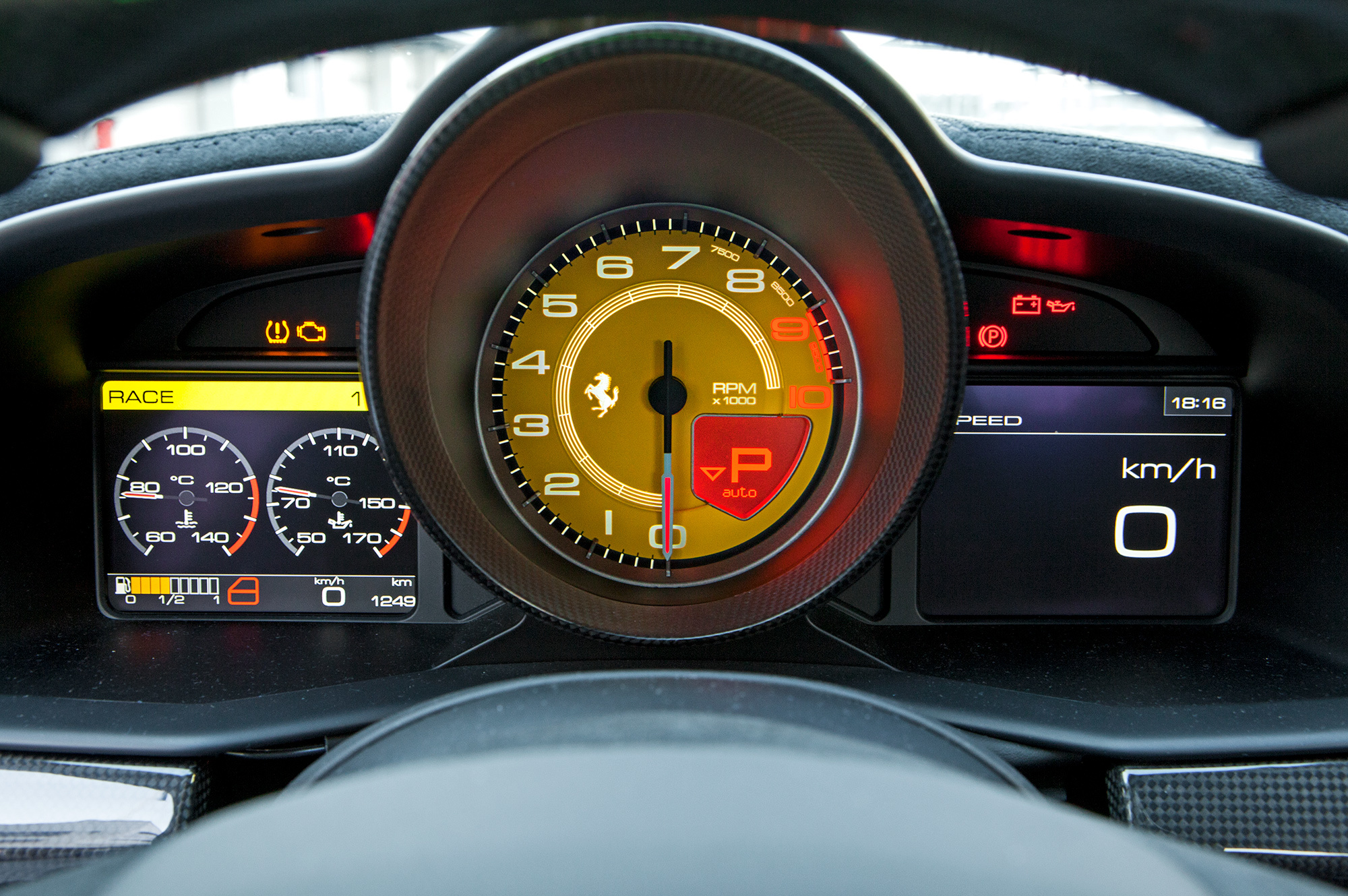 А ведь Speciale хороша не только на треке. Если бы не строго прожиточный минимум звукоизоляции да дико шумный Michelin, сошло бы и на каждый день. Тут совершенно особое сочетание комфорта, энергоёмкости и управляемости. На Moscow Raceway это что-то не менее острое и отзывчивое, чем Porsche 911 GT3 RS, а на общественных дорогах Ferrari при неизменной собранности может быть плавной, как 911 Turbo, если не мягче. Чёрная берлинетта не ассоциируется с большим туризмом, но, как и в случае с 488 GTB, шасси готово к дальним вояжам. Да только нельзя — коллекционная вещь…