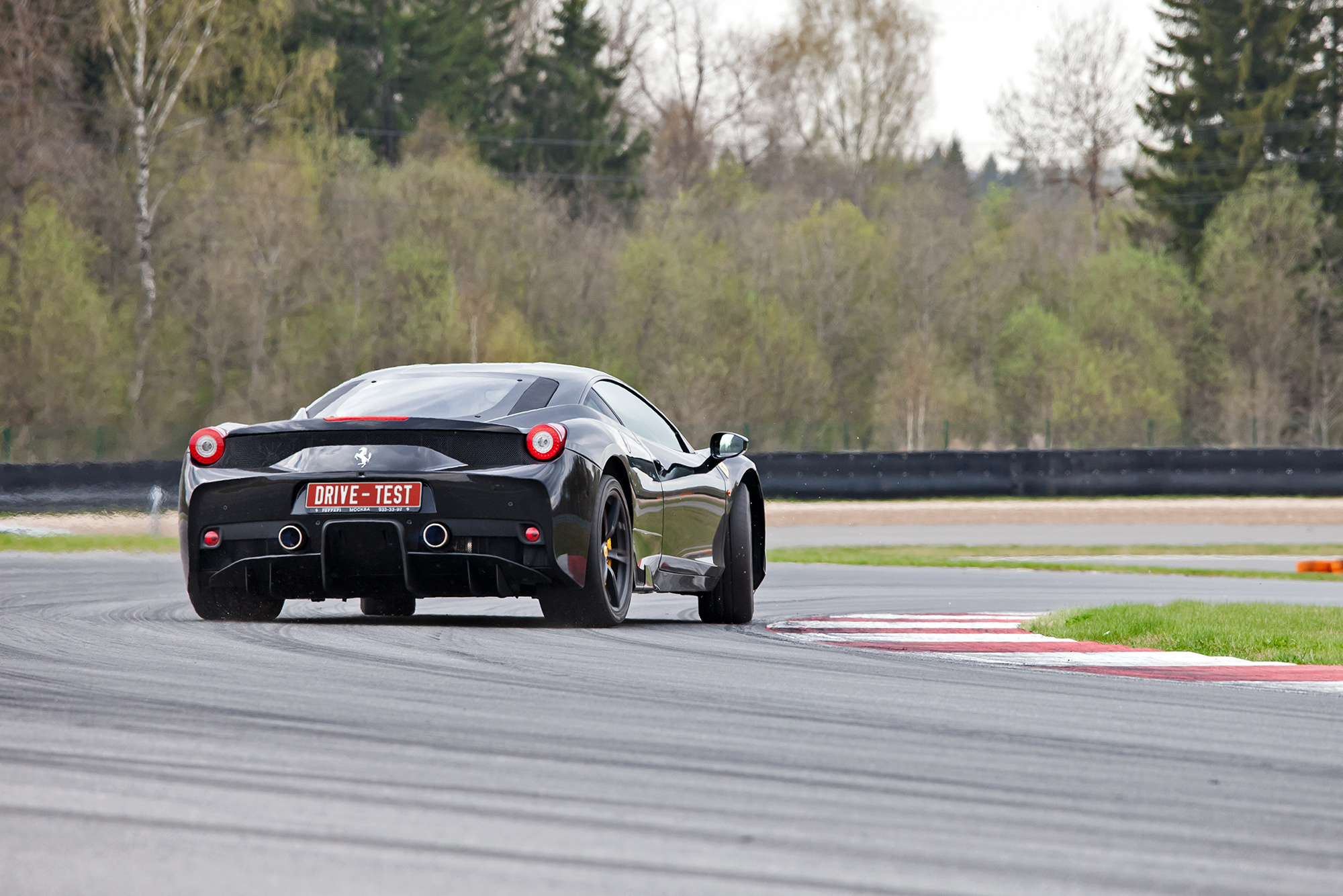 В отличие от нежной и вёрткой базовой Италии облегчённая на 90 кг Speciale настроена так, чтобы вдумчиво и методично дубасить по треку. Правда, из-за этого в поведении тут больше Porsche, чем собственно среднемоторных Ferrari. Курсовая устойчивость заметно выше, чем у 458 или 488 GTB. На большой скорости машина ощущается сильно недостаточной. Мало отклонять хваткий, перегруженный переключателями руль, — нужно газом вкручивать машину в поворот.