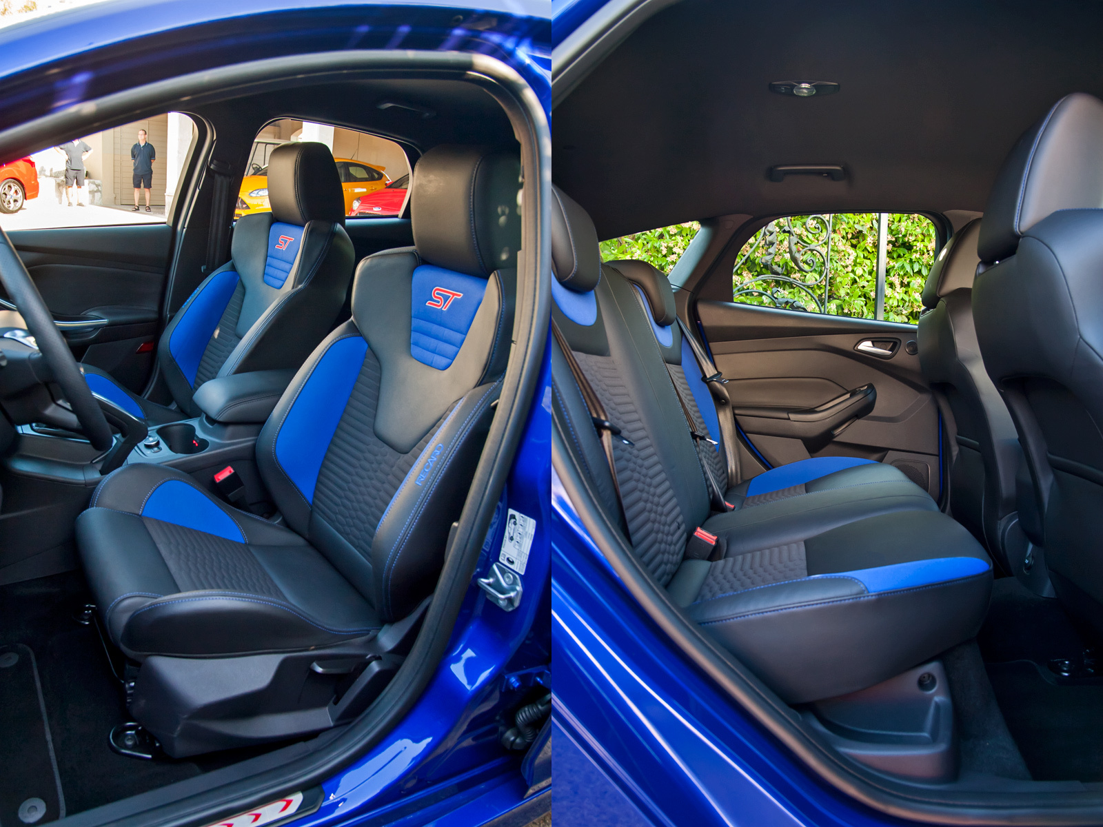 По части железа — никаких сюрпризов. Вольвовская «турбопятёрка» уступила место «четвёрке» EcoBoost, которая посредством малоинертной турбины выдувает 250 л.с. с двух литров рабочего объёма. Коробка передач по-прежнему только одна — шестиступенчатая «механика». Подвеска по сравнению с гражданскими моделями занижена на 10 мм. Единственная разница между горячей парочкой хэтчбек/универсал — в положении задних амортизаторов. Если у первого их верхние концы смотрят строго вверх, то у второго наклонены к центру задней балки, что позволило на несколько сантиметров опустить уровень пола, выиграв в объёме багажника. Впрочем, и это не ново: у обычных грузопассажирских Фокусов тот же расклад.