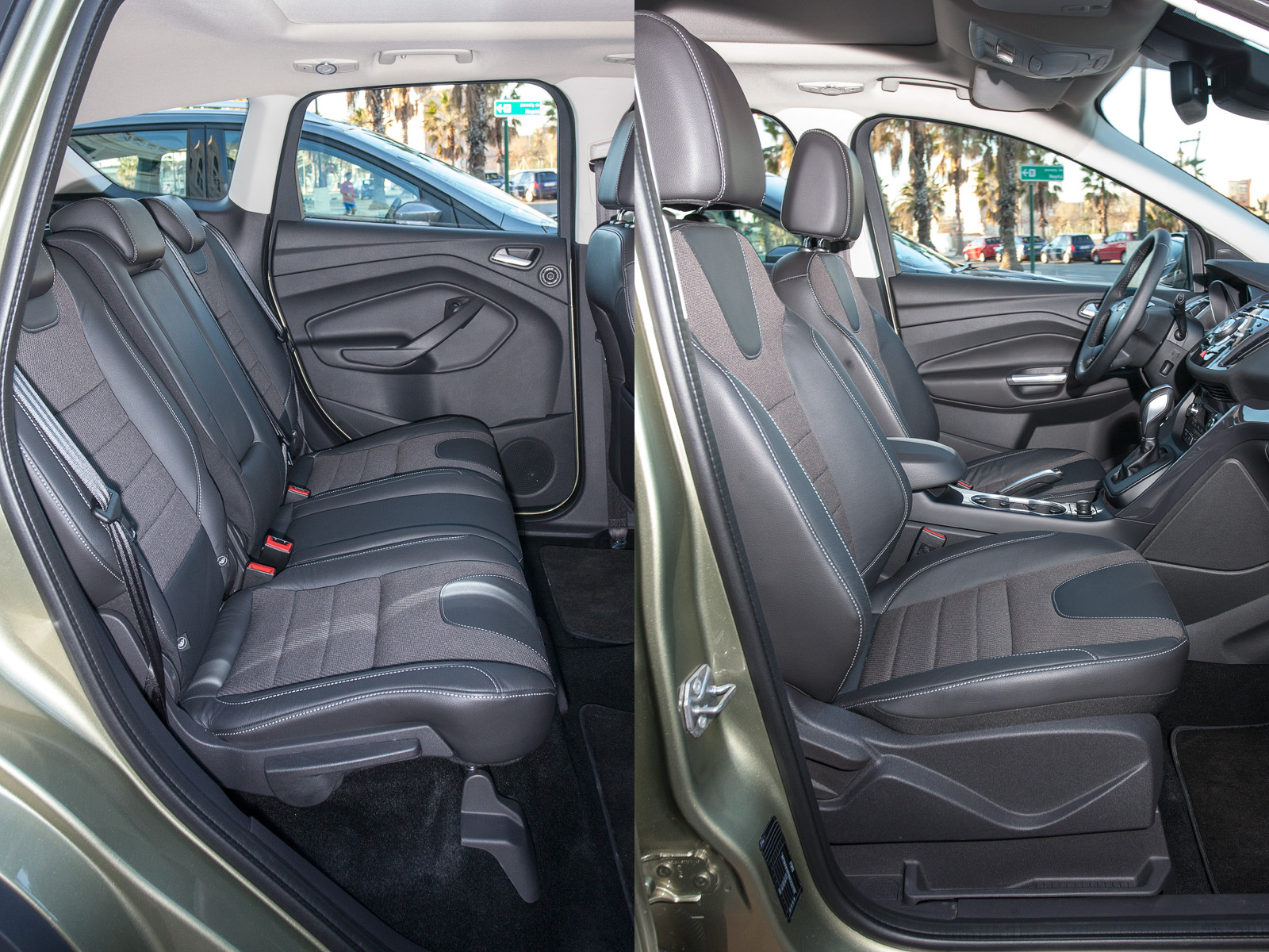 Я помню, как, обсуждая предыдущее поколение машины, некоторые коллеги жаловались на излишне вертикальную посадку в не слишком спортивных сиденьях. Видимо, их голоса были услышаны — в новых куговских креслах усесться можно как душа пожелает, а боковая поддержка хороша и на подушке, и на спинке сиденья. Очень понравился наполнитель — валики хорошо держат в поворотах, при этом они достаточно мягкие, чтобы быть ненавязчивыми. Тут сидишь именно «в кресле», а не «на кресле».