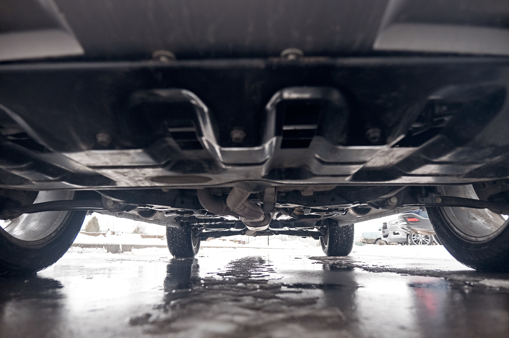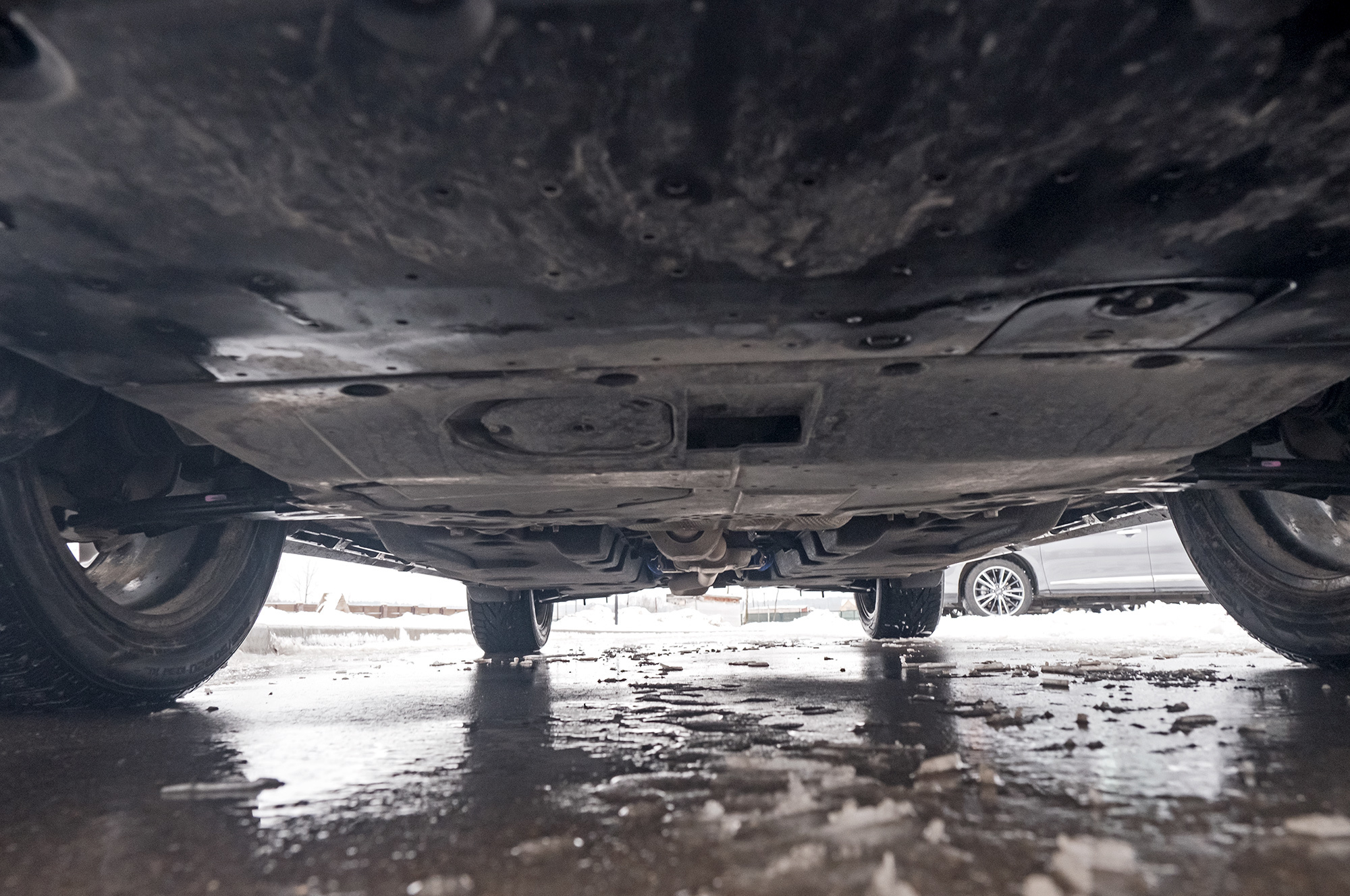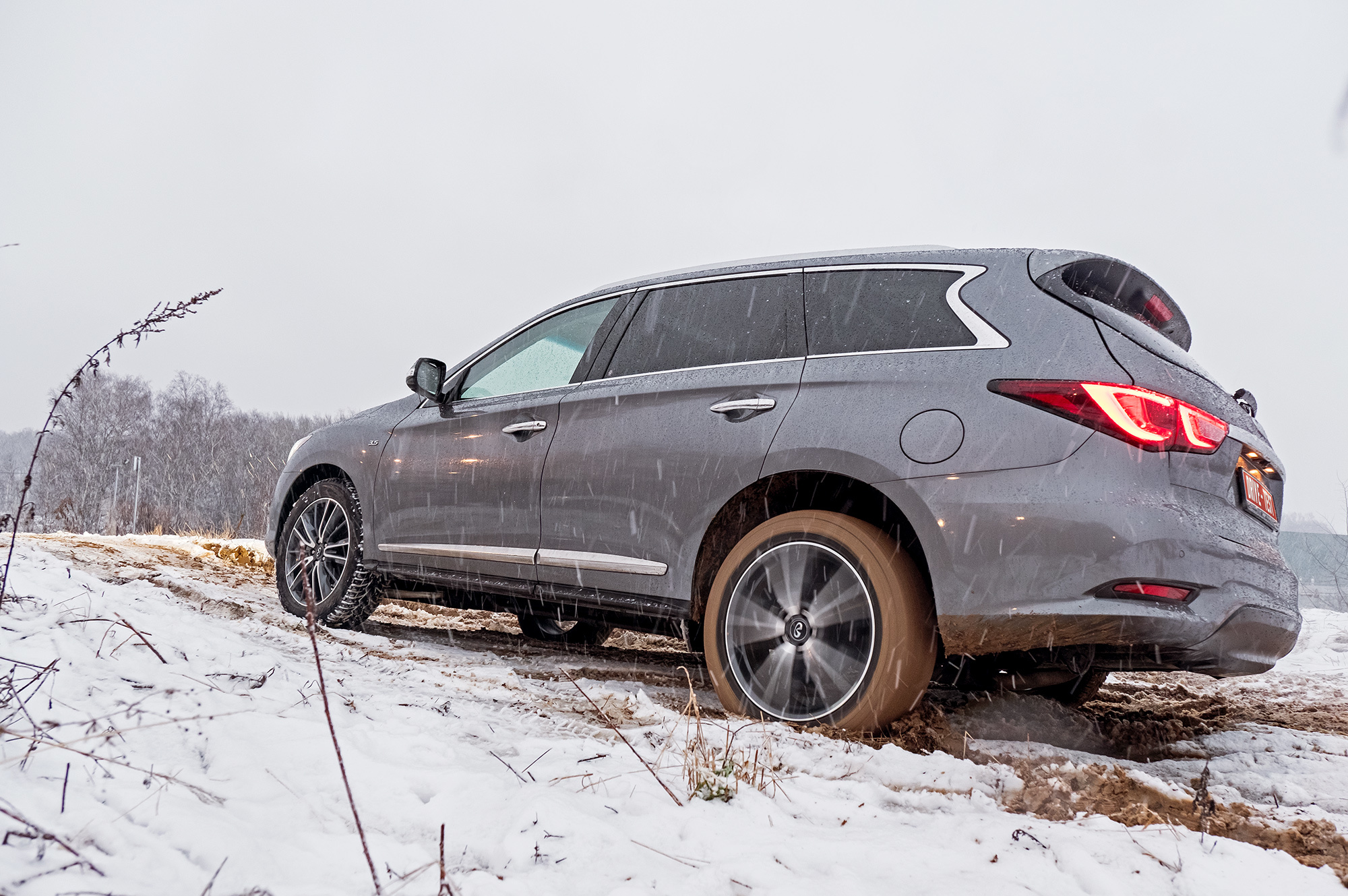 От такого тяжёлого Форда не ждёшь прыти в сугробах. Но достаточно найти трансмиссионной шайбой режимы «Снег» или «Грязь» и нажать на газ. Explorer не жадничает с оборотами и бодро выползает из ловушки, эффективно подтормаживая буксующие колёса. Infiniti вне дорог сдерживает вариатор. Коробка не даёт мотору раскрутиться и осложняет управление тягой. Скромнее всех, несмотря на приличный клиренс, выглядит Mazda. Имитация межколёсных блокировок будто не работает вовсе. На СХ-9 лучше держаться поближе к асфальту.