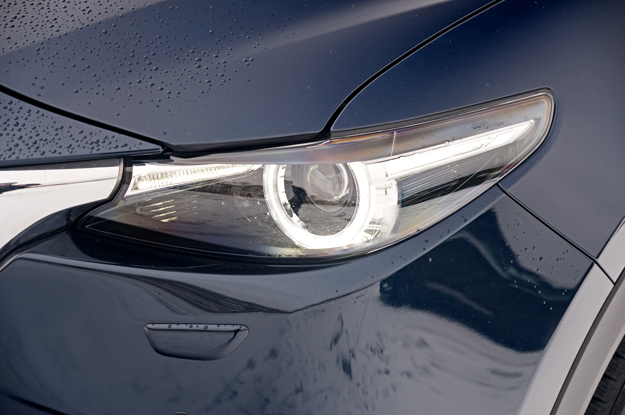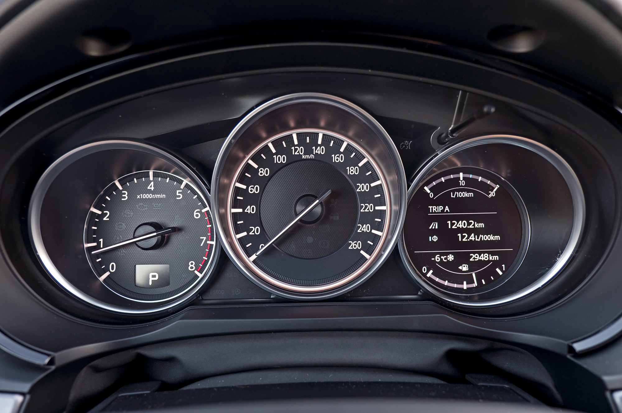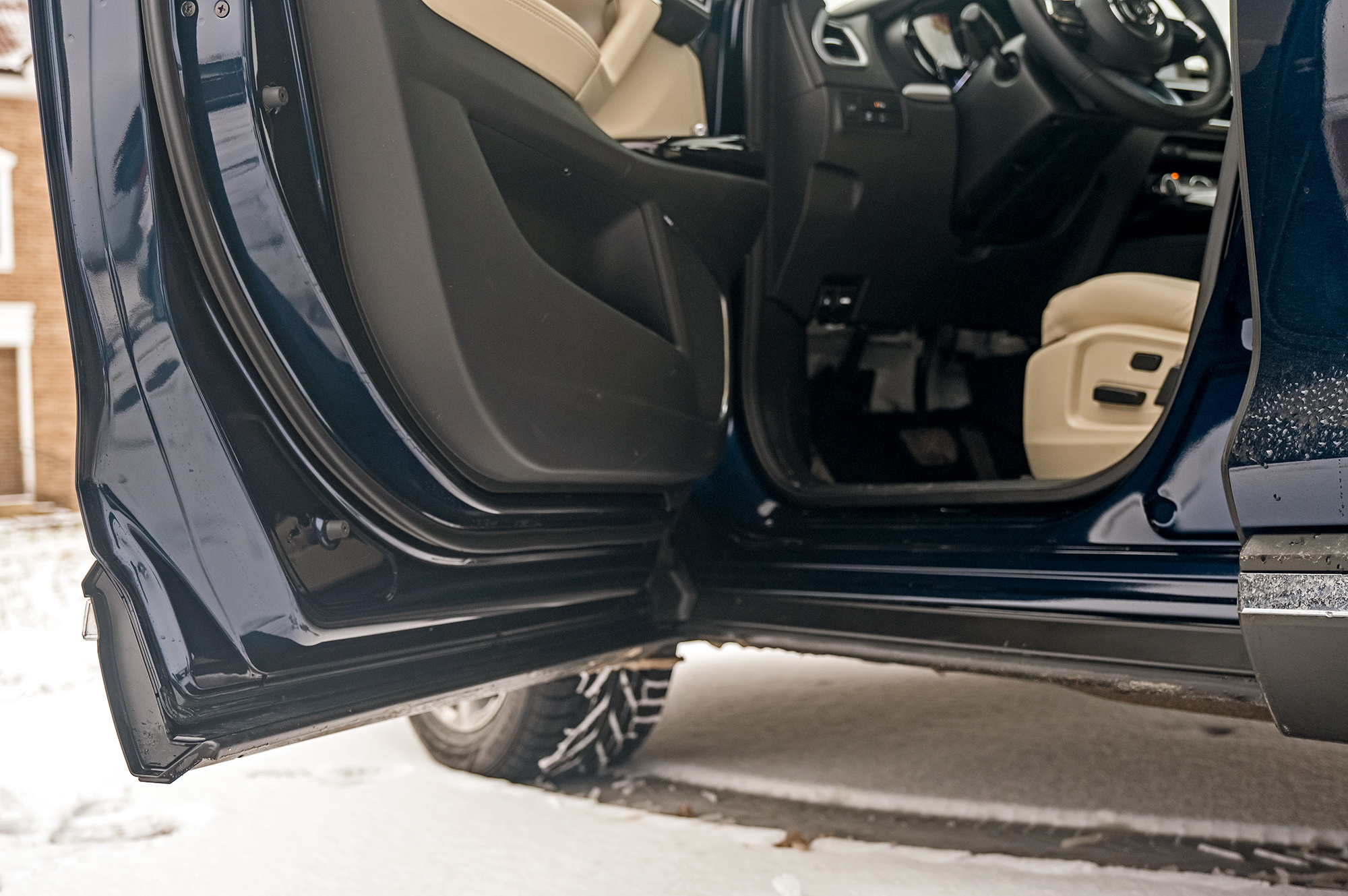 Всем трём машинам хорошо бы заменить кнопки бесключевого доступа на датчики и добавить их в задние двери. Всё-таки в крупный кроссовер не всегда садятся сначала вперёд. Забираясь в Мазду, нужно преодолеть высокий и широкий порог (неспроста американский краш-тест с малым перекрытием отработан на отлично с обеих сторон). Главное: CX-9 не создаёт ощущения большой машины — интерьер не по-американски облегает. В плотном кресле не развалишься, коленки в стороны не раскинешь — узковато. Зато передние стойки умеренной толщины почти не мешают обзору. Получилась слегка увеличенная копия СХ-5. Хотя в деталях флагман изящнее.