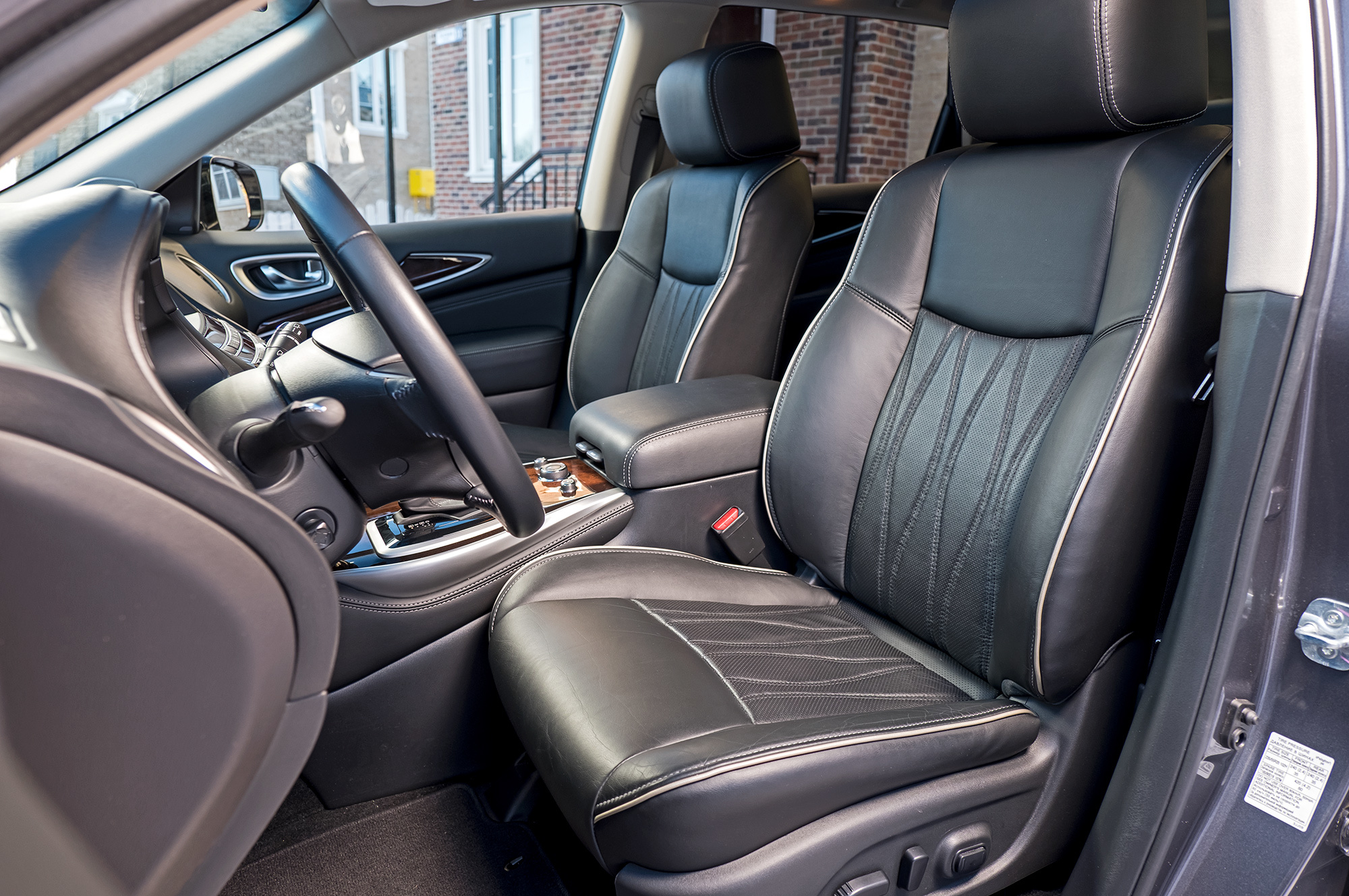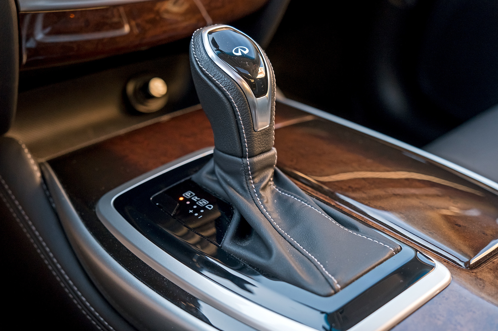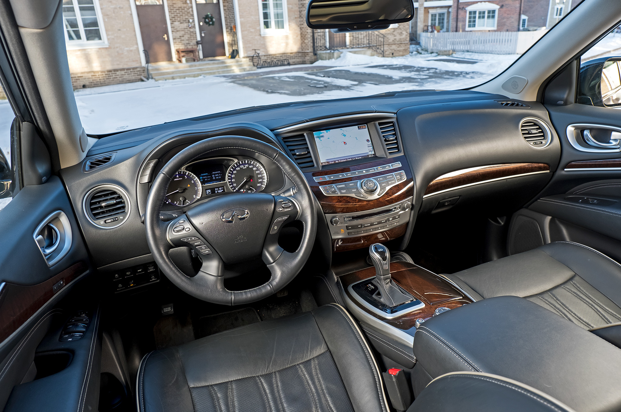 После Форда с модной приборной панелью и россыпью клавиш, отливающих в темноте бирюзой, салон QX60 — оплот консерватизма. По запасу воздуха спереди QX60 ближе к Эксплореру. Посадка тоже командирская, толщина стоек — средняя в тесте. Кожа кресел со светлой прострочкой выглядит дорого, но вообще не держит. Оплётка руля тоже скользкая. Тем, кто любит сесть вразвалочку, здесь определённо понравится. Мне, например, по душе фирменная архитектура с подиумом центральной консоли. Но спросите, в чём именно премиальность, — затруднюсь с ответом. Тут не аккуратнее, чем в Мазде.