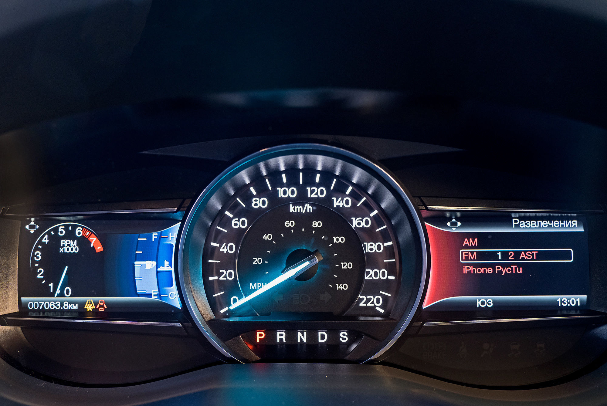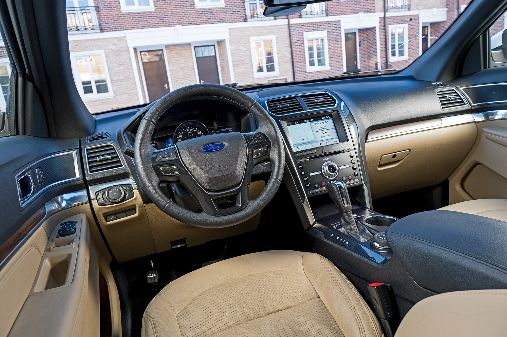 Ford после Мазды — как Peterbilt после европейского бескапотника. Настоящая Америка! Спереди действительно грузовой простор и масштаб. За толстенными башнями стоек теряются малолитражки, до противоположной двери не дотянуться, по педалям топай хоть в валенках. Карманы в дверях — мини-багажники. Странностей хватает. Подрулевые рычажки торчат вверх, управление дворниками организовано мудрёно, неудобно расположена площадка для левой ноги. Пластик мягок, где надо, но разнофактурен и небрежно подогнан.