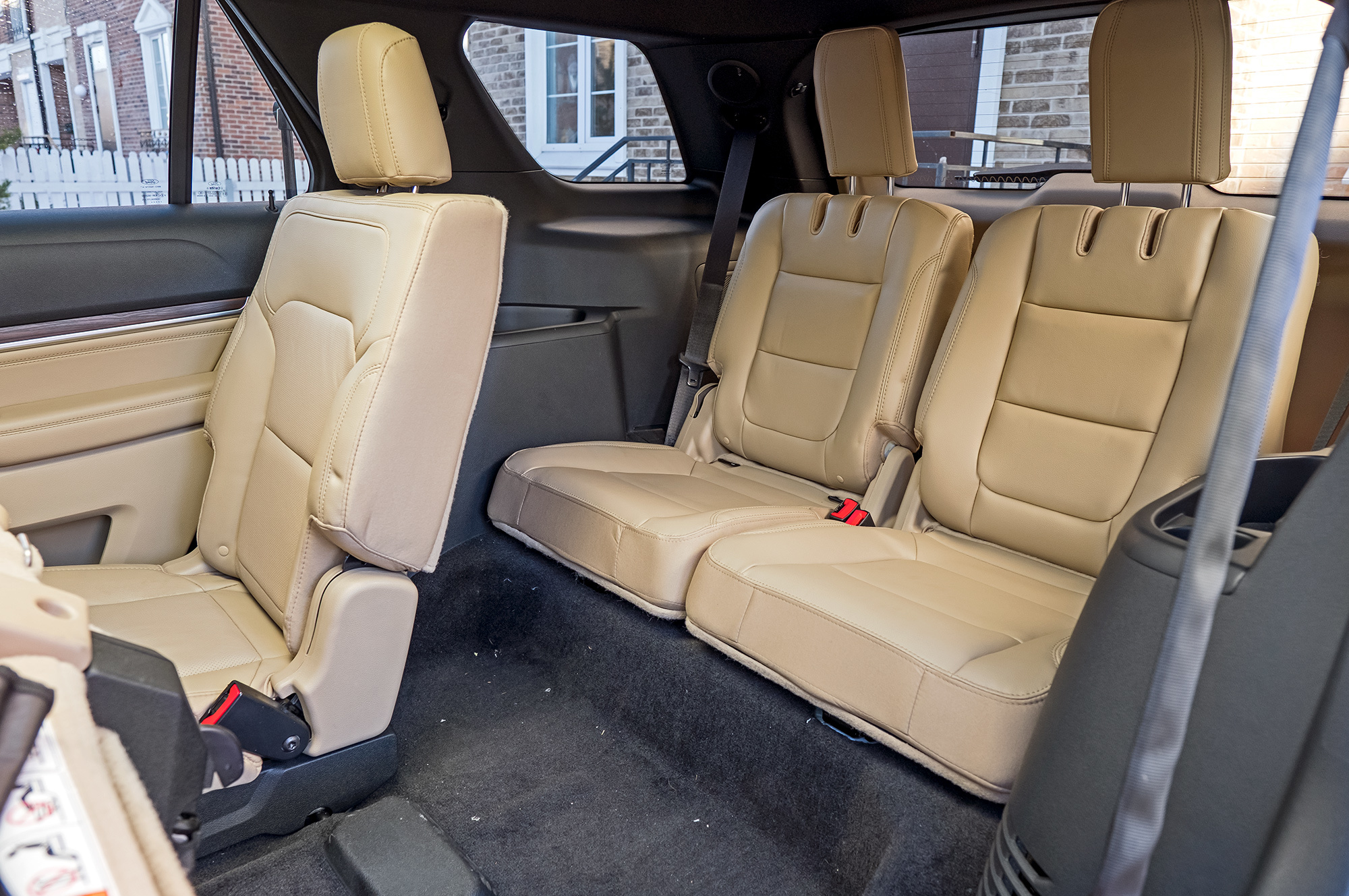 Explorer противоречив. Зафиксированная левая сторона второго ряда стоит так близко к переднему креслу, что за высоким водителем ребёнок сидит, крепко подперев ногами спинку. Разложить детское кресло в спальное положение нереально. На правой стороне дивана попросторнее, поскольку она регулируется и откидывается, открывая доступ к третьему ряду. А ещё Ford единственный, кто может похвастать креплениями Isofix на местах «в багажнике», правда, только с правой стороны.