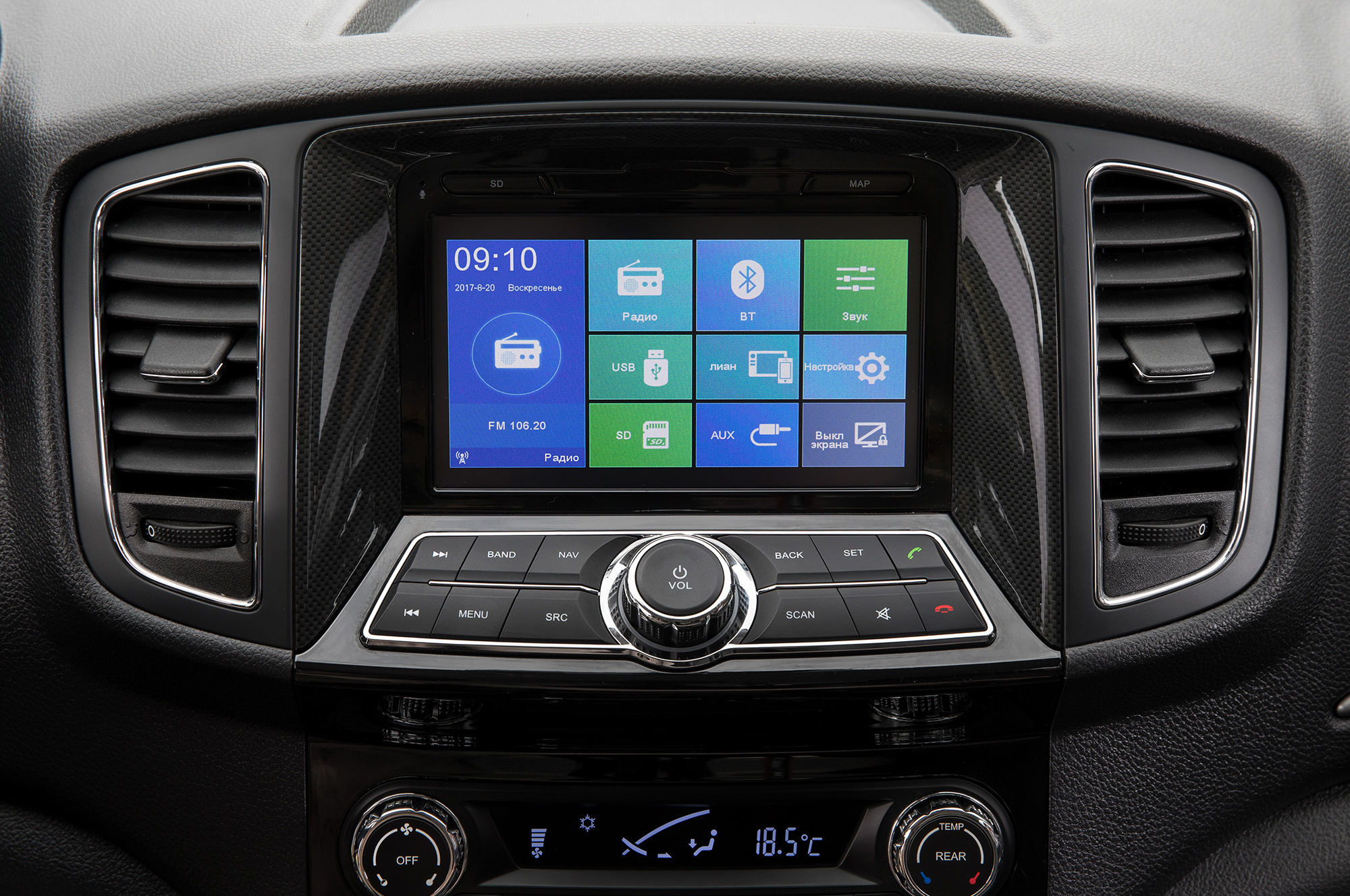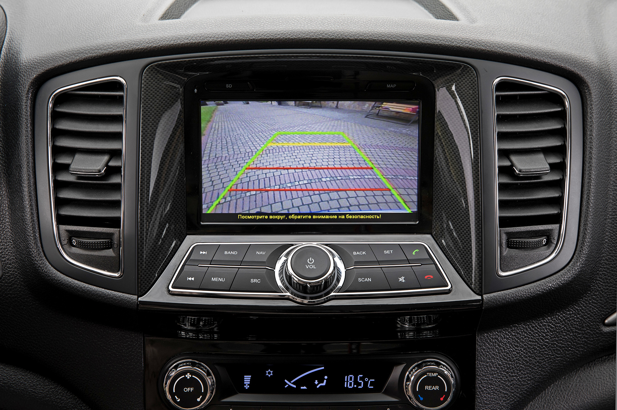 Подножка на пороге уверенно берёт мои 90 кг, дальше — ручка на левой передней стойке и непривычно высокий пол. Протискиваю ноги под рулём, который регулируется только по высоте. Поворчав, что приходится двигаться слишком близко к педалям, нахожу всё-таки сносную посадку. Спасает нормальное кресло и несильно выпирающая консоль. Пространства достаточно, центральный тоннель широк, хороша обзорность, благодаря крупным зеркалам. Клавиши и разъёмы расположены удобно.