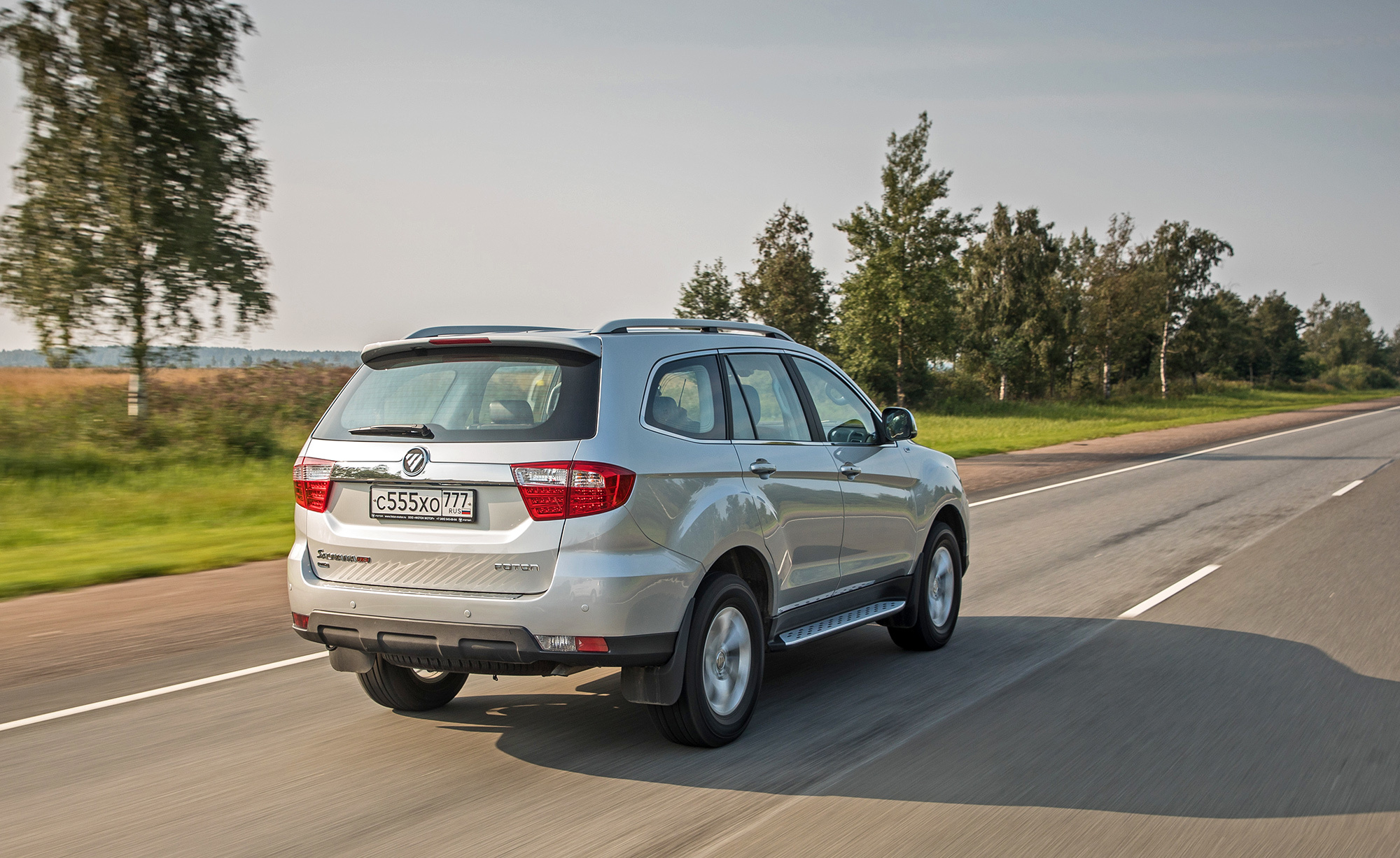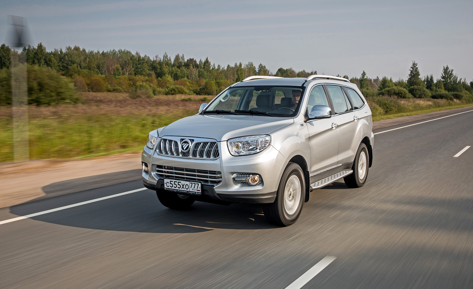 Смотрю на бесконечные китайские теплицы Чудовского района: Новгородская область переживает бум трудовой миграции из Поднебесной. Можно ли отнести к гастарбайтерам семиместный рамный внедорожник Foton Sauvana? Судите сами. Автомобиль приезжий, хотя уже не из Китая, а из Беларуси. Стоит по нынешним временам дёшево: всего полтора миллиона рублей. И весьма усердно трудится на разбитом грейдере близ посёлка Грузино. С энергоёмкостью подвески у Фотона порядок, а как с остальным?