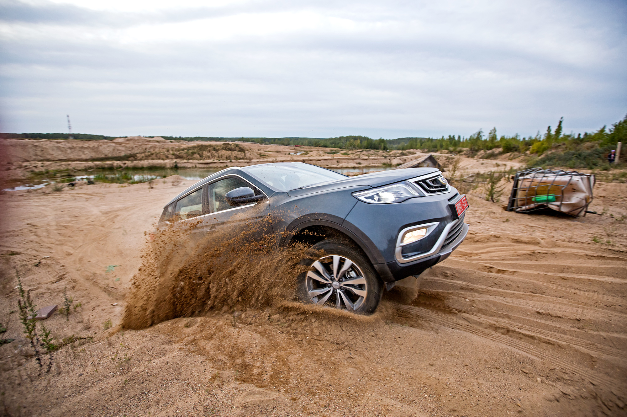 Короткоходное шасси без запаса энергоёмкости мешает Geely разогнаться на покорёженной грунтовке. В салон проходят удары такой силы, что непроизвольно отпускаешь педаль газа. А в «песочнице» подводит малый дорожный просвет: Atlas чиркает пузом и передним свесом там, где другие проезжают без контактов. Из карьера «китаец» выбирается с оторванной пластиковой защитой днища. Ещё легко отделался.