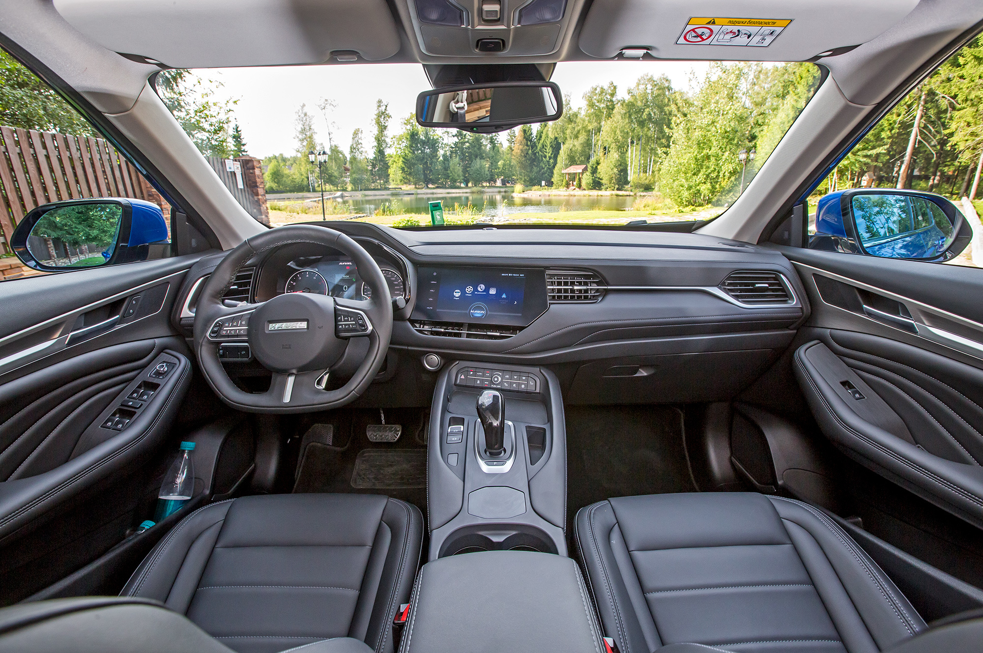 У нас на тесте дорогой двухлитровый Haval за 1,8 млн, но его салон отличается от базового лишь креслами с электрорегулировками и отделкой кожзамом. Поначалу интерьер вызывает сплошь восторг. Обшитые экокожей панели и матовый пластик делают обстановку по-домашнему уютной. Радует нарядная комбинация приборов и особенно — небликующий на солнце экран мультимедийной системы в форме сим-карты.