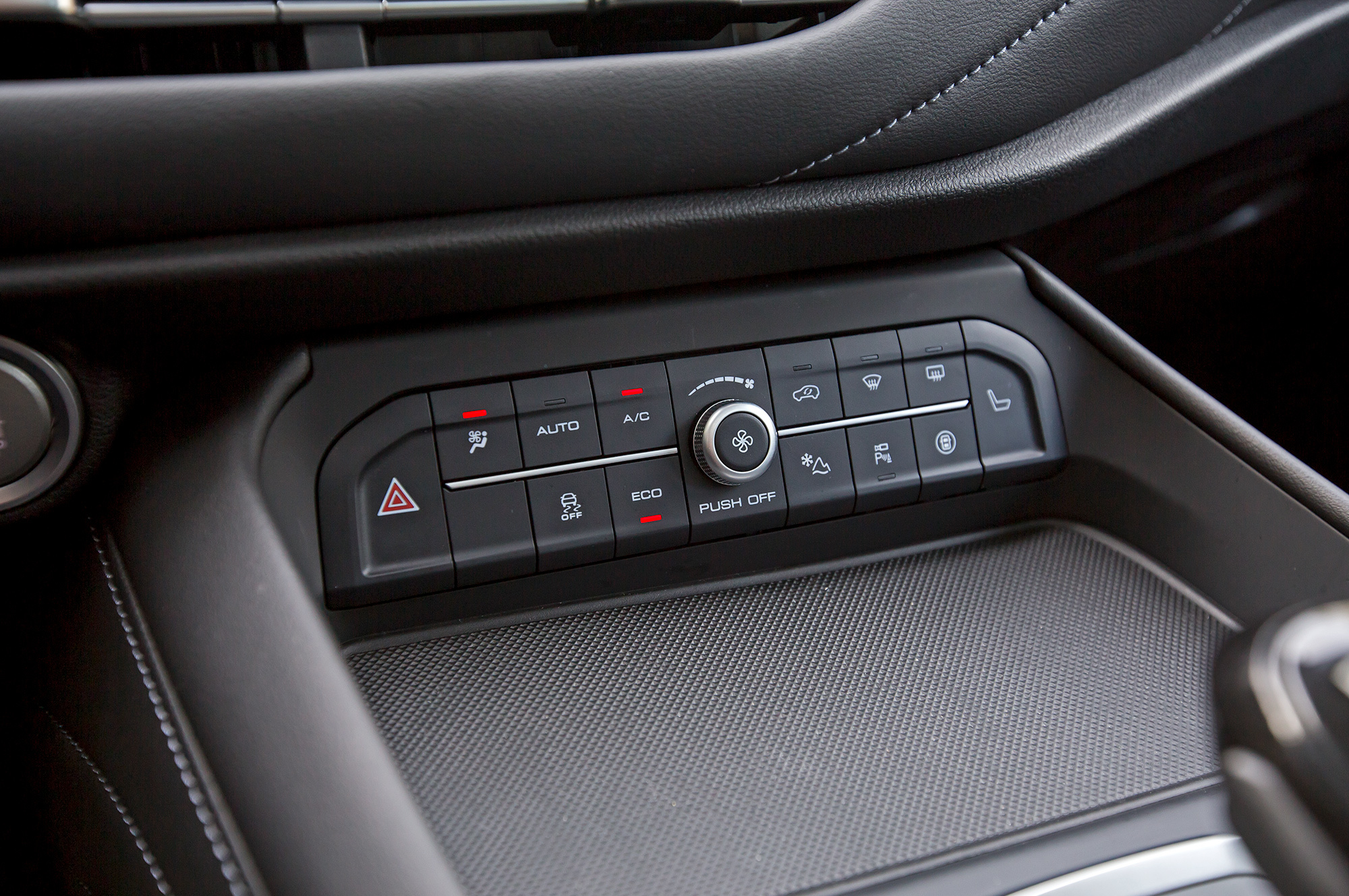 Кнопочный минимализм обманчив. Блок на центральной консоли объединяет управление климат-контролем, магнитолой, обогревами руля и сидений, датчиками парковки и ESP. Здесь же выбираются режимы системы Terrain Response — всё свалено в одну кучу. Водительское кресло только на вид рельефно и гостеприимно, на деле оно мягко, словно диванный пуфик. И валики боковой поддержки предательски сдуваются под грузом тела, ищущего опору. Зато в салоне полно места: F7 — самый вместительный в квартете. Запас перед коленями — лимузинный, над головами просторно, как в семейном компактвэне, несмотря на присутствие панорамной крыши.