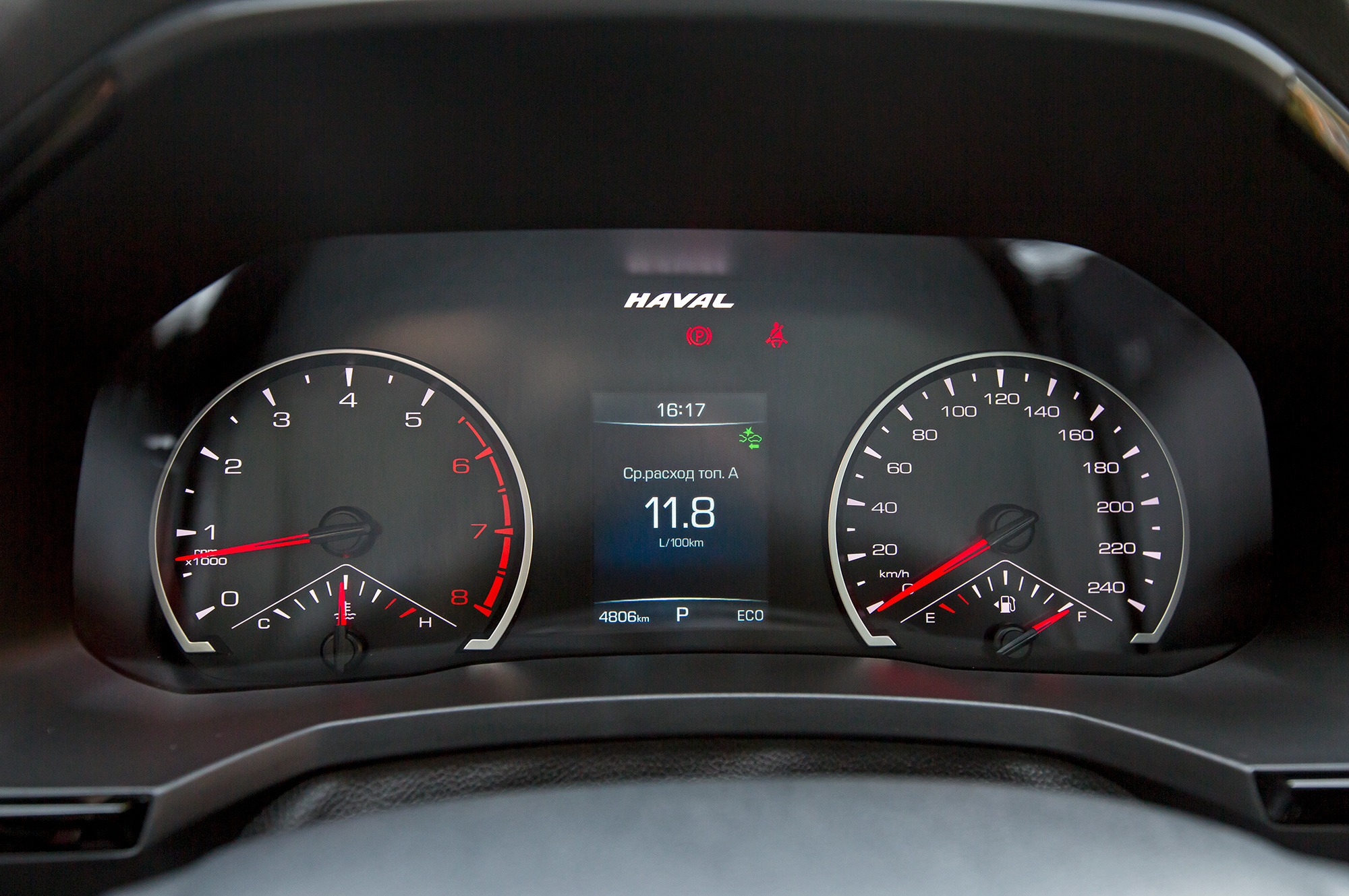 Сложности возникают даже на парковке. После перевода селектора в реверс проходит около трёх секунд, прежде чем кроссовер обретает способность двигаться назад. Это не глюк конкретного экземпляра, а особенность управляющей электроники. Через мои руки прошло несколько Хавейлов F7, включая версию с полуторалитровым мотором, — больны все. Доходит до абсурда: садясь за руль, я перво-наперво включаю Эко-режим. Он, конечно, не спасает от задержек при включении задней передачи, но повышает контроль над разгонной динамикой и добавляет трансмиссии плавности. Попутно ещё и топливо экономит: комбинированный расход снижается с 11 л/100 км до десяти.