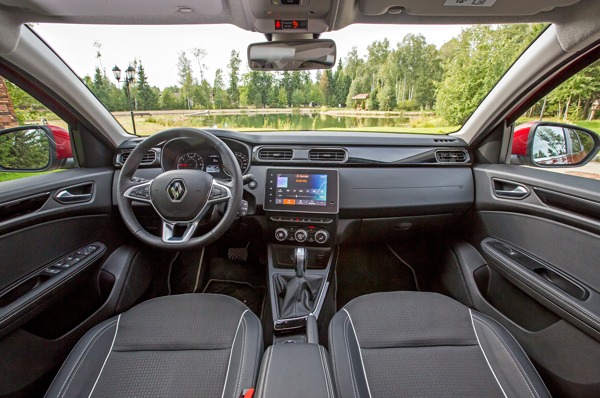 Посадка на общем фоне кажется эталонной. Длина подушки, форма спинки, вылет рулевой колонки — всё будто подобрано под меня (ростом около 180 см). Руль не мешает смотреть на приборы, самые обычные, без выкрутасов. По правую руку второстепенные органы управления, разложены по полочкам. Вверху — сенсорный экран, ниже расположен блок управления «музыкой» и климатом. Возле селектора «автомата» сгруппированы нужные в движении кнопки. Захочешь — не запутаешься.