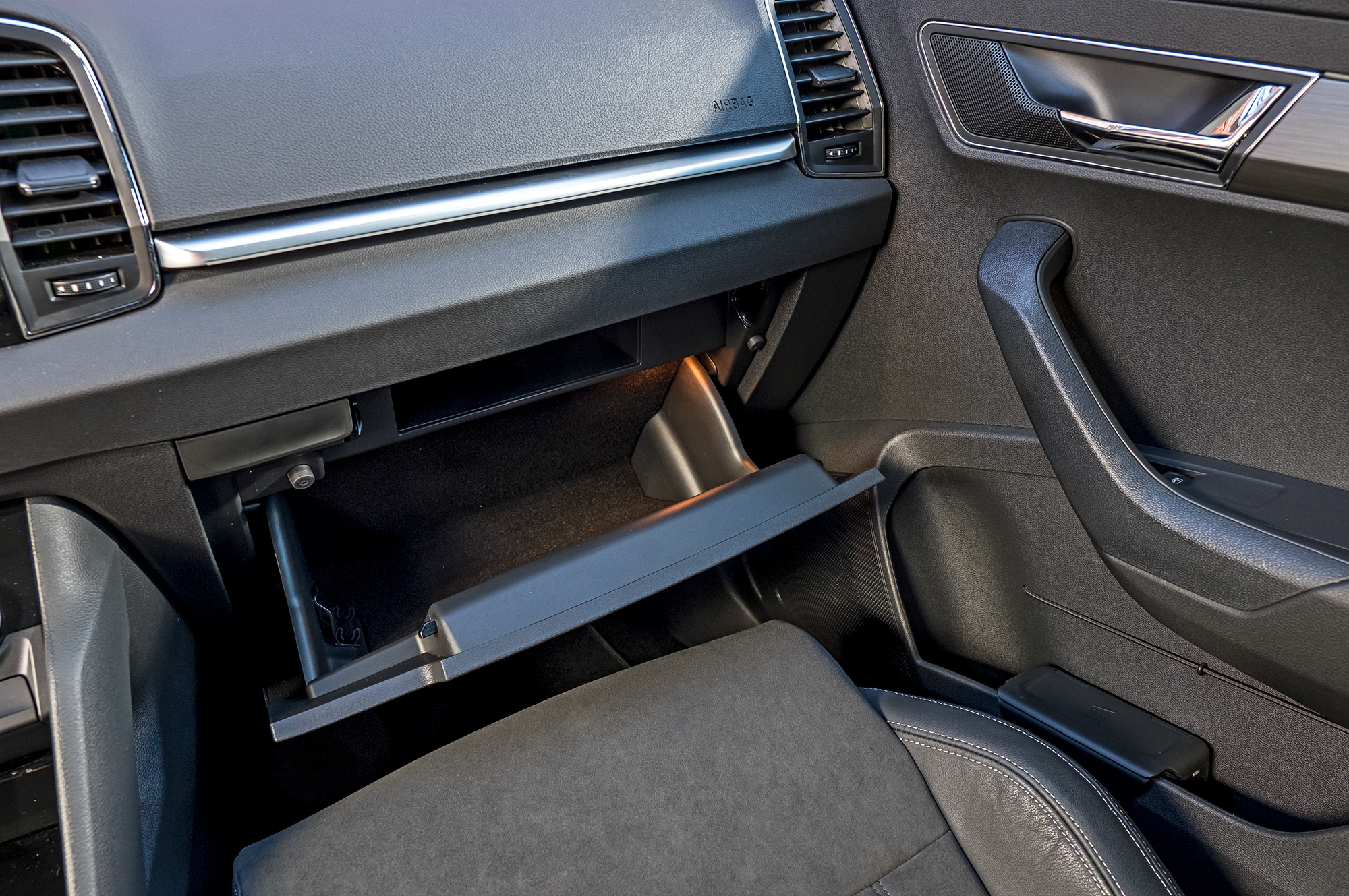 Идентична обзорность. У Kia побольше зеркала, но заметен недоход левой щётки до стойки сантиметров на пять. В списке доступных Шкоде опций отсутствует камера заднего вида, что едва ли компенсирует система автопарковки. Убойный плюс Карока — глубоченный багажник с электроприводом крышки и продуманными дополнительными функциями. Только там ремни безопасности не мешают поднимать разложенные спинки дивана. Kia же выигрывает объёмом и разнообразием мест под мелочи. Особенно радует полочка для смартфона с бесконтактной зарядкой.