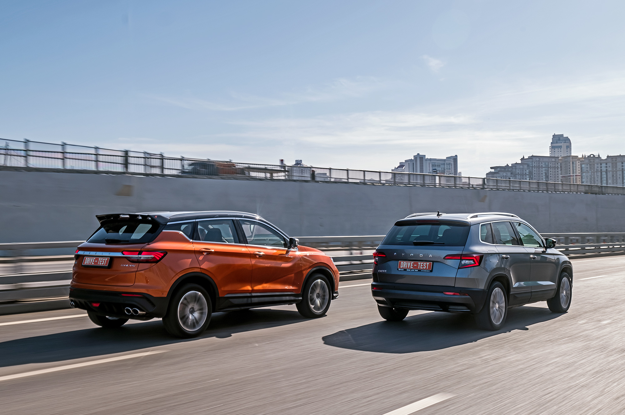 Чтобы упростить сравнение, сначала разберу пару основных конкурентов Seltos-Karoq — а затем полученный опыт использую для оценки Geely... Вы согласны, что дизайн Kia выигрышнее, чем у Шкоды? Интересно оформлен кузов Селтоса с развитой многоуровневой светотехникой. Karoq снаружи просто уныл, особенно сзади. В корейском салоне игра форм, хромированного и чёрно-глянцевого декора маскирует недорогой жёсткий пластик. В Кароке его тоже немало: на дверных панелях мягкие элементы вообще есть только под локтями пассажиров. Текстуры смотрятся дороже корейских, но всё убивает отсутствие воображения у дизайнеров.