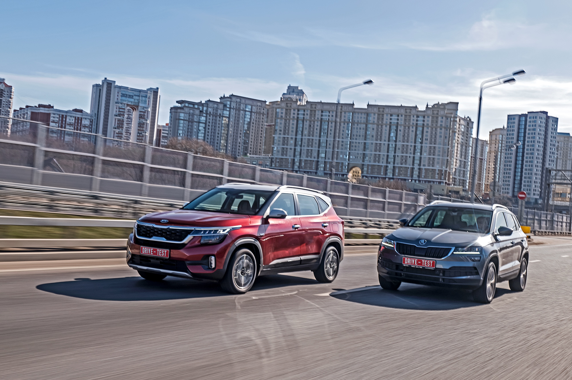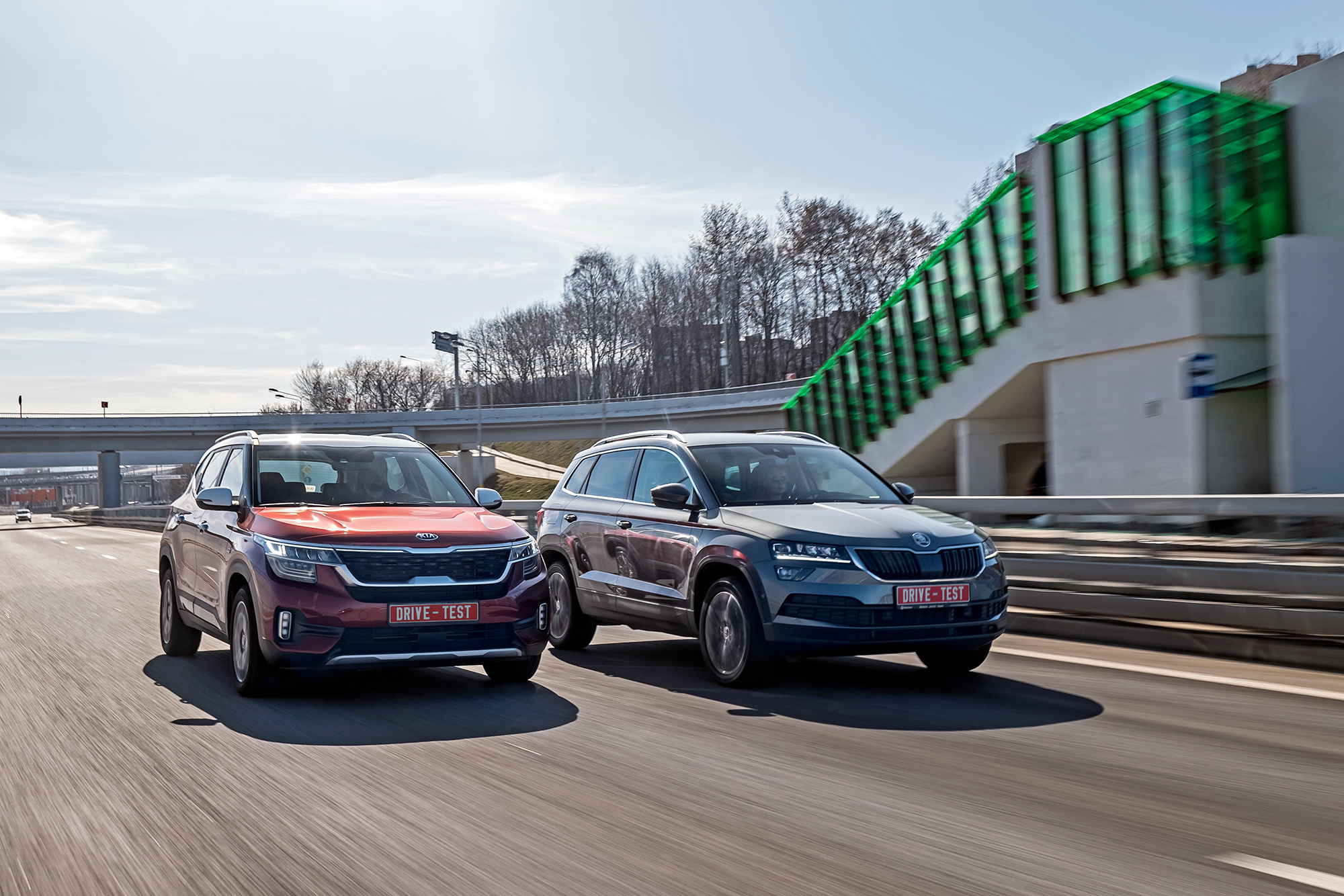 Ходовые качества Kia и Шкоды настроены в едином комфортном ключе. Для Селтоса это означает сглаженное, хотя и понятное управление тягой посредством клиноцепного вариатора. Динамику взрывной не назвать, равно как и слабой. При желании можно слегка взбодрить реакции на акселератор спортивным режимом. Однако он не обострит скучную, обыденную управляемость, пусть даже бесстрастный Seltos едет туда, куда его направишь, и нормально стоит на прямой. Он не докучает тряской или шумом. Слышен разве что мотор на высоких оборотах, а из неровностей подробнее желаемого передаются на кузов только средние волны.