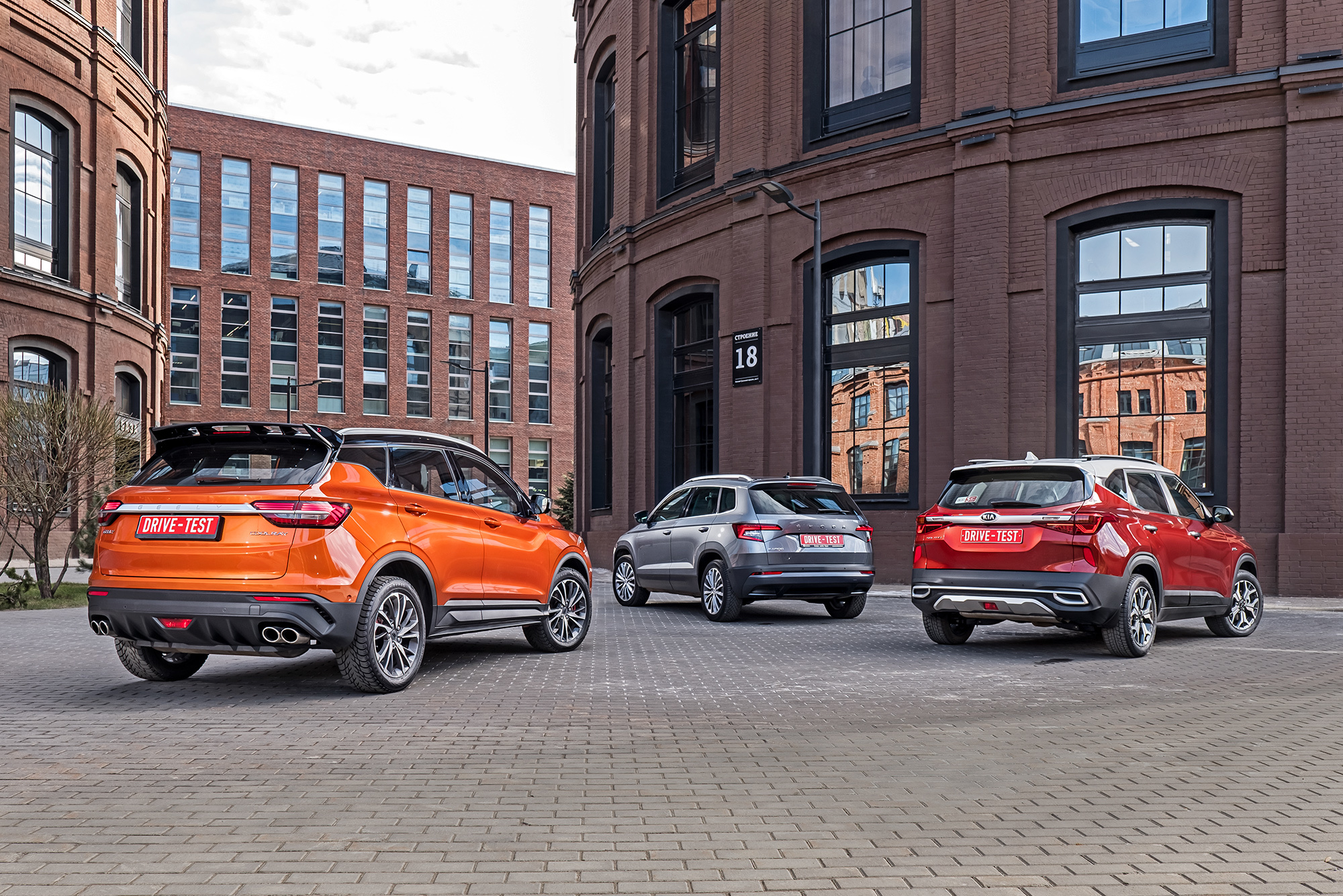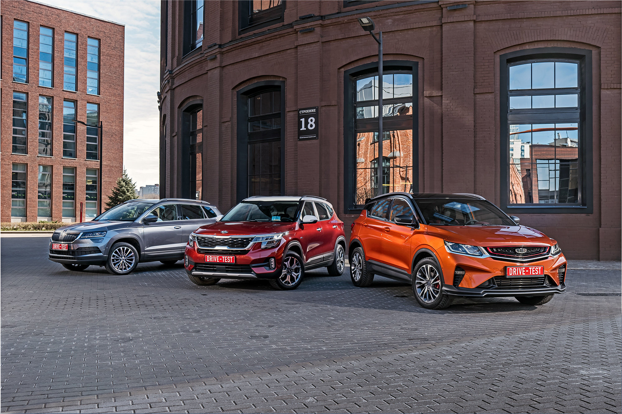 Скорее всего, это самый важный тест года. Участники относятся к насыщенному сегменту компактных кроссоверов. Двое представляют популярнейшие марки, один — активно раскручиваемую. Производство всех испытуемых локализовано в России или Беларуси. В длину Kia Seltos, Skoda Karoq и Geely Coolray чуть превышают 4,3 м, оснащены 150-сильными моторами. Полный привод доступен и присутствует в тесте только у Kia. А главная интрига ― почему в довирусных ценах топовый Coolray стоит всего полтора миллиона рублей, тогда как за Шкоду и Kia просят более 1,8 млн?