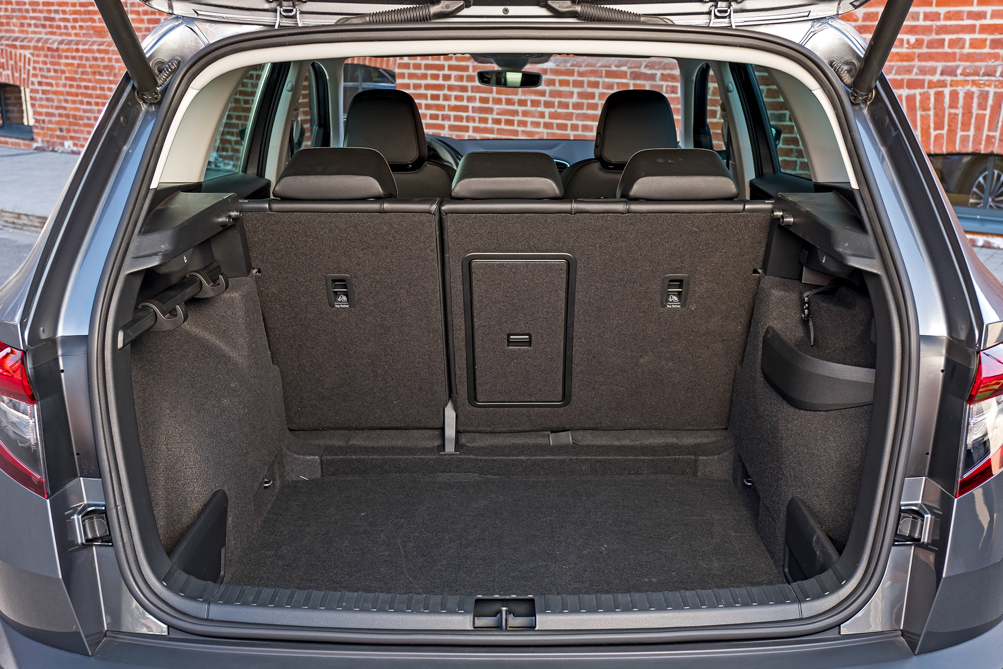 Спереди Karoq и более длинный Kodiaq (на 31 см) едва различимы. Сзади более компактная Skoda с короткими фонарями, едва заходящими на крышку багажника, выглядит ощутимо дешевле. Разница в отделке чувствуется ещё сильнее. Фотографии не передают, что салон Кодиака изобилует мягким пластиком. Даже багажник обустроен качественнее. На заднем диване существенно просторнее: выигрыш достигает 10–15 см в области коленей! И всё же разница цен на 200–300 тысяч рублей между сопоставимыми комплектациями двух Шкод выглядит избыточной.