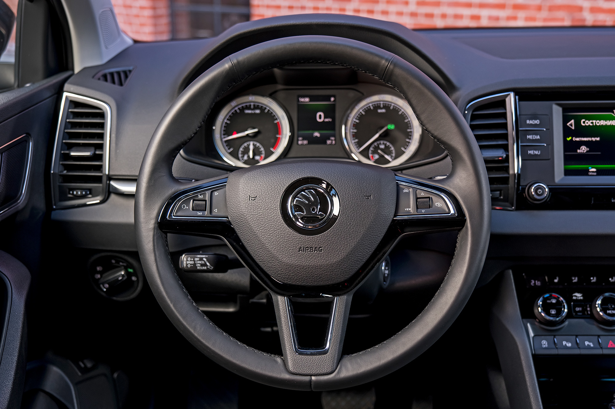 Обе оснащены 150-сильным турбомотором 1.4, но Kodiaq AWD укомплектован DSG, а моноприводный Karoq — «автоматом». И он оказывается намного приятнее при ездовом сравнении, благодаря удобному управлению тягой. Шестиступенчатый «робот» то мнётся с переключениями, то неадекватно сбрасывает сразу две-три передачи, когда водитель вынужденно додавливает акселератор. К тому же Kodiaq пожёстче проходит неровности и сильнее давит на уши, прежде всего шумом от дороги. Есть ощущение, что, разрабатывая и настраивая Karoq, шкодовцы дальше шагнули навстречу потребителям ― людям экономным и не чуждым комфорта.