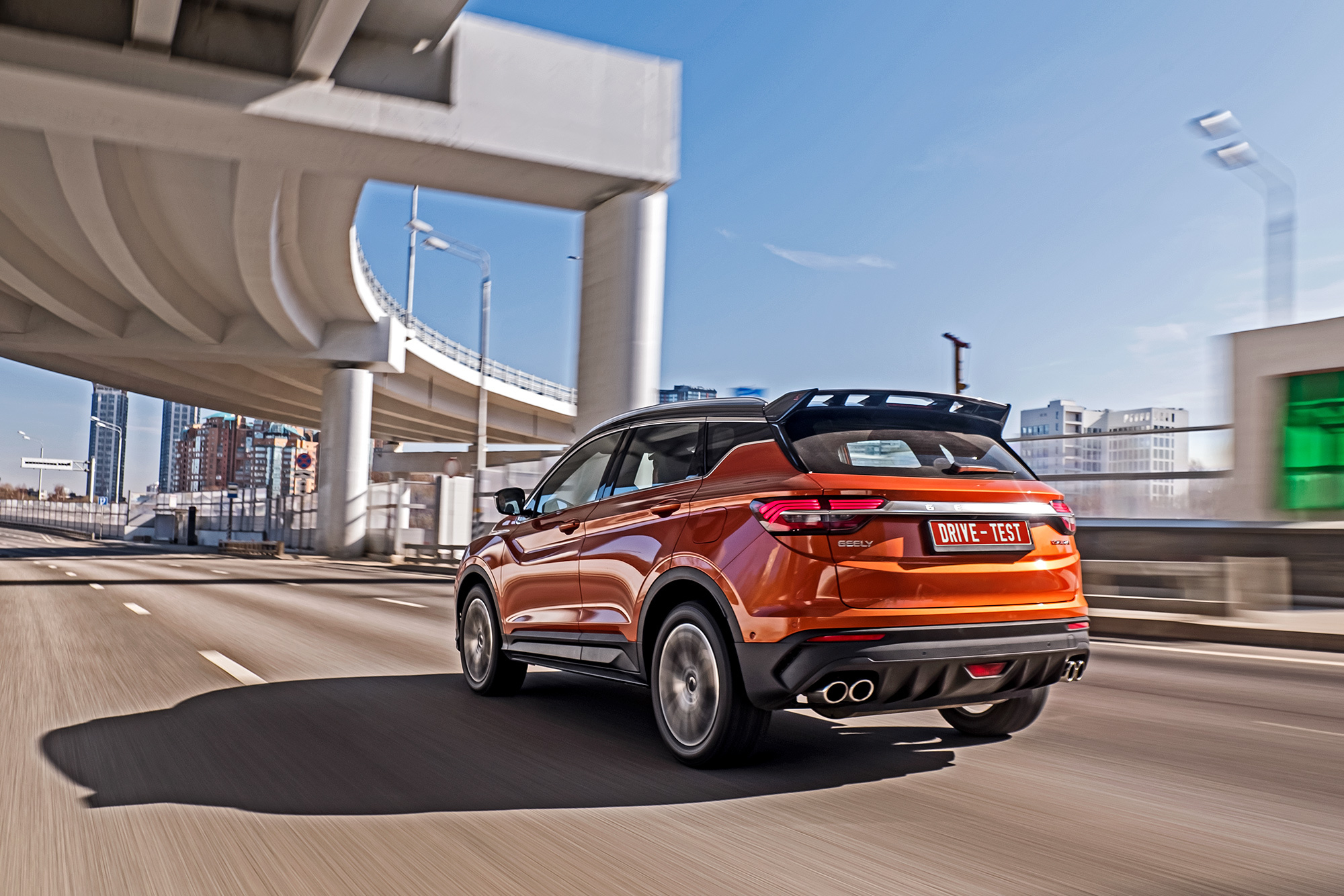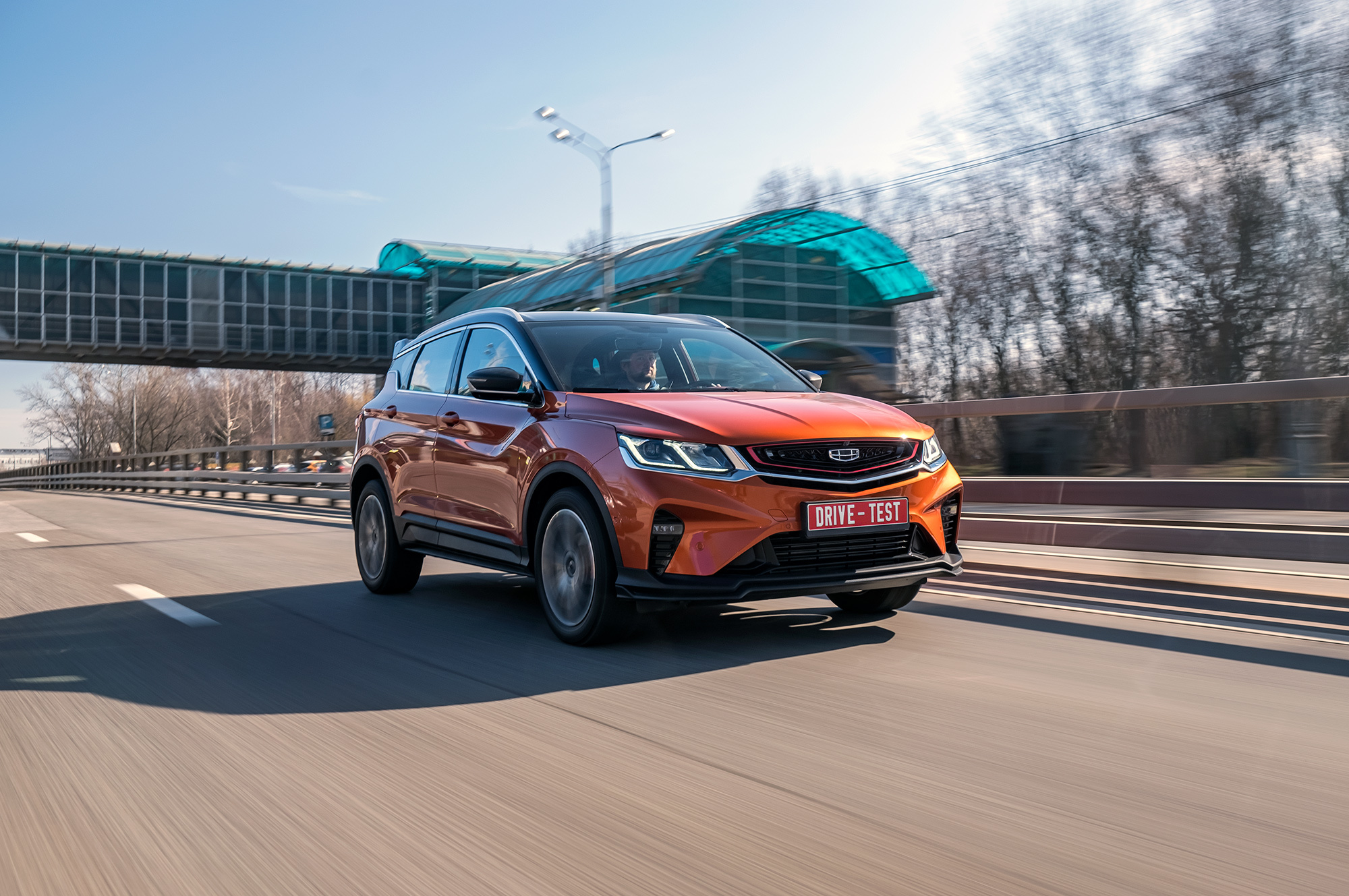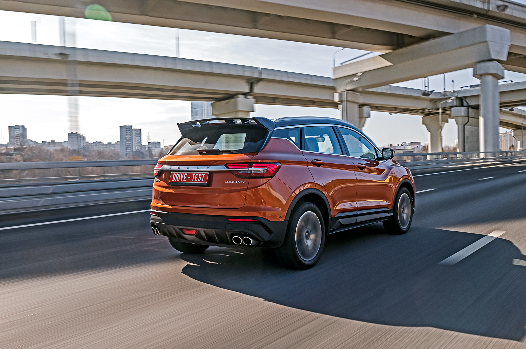 Основная беда ― жёсткая подвеска. Ленится сглаживать почти все неровности, в основном переводя их в стук передних амортизаторов, а не в гашение энергии. При этом ход у неё вроде достаточен, пробоев нет. Но нет и вкусной управляемости: по остроте и точности руления Geely сопоставим с Kia и Шкодой, проигрывая им в содержательности реактивного действия при больших поворотах баранки. Coolray более нервно ведёт себя на прямиках, особенно с колеями в асфальте, а также спрыгивает с курса в кочковатых виражах. Тормоза требуют более сильной ноги, а контроль плавных замедлений нелинеен.